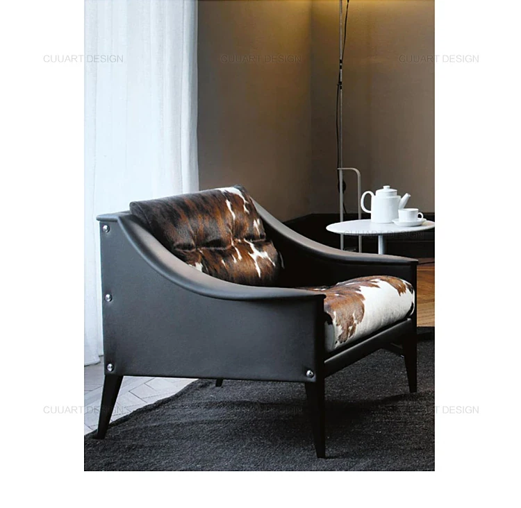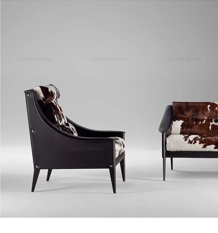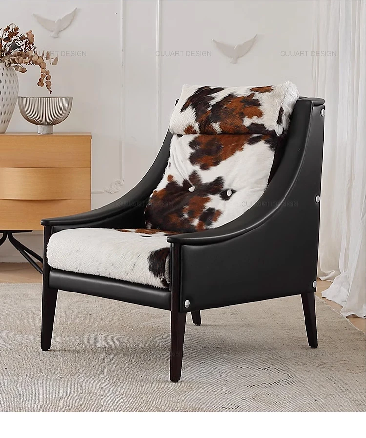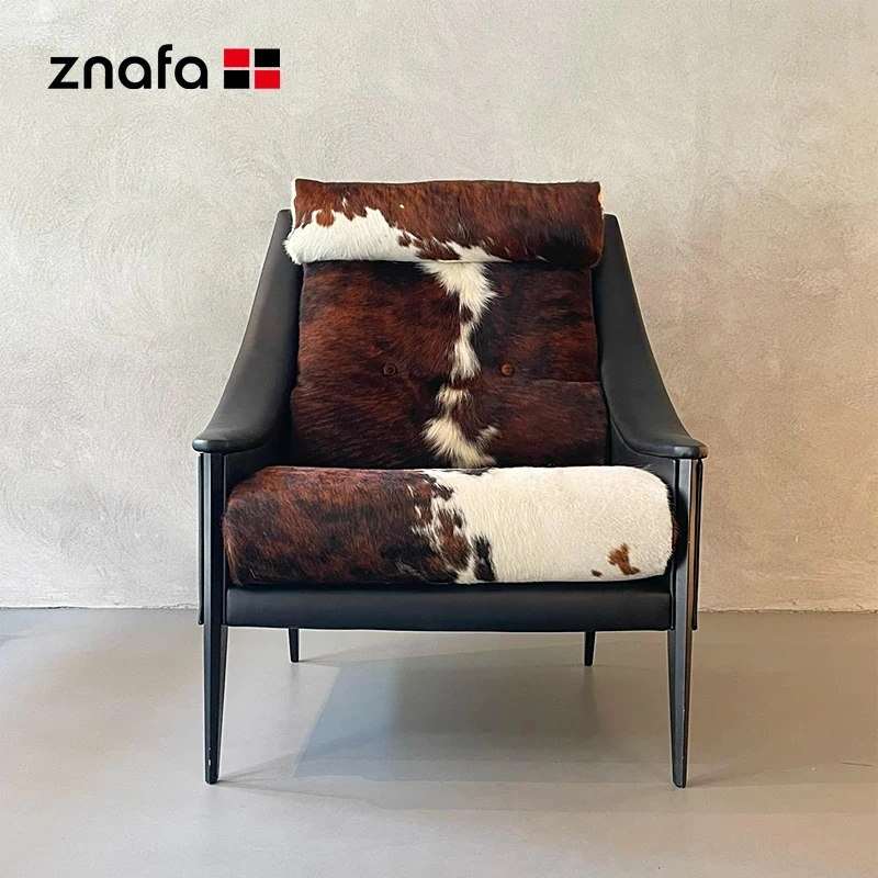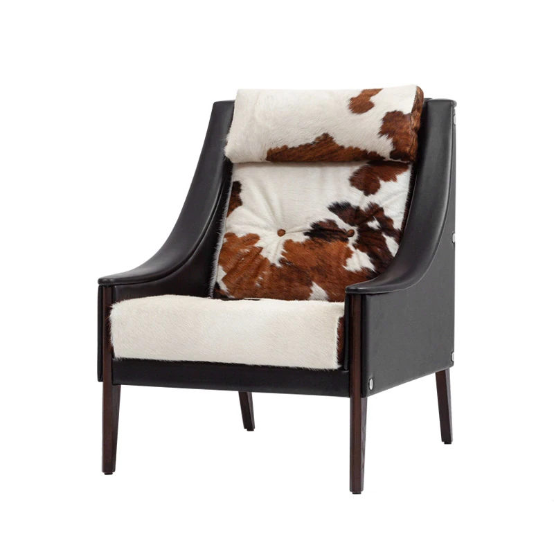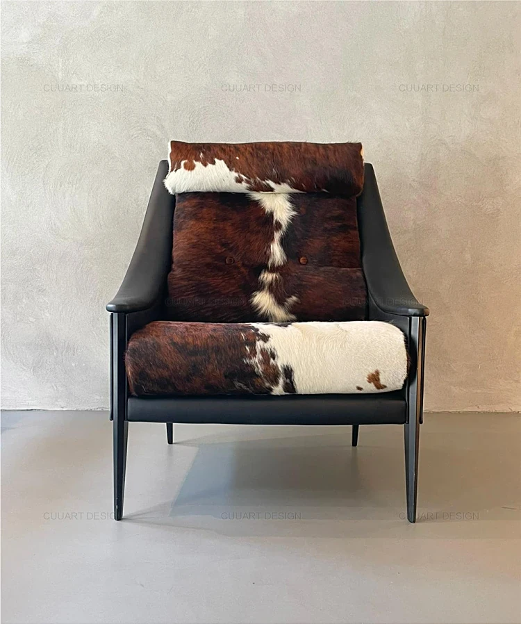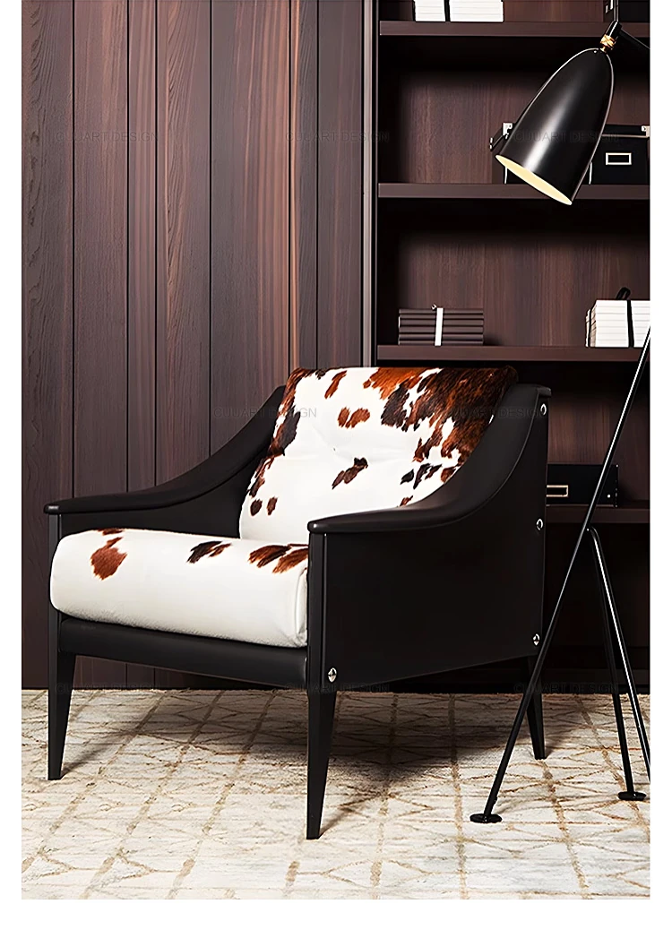 高型【黒白の輸入ミルク牛真皮】-Dezzaアームチェア