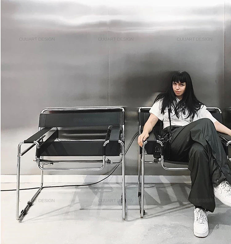 一人用軽奢デザインのワッシリー・チェア - 高級馬革使用のヴィンテージスタイルリラックスソファ、洗練されたお洒落な談話スペースに最適!