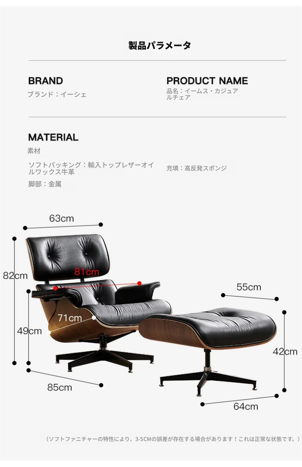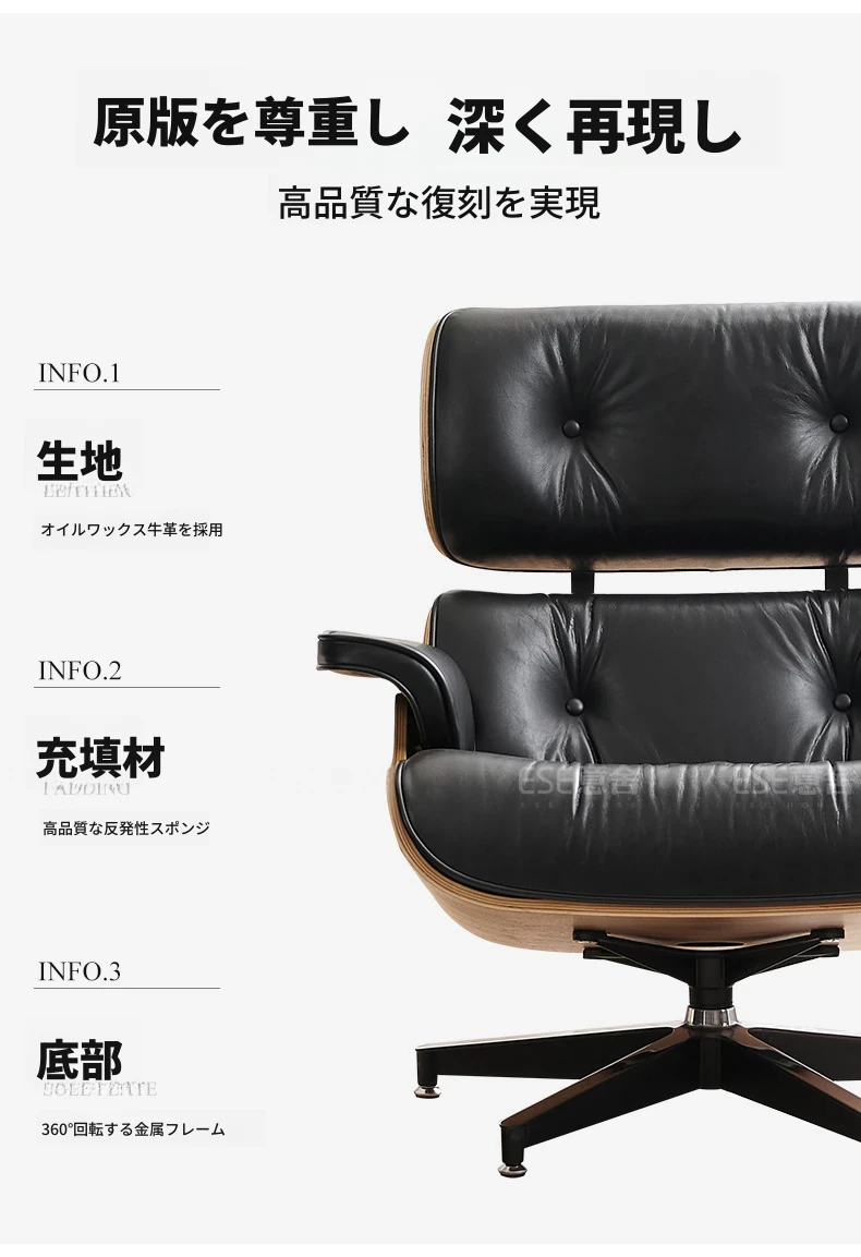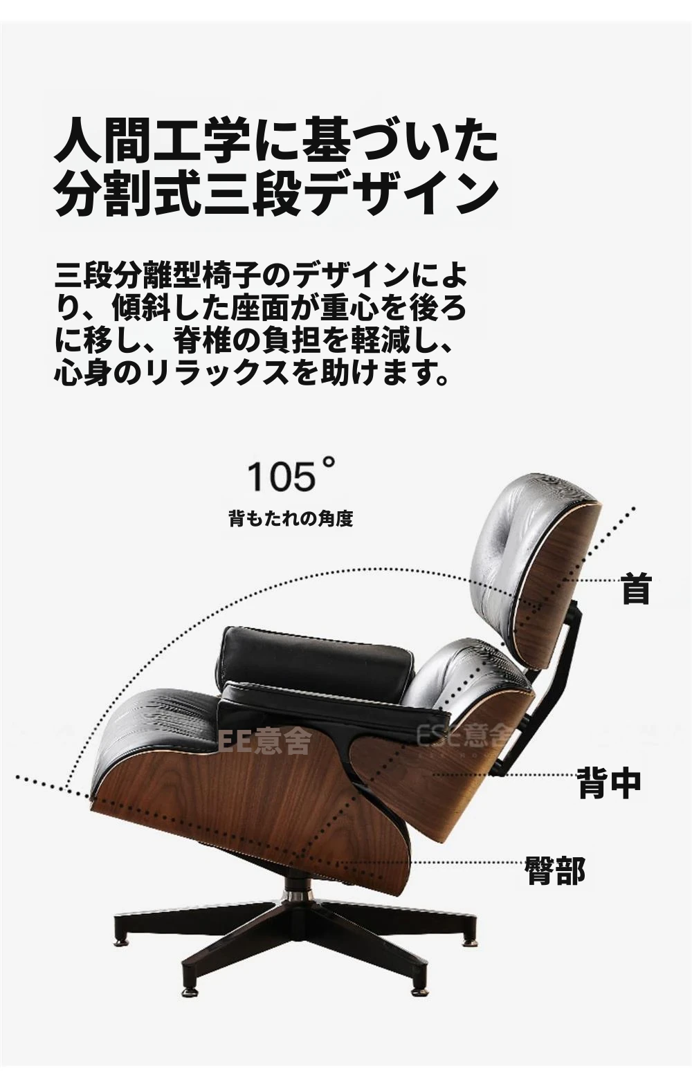 イームズリクライニングチェア クラシックデザインのラグジュアリーな一人掛けソファ モダンな本革製 北欧スタイルのエグゼクティブチェアで、くつろぎのひとときを演出します。