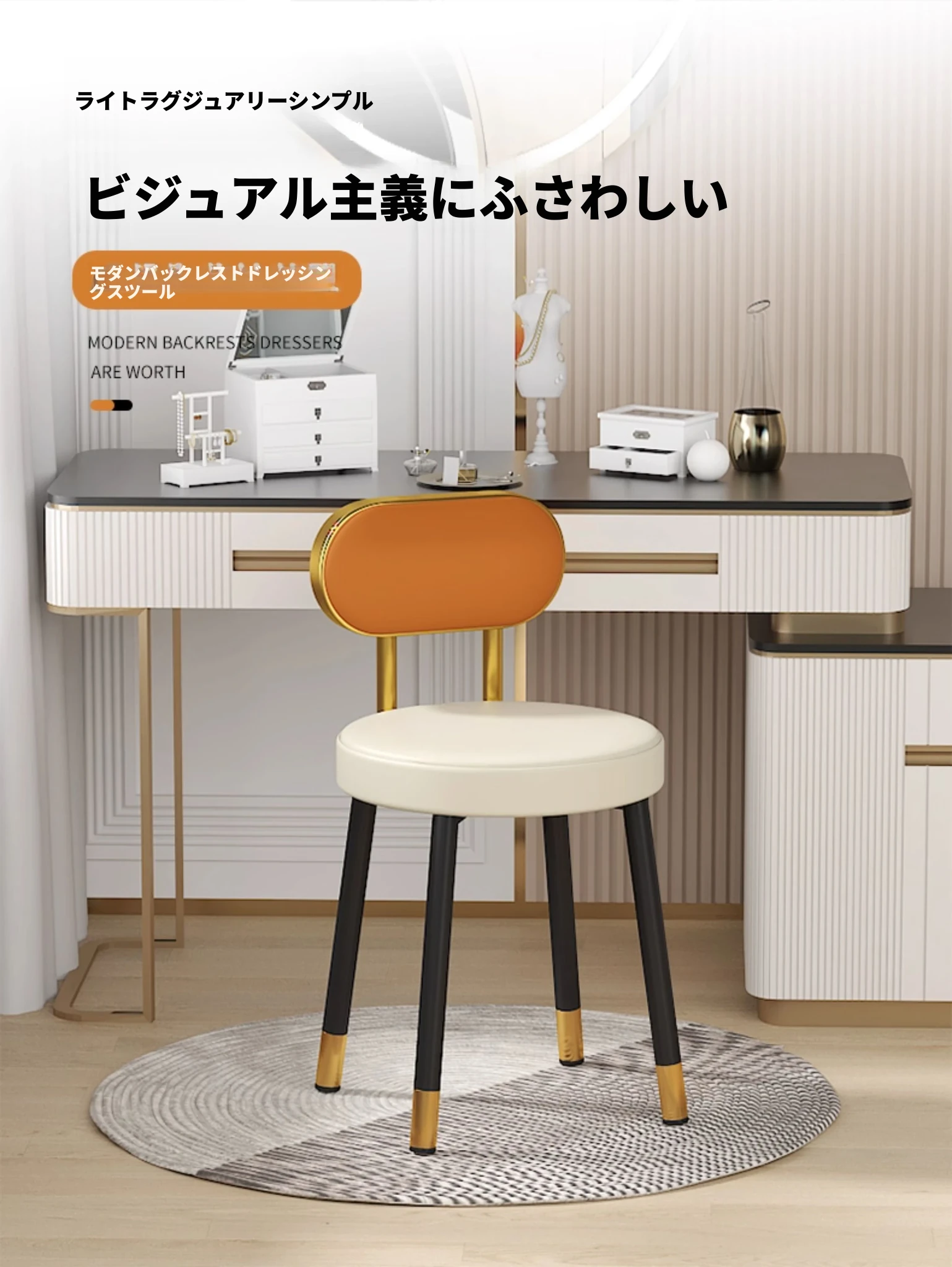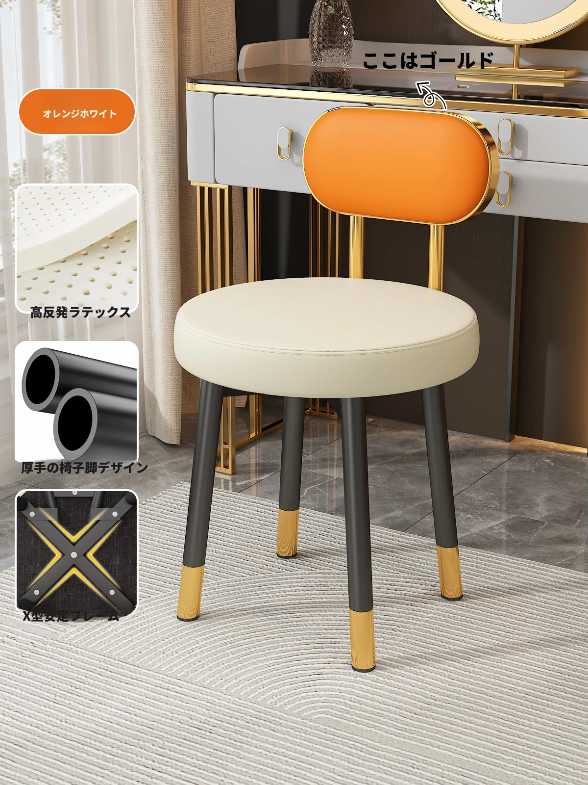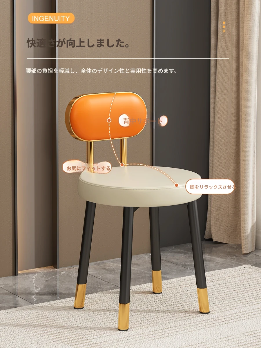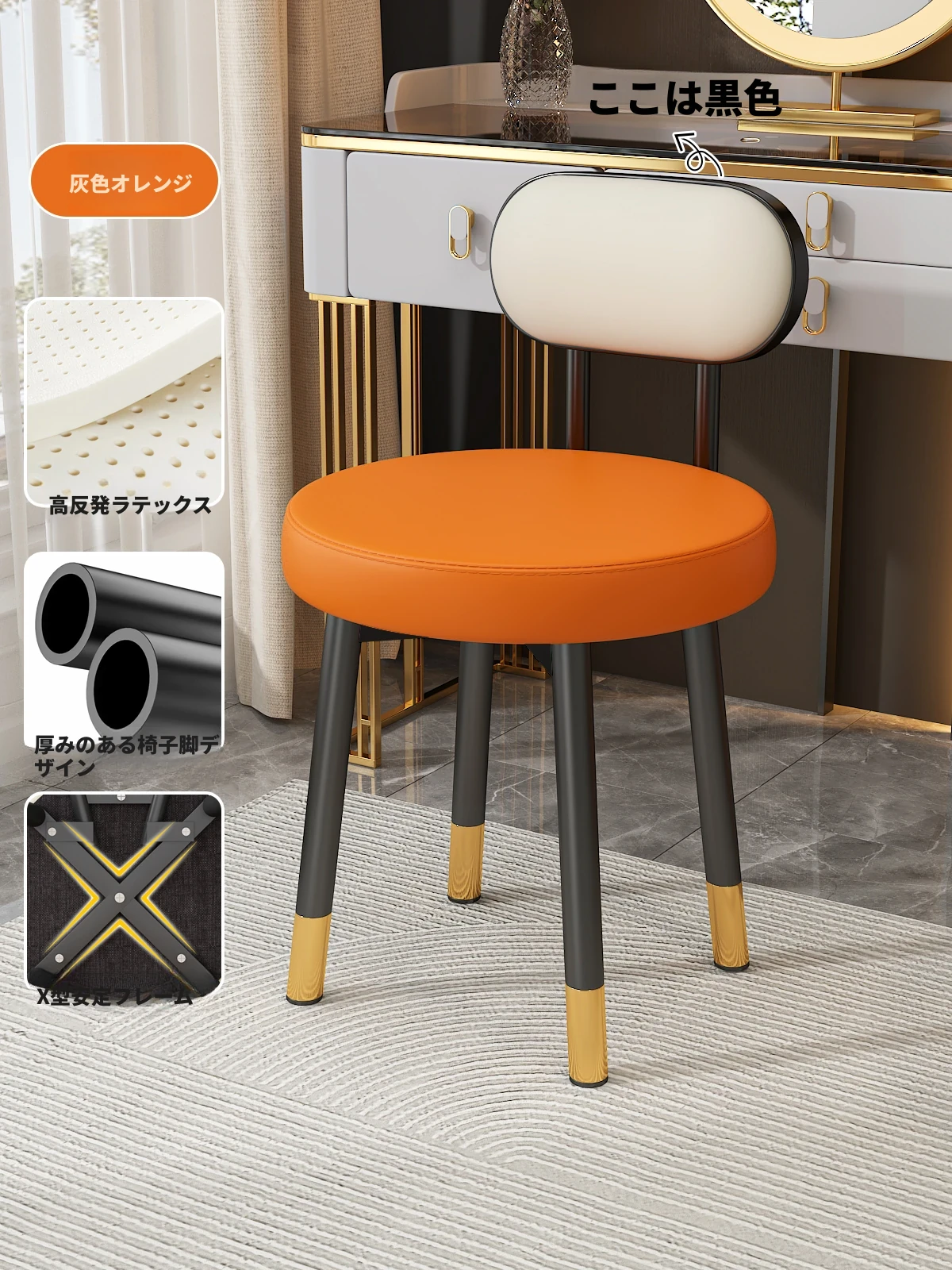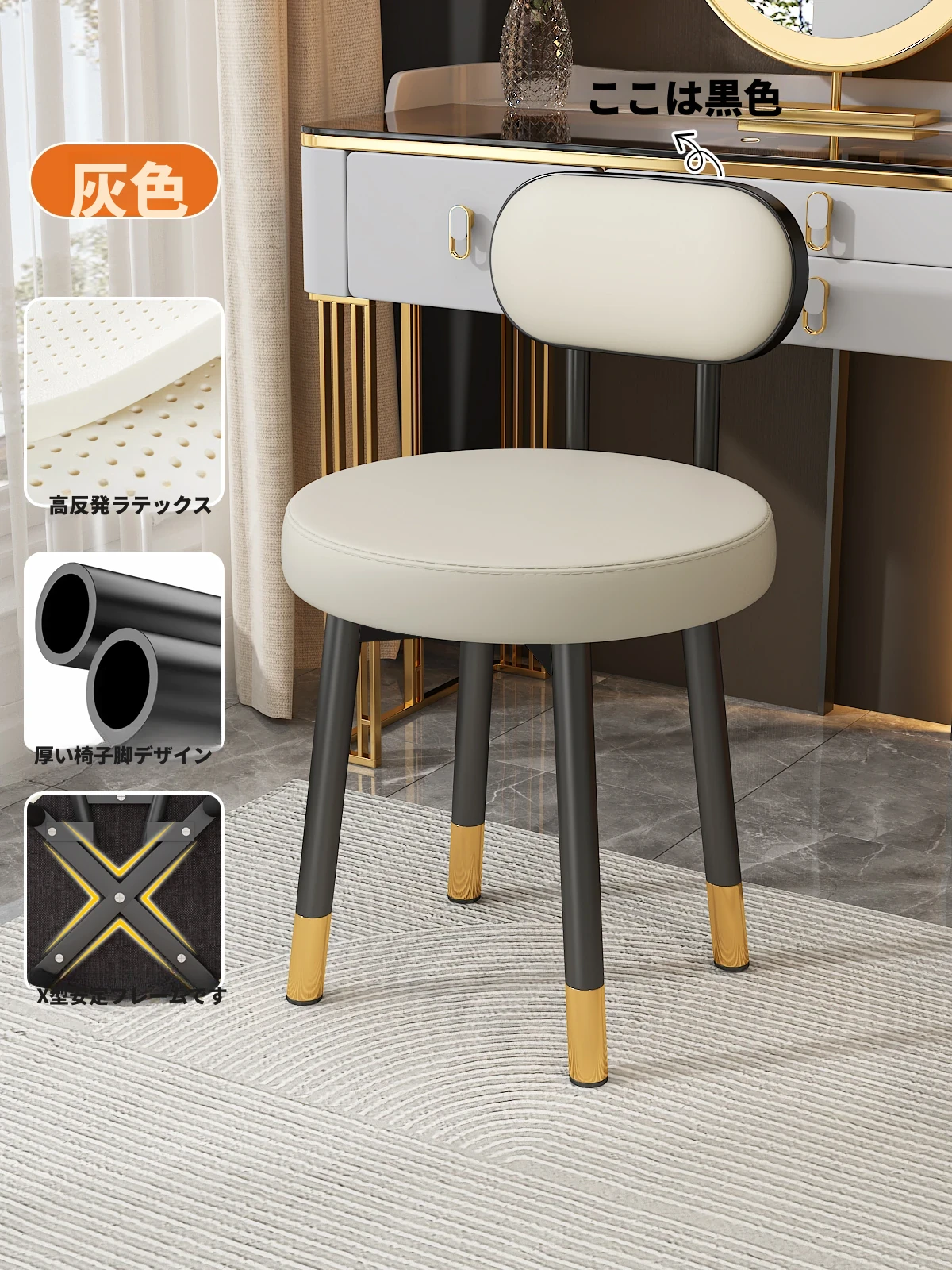 高級感溢れる家用メイクスツール!女性のための洗練された寝室ドレッサー用椅子、背もたれ付きのコンパクトなデザイン。小型のダイニングチェアや丸椅子としても使え、スタイリッシュな空間を演出します。