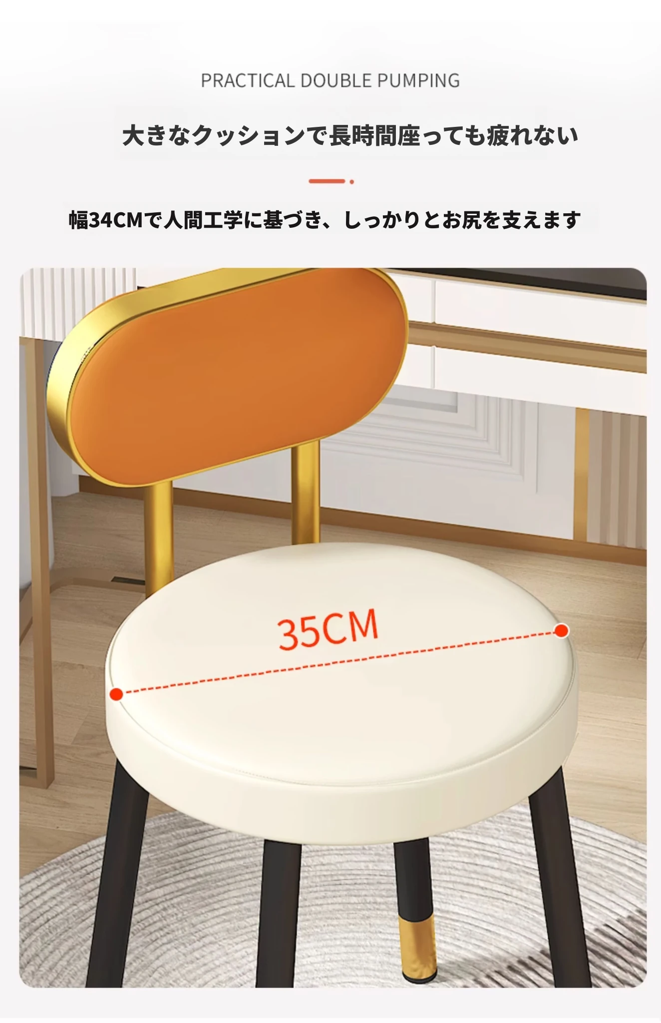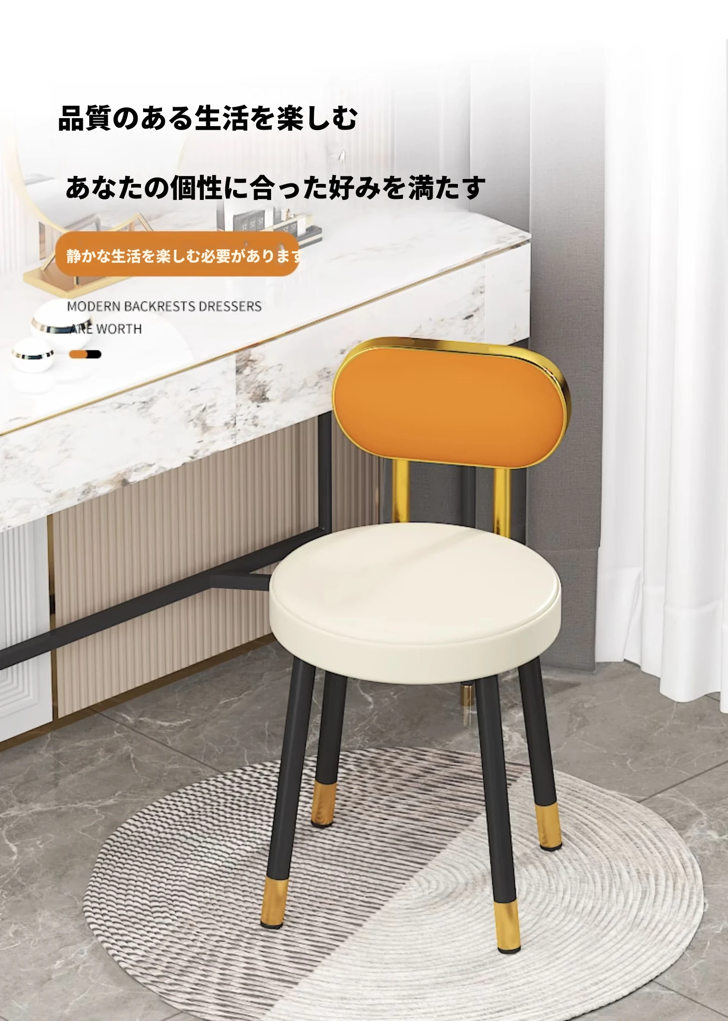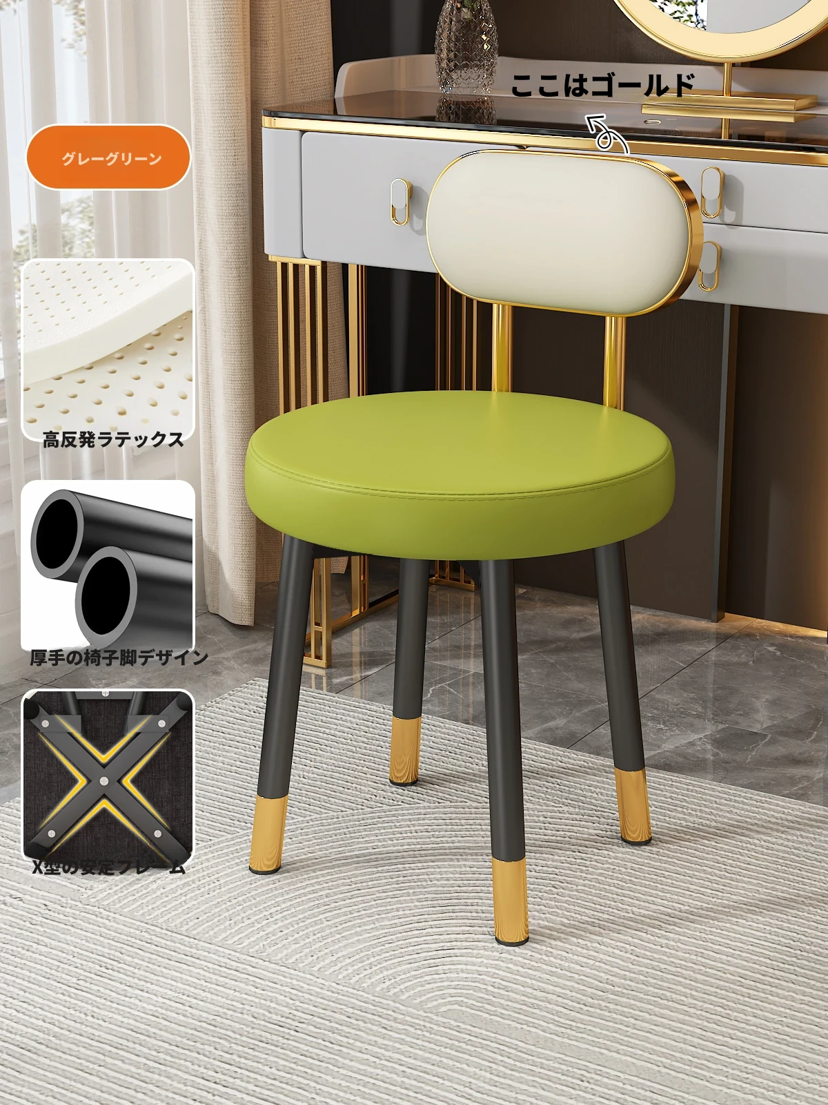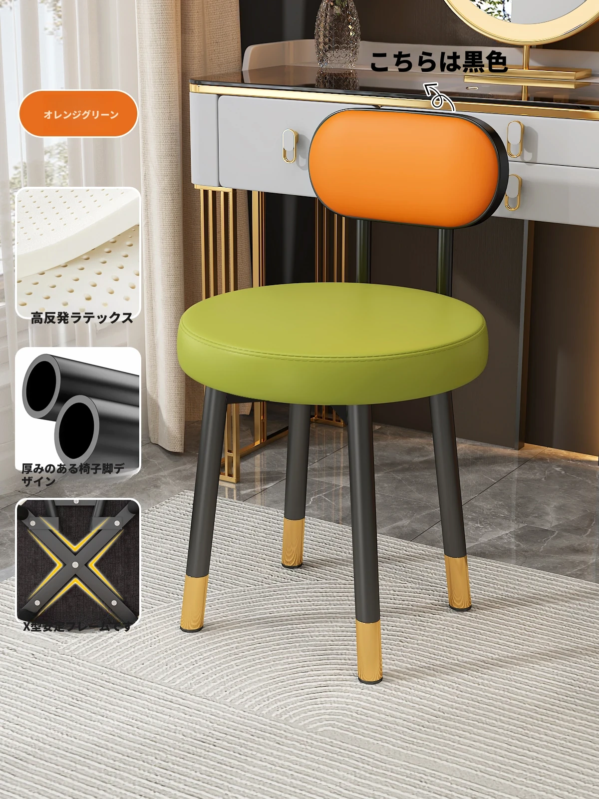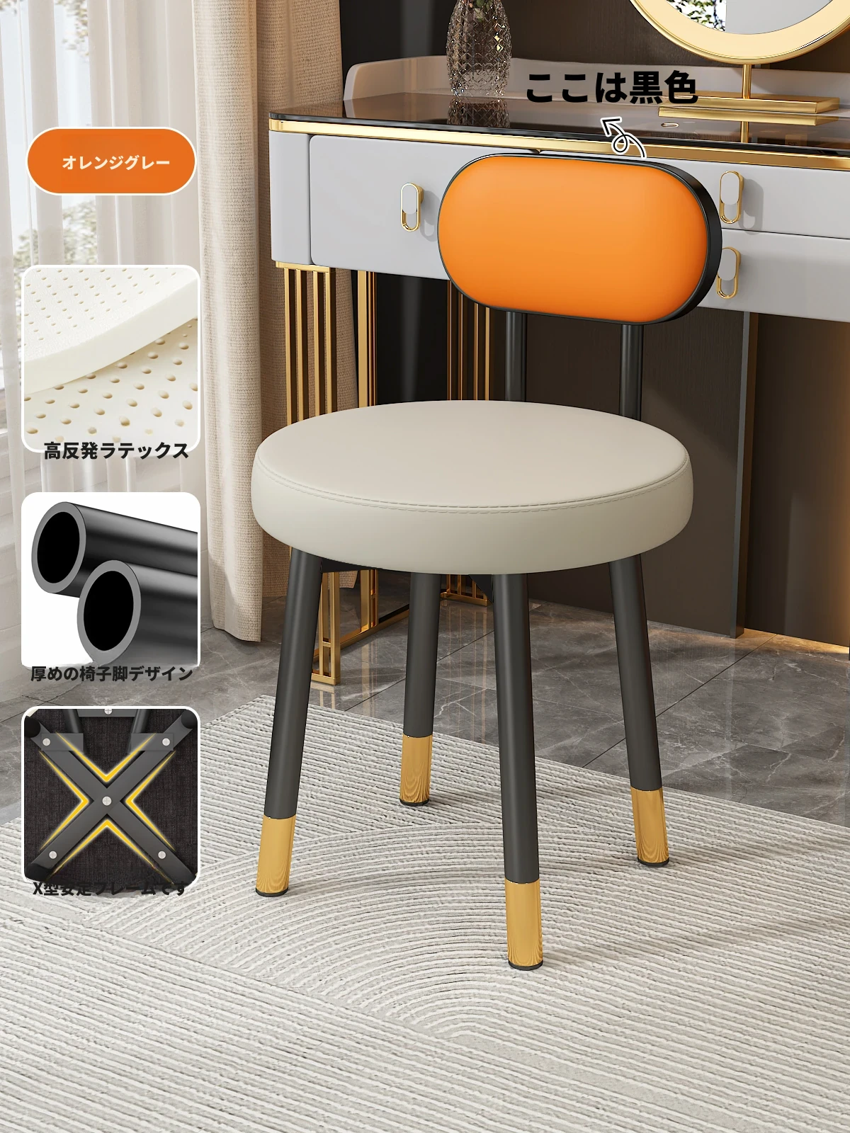 高級感溢れる家用メイクスツール!女性のための洗練された寝室ドレッサー用椅子、背もたれ付きのコンパクトなデザイン。小型のダイニングチェアや丸椅子としても使え、スタイリッシュな空間を演出します。