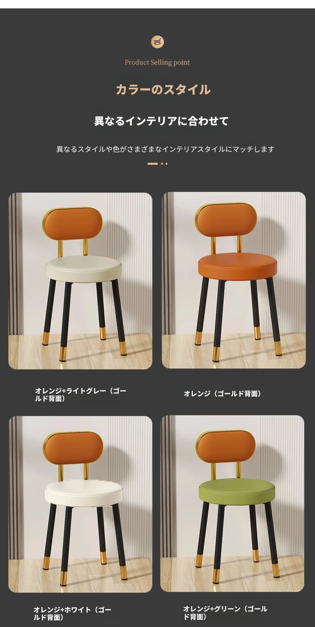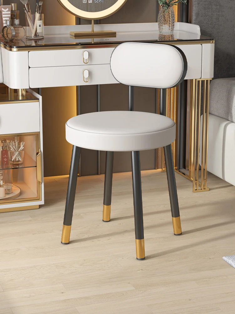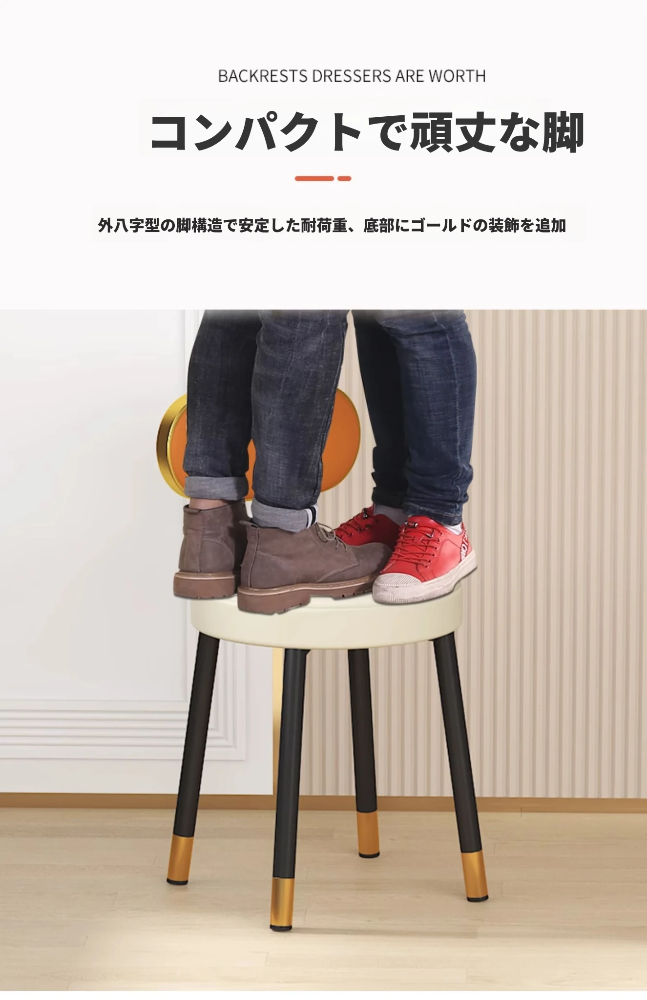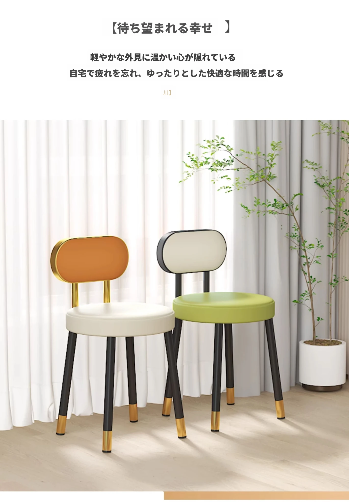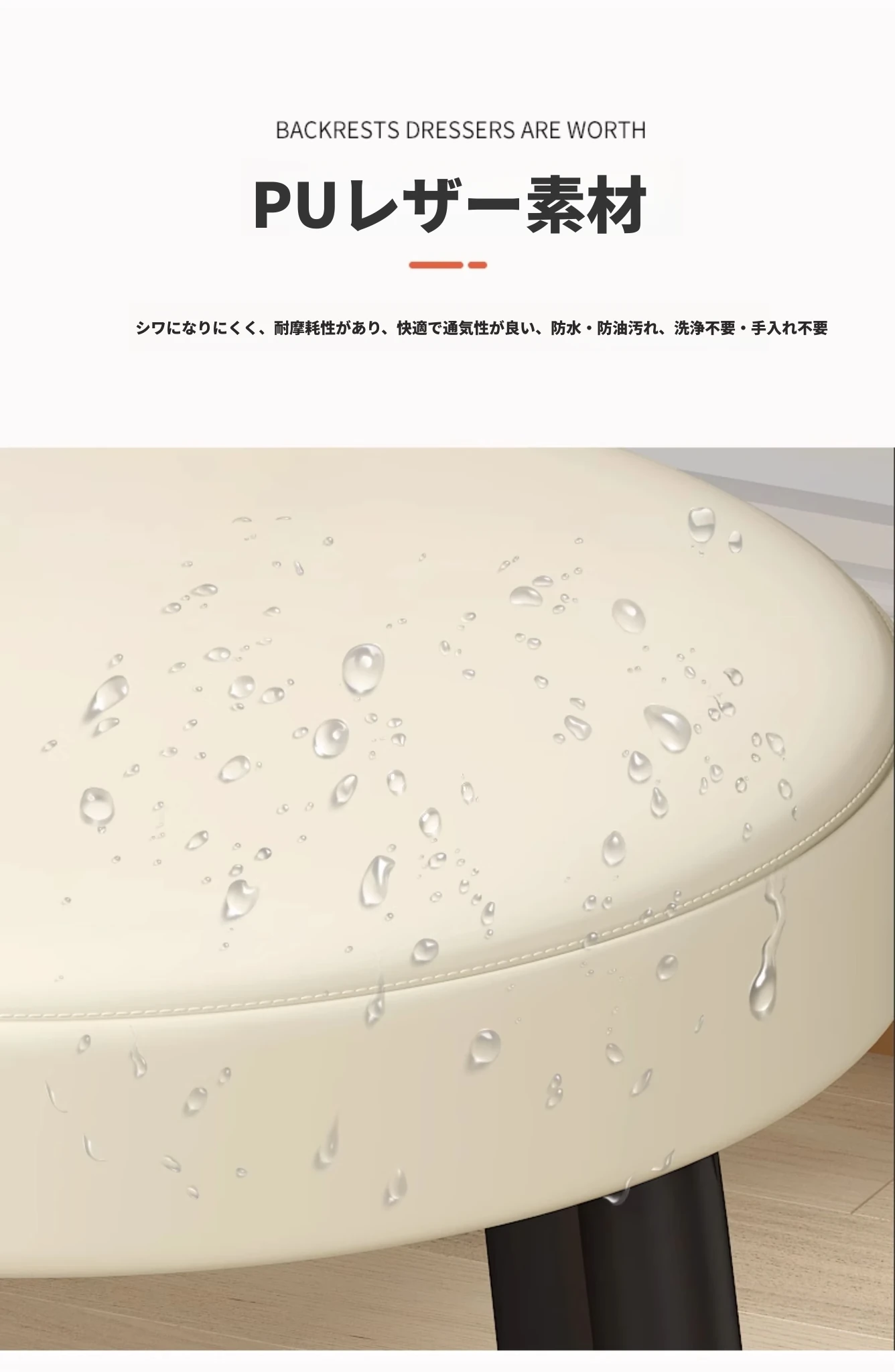 高級感溢れる家用メイクスツール!女性のための洗練された寝室ドレッサー用椅子、背もたれ付きのコンパクトなデザイン。小型のダイニングチェアや丸椅子としても使え、スタイリッシュな空間を演出します。