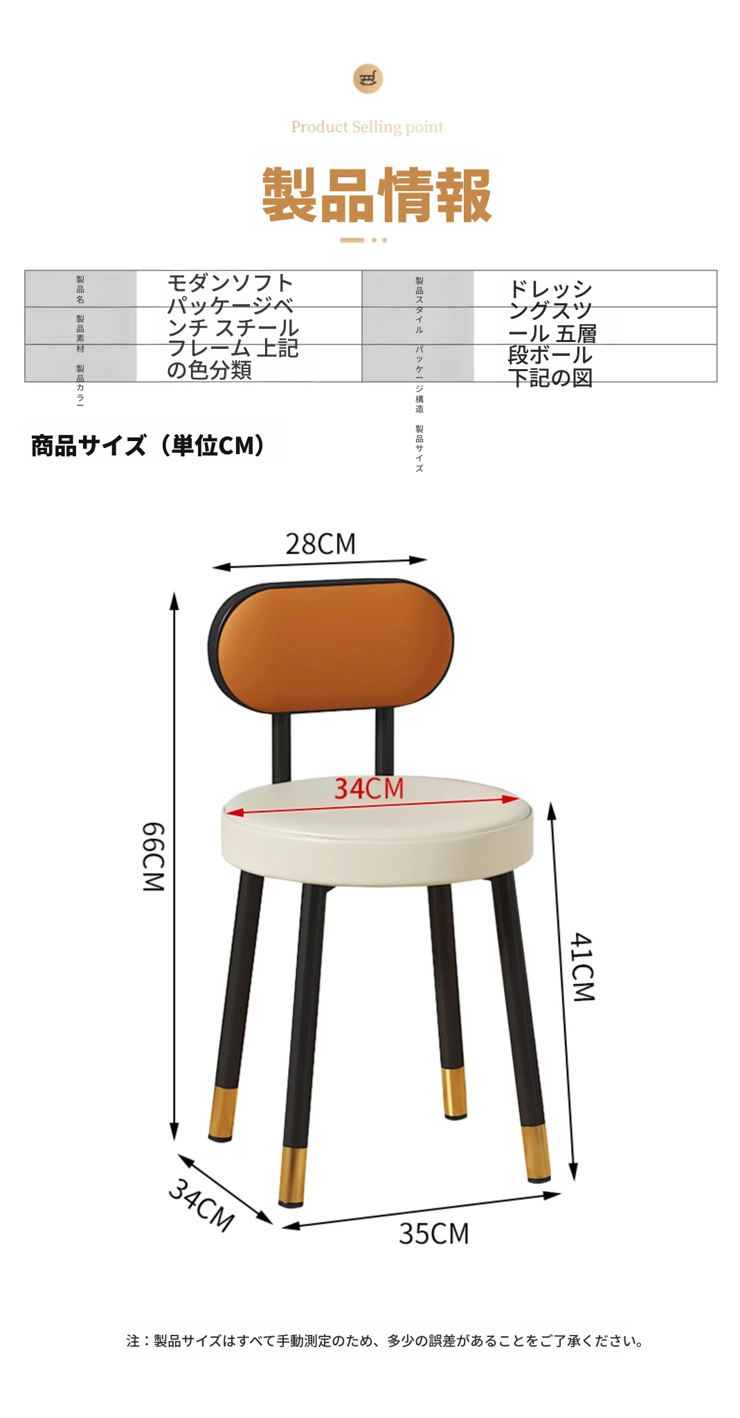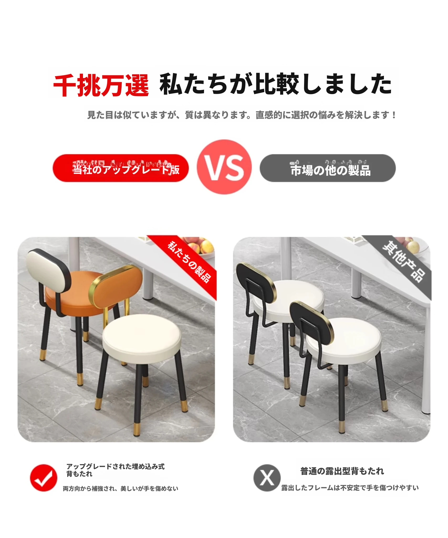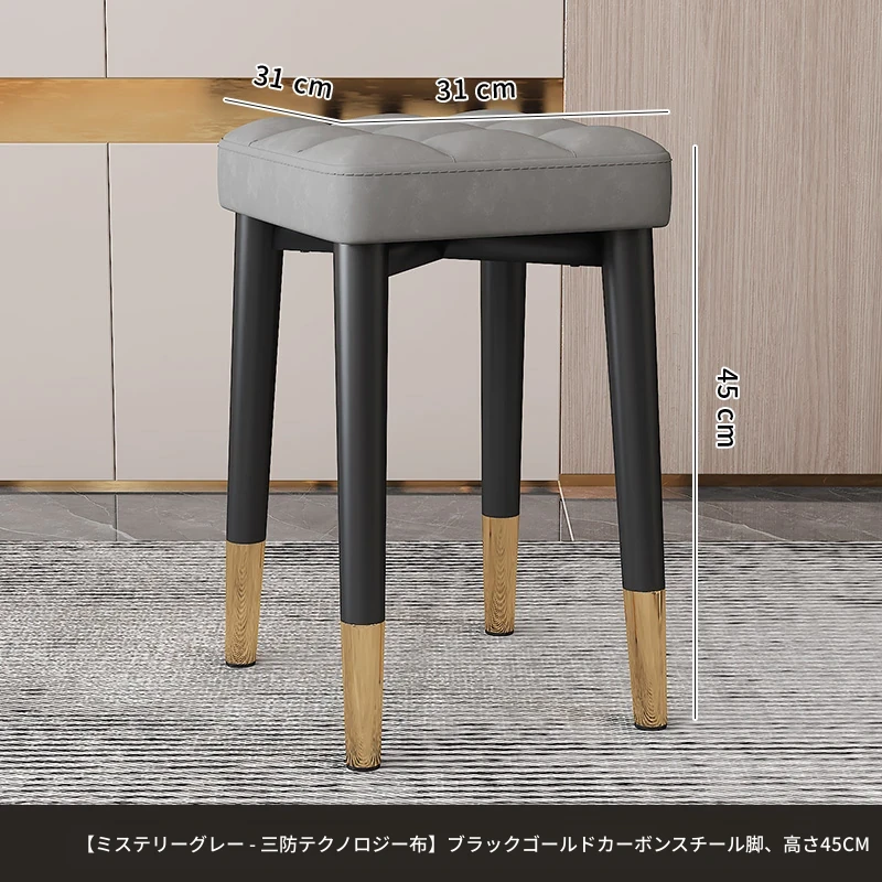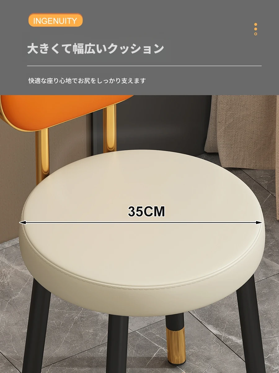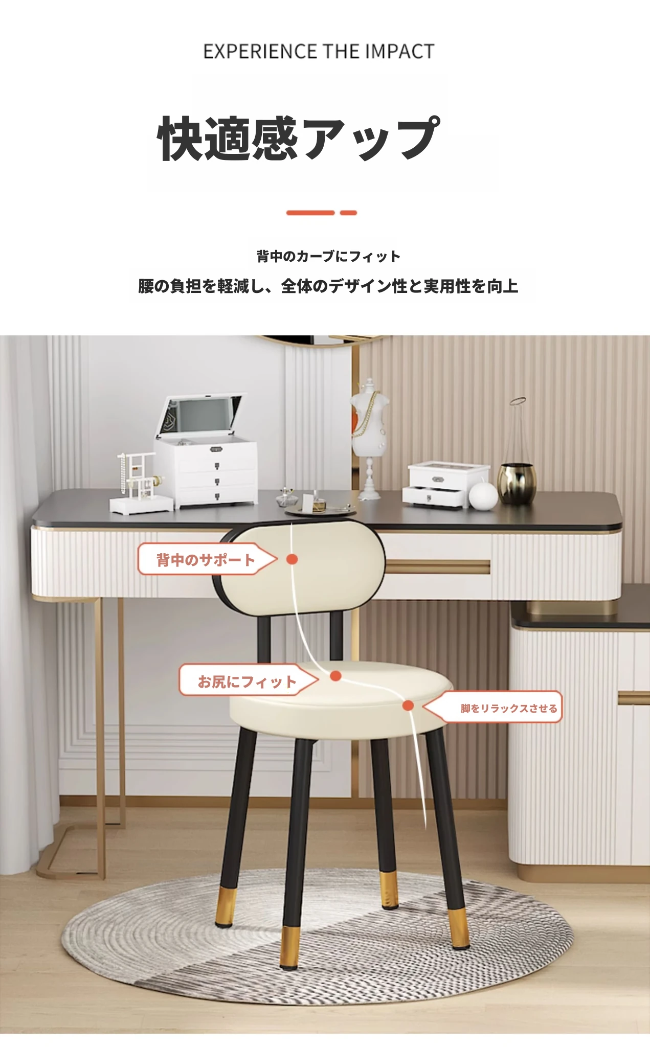 高級感溢れる家用メイクスツール!女性のための洗練された寝室ドレッサー用椅子、背もたれ付きのコンパクトなデザイン。小型のダイニングチェアや丸椅子としても使え、スタイリッシュな空間を演出します。