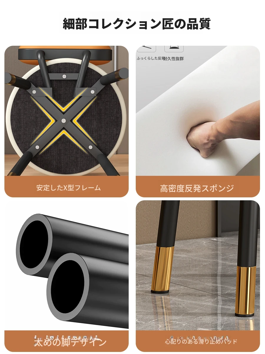 【ラテックスマット】ビビッドオレンジゴールド脚-耐磨耗テクノロジー布