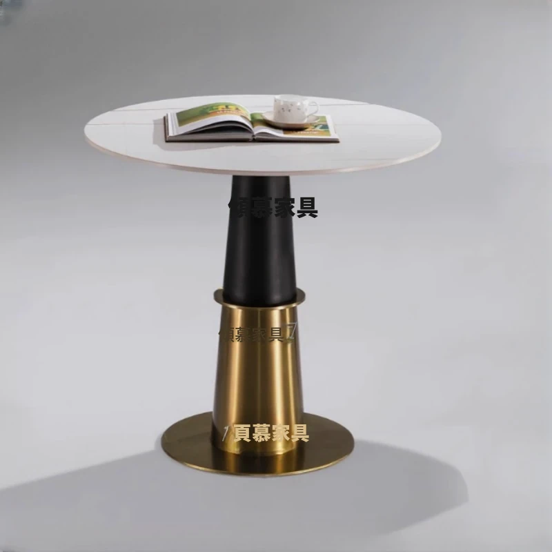 ホテルロビー用商談テーブルセット|タピオカ販売、モデルルーム、西洋料理にも最適|家庭用のスタイリッシュな岩板小丸テーブル|高級感あふれる大理石デザイン!