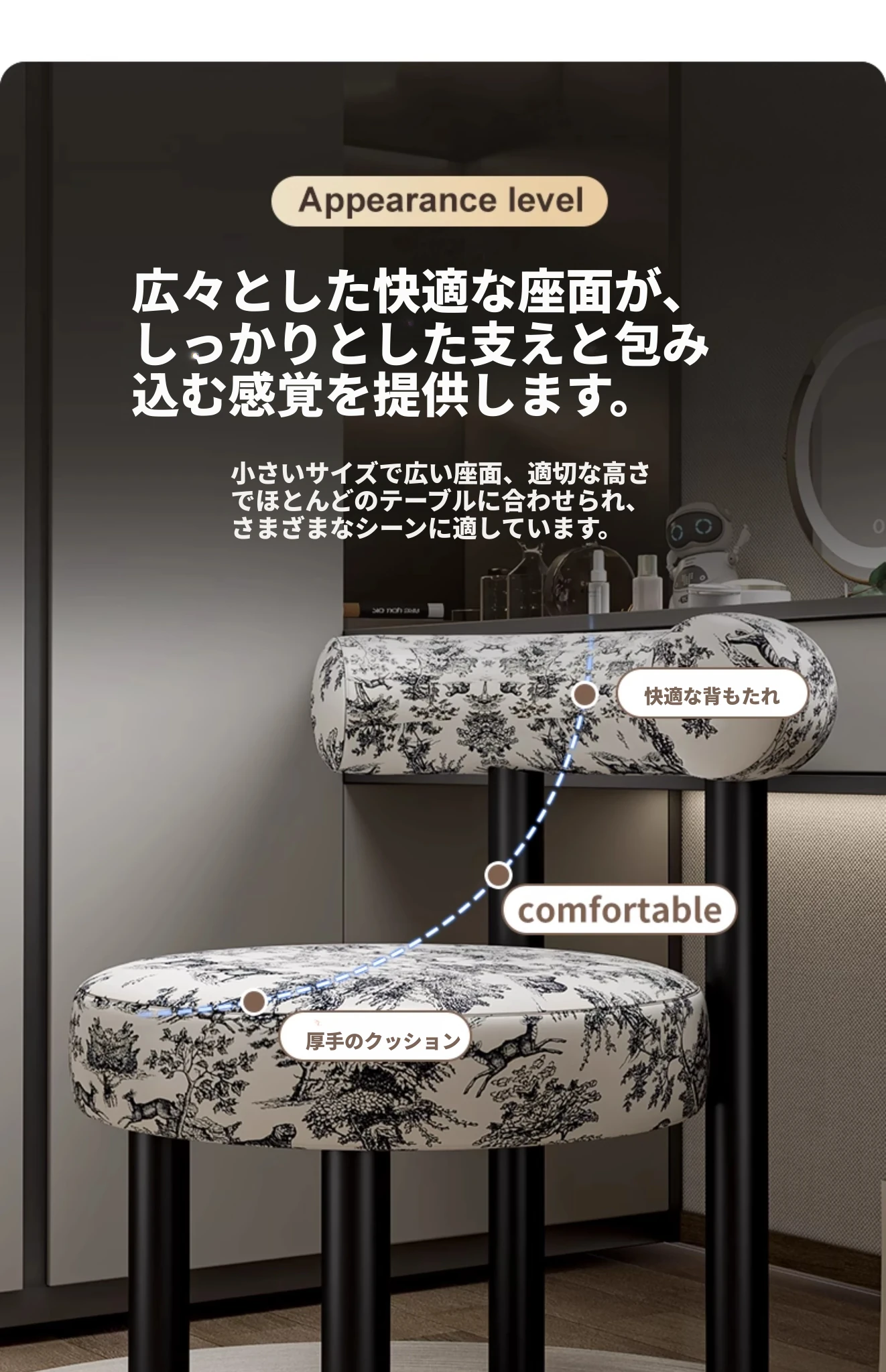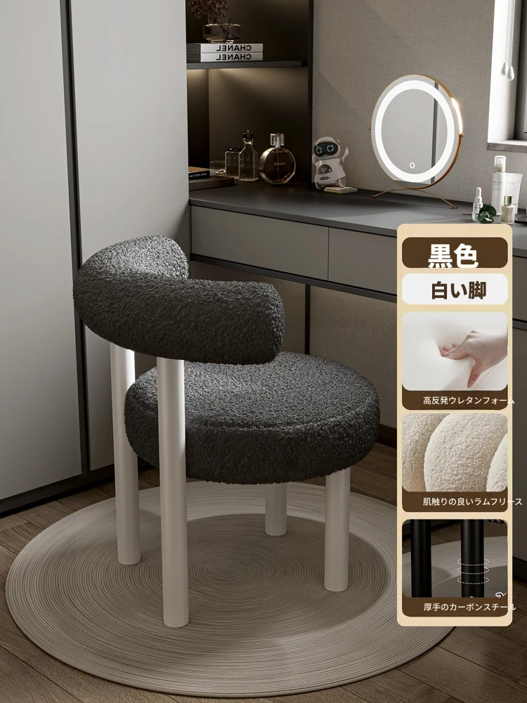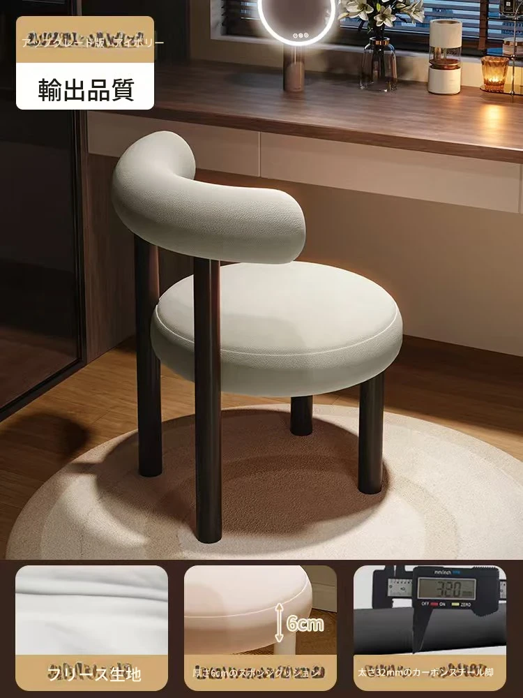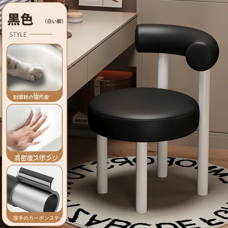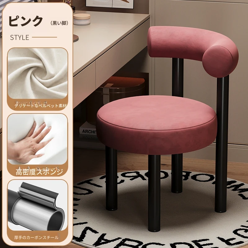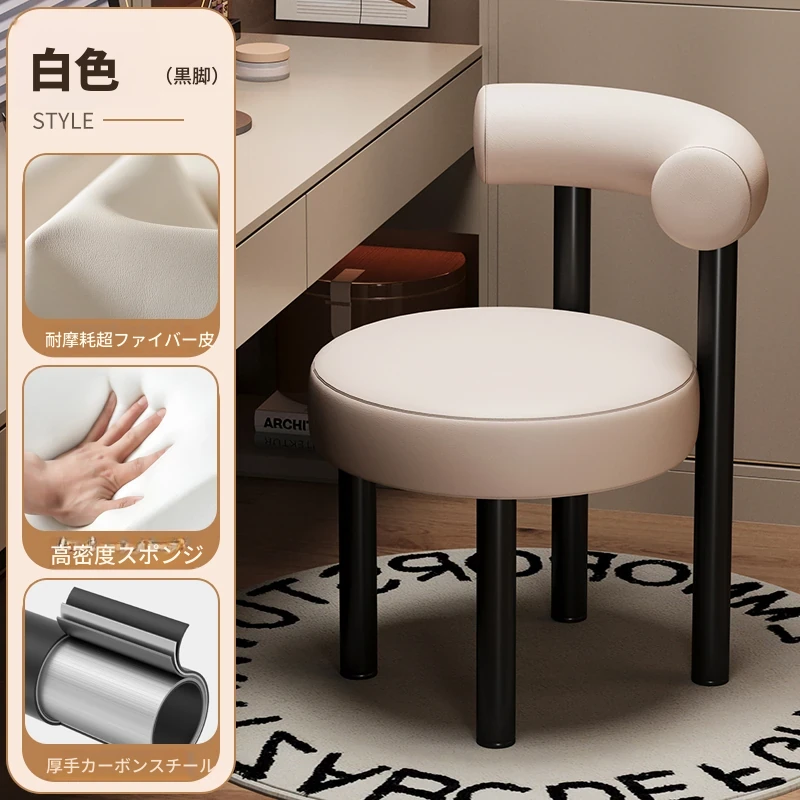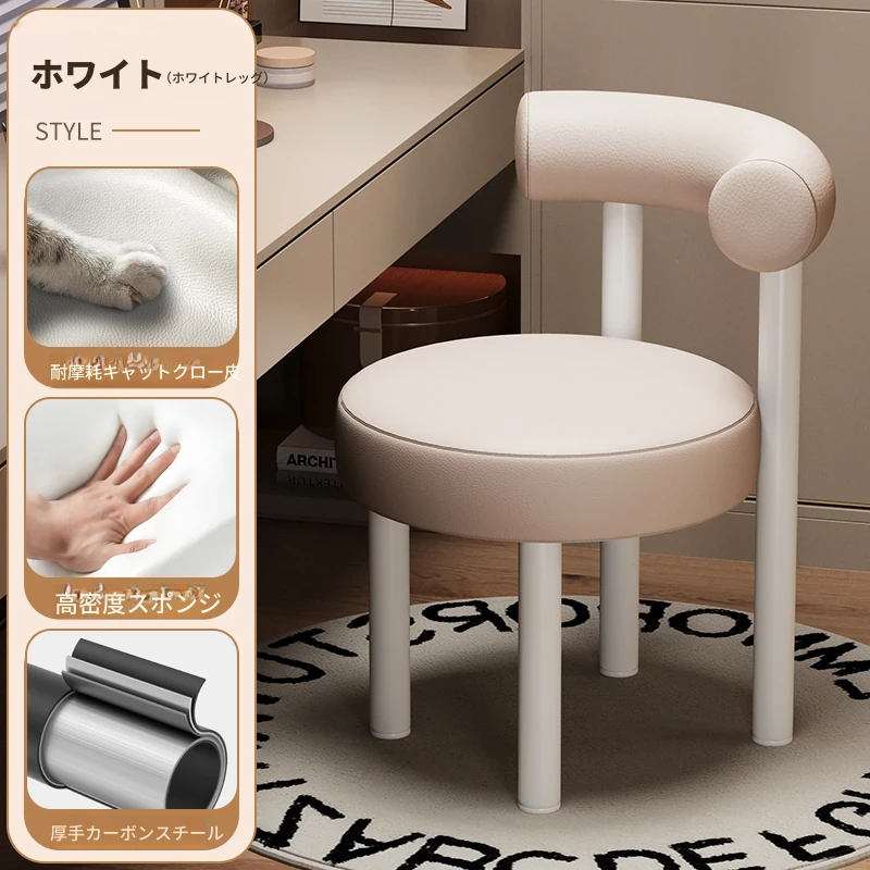 シンプルでエレガントなメイクアップチェア - 自宅の寝室にぴったりな高級感溢れるネイルスツール。快適な背もたれ付きで、女性のビューティースペースを華やかに演出します。