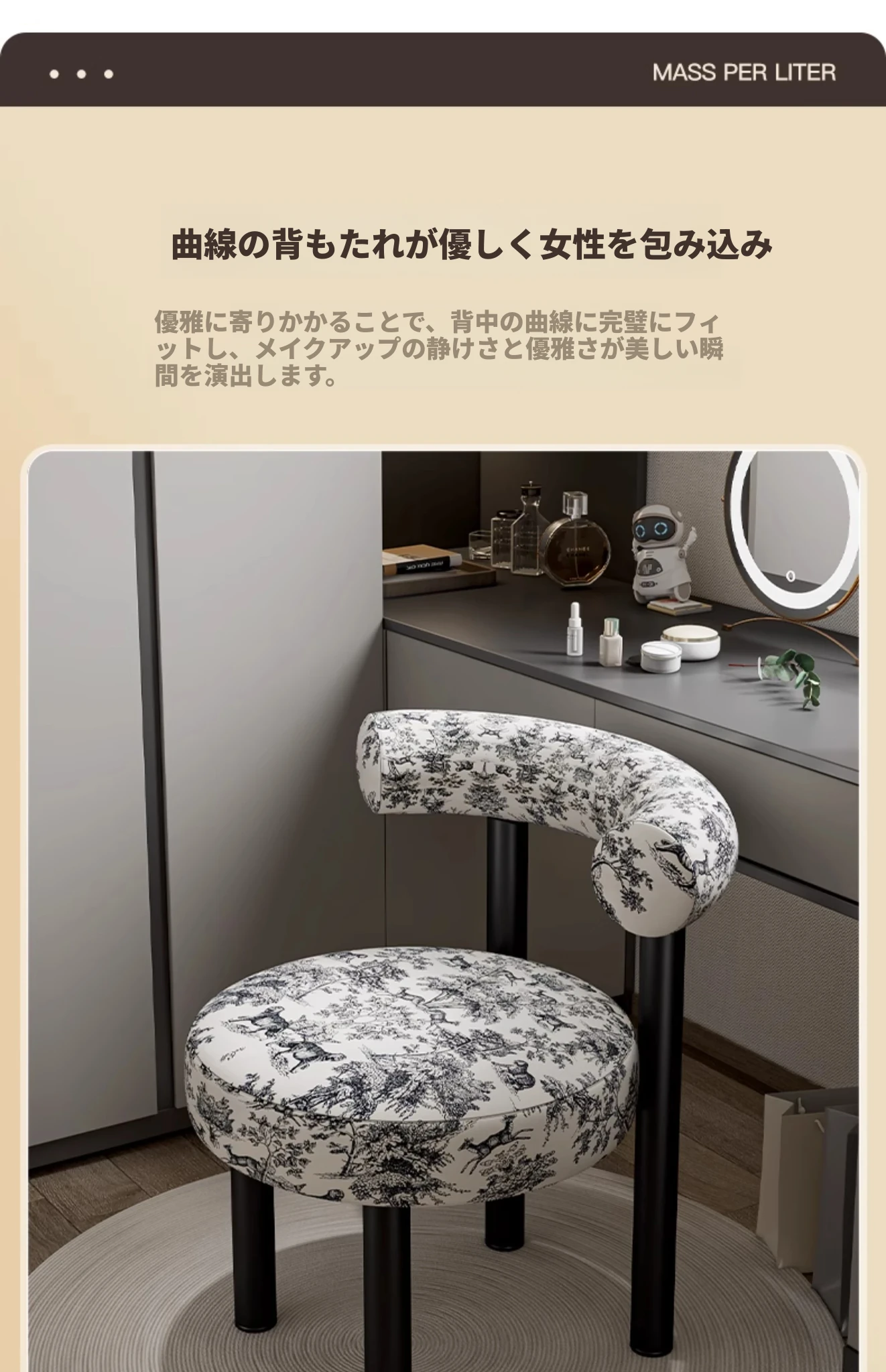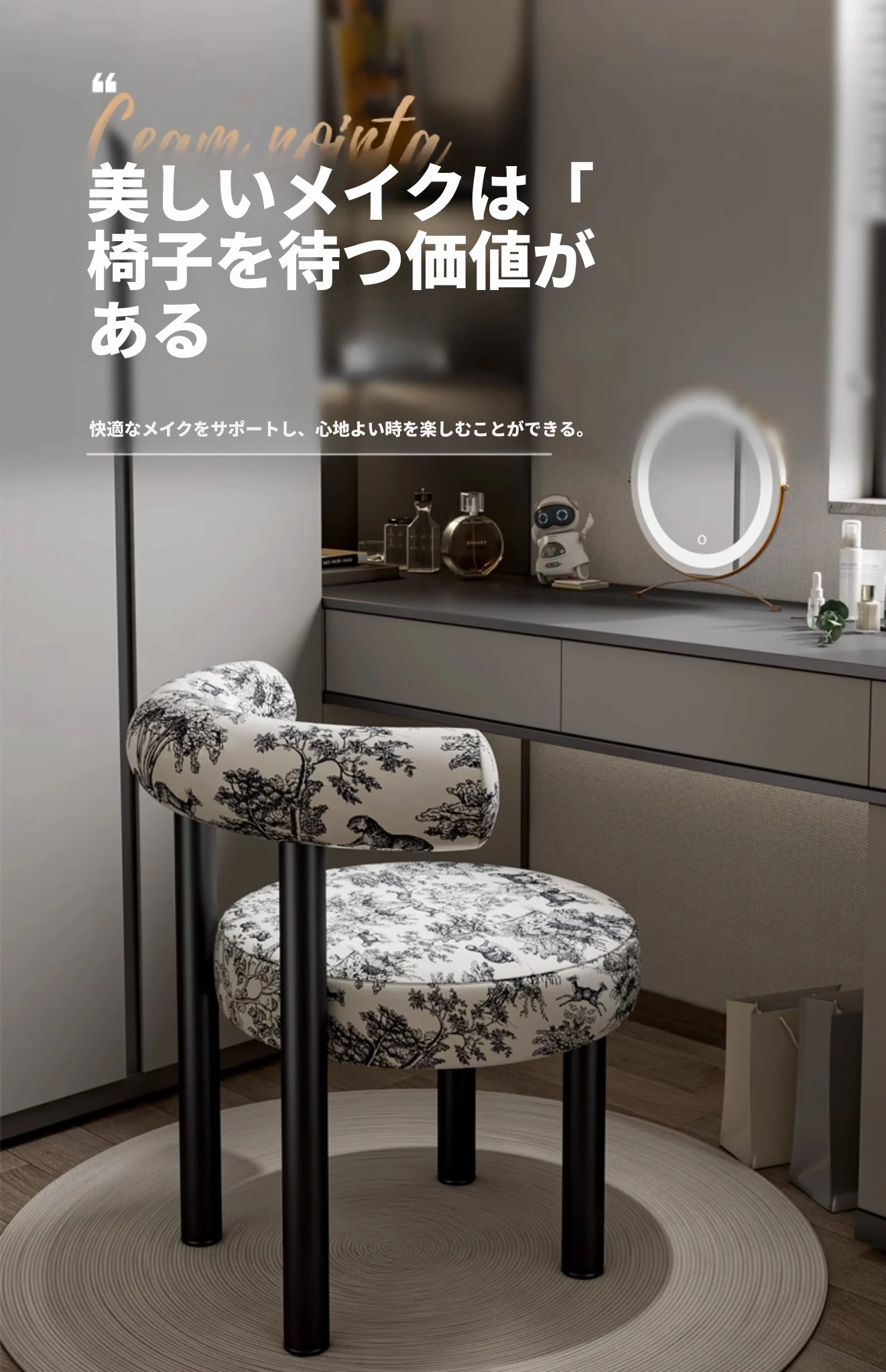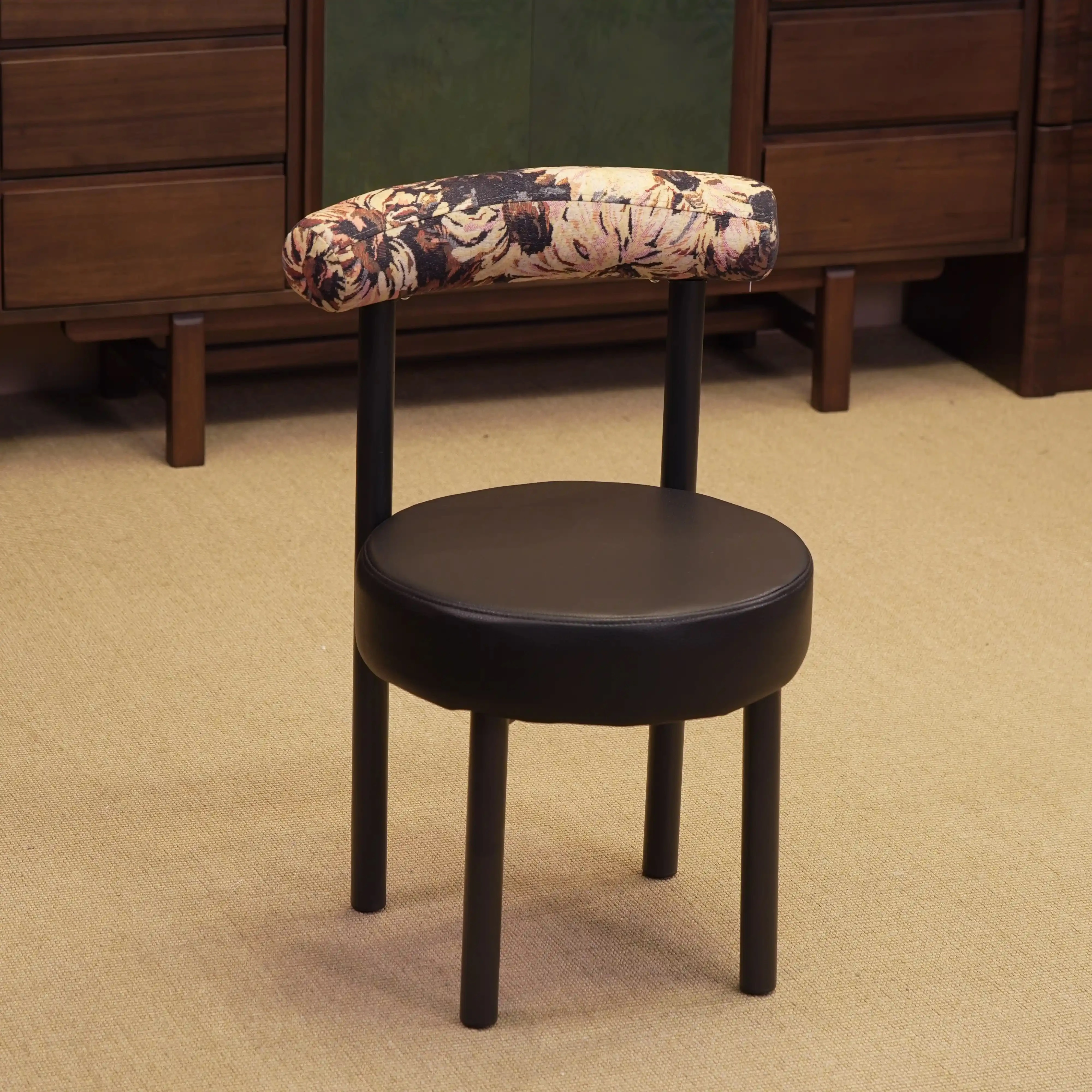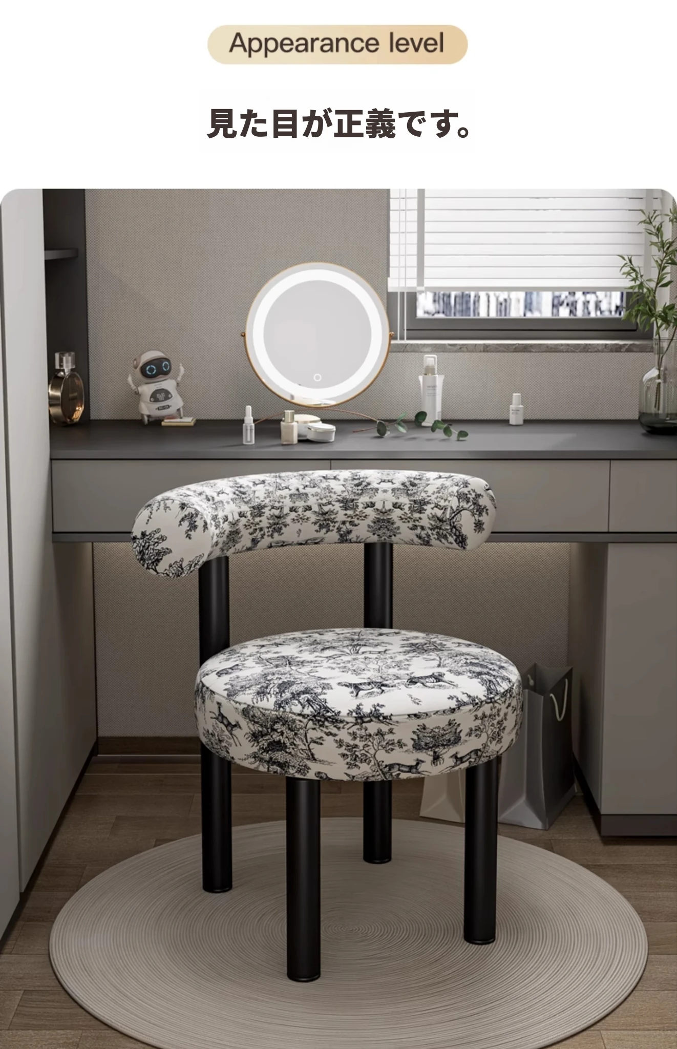 シンプルでエレガントなメイクアップチェア - 自宅の寝室にぴったりな高級感溢れるネイルスツール。快適な背もたれ付きで、女性のビューティースペースを華やかに演出します。