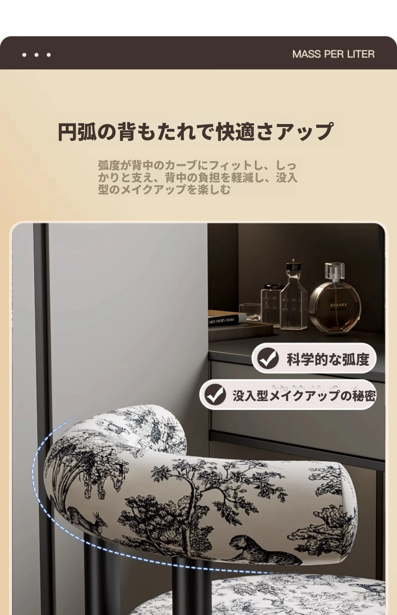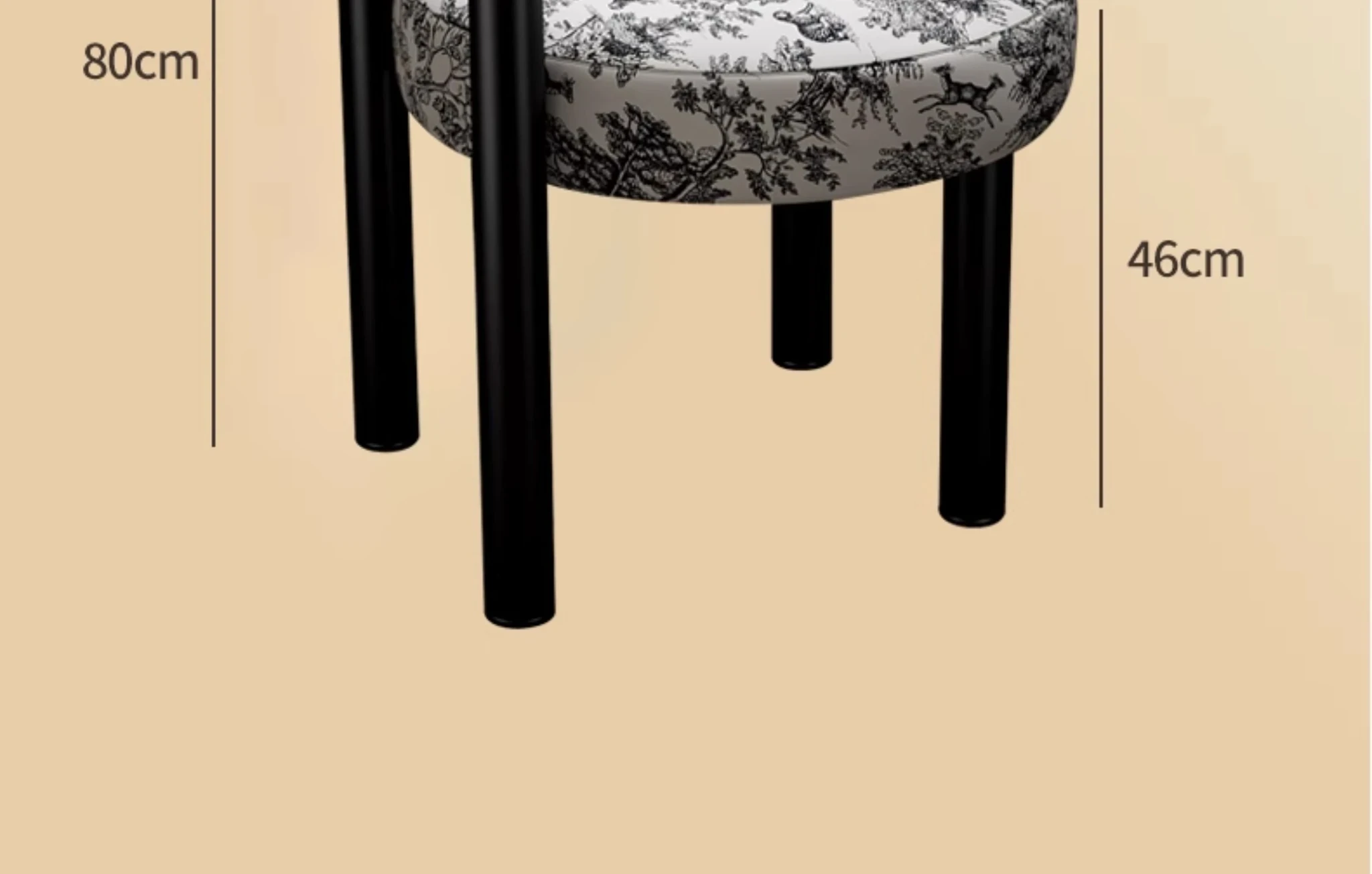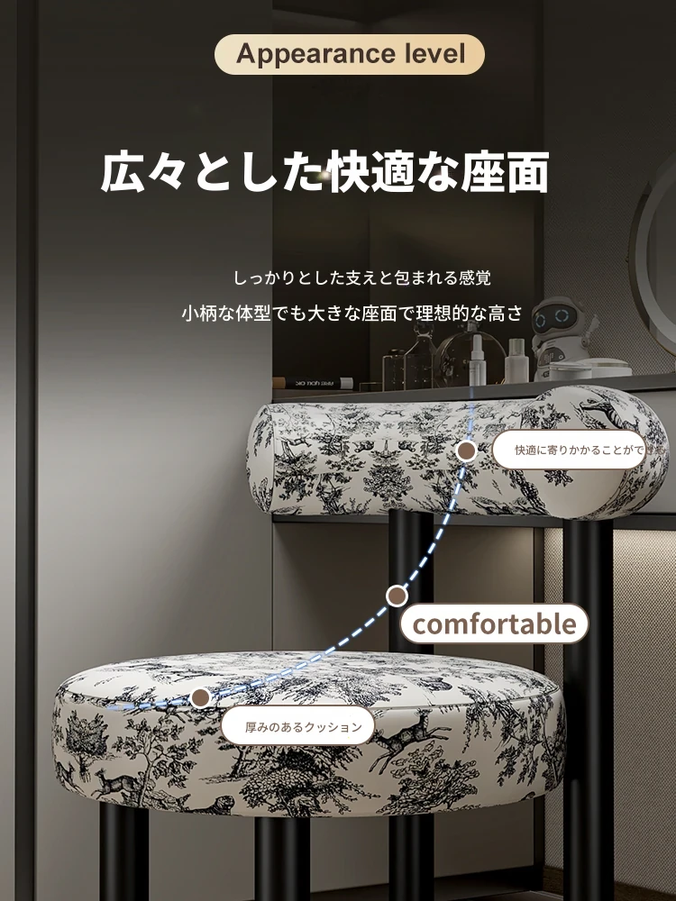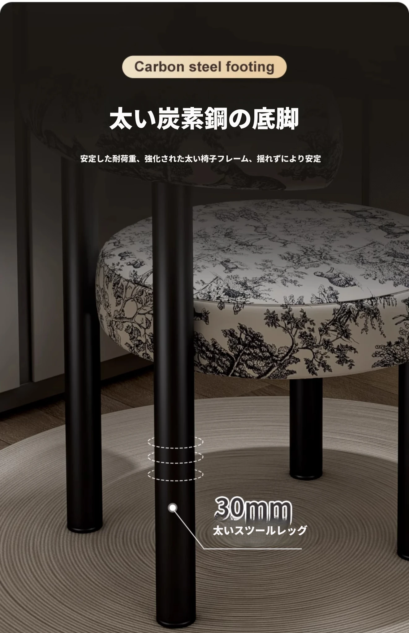 シンプルでエレガントなメイクアップチェア - 自宅の寝室にぴったりな高級感溢れるネイルスツール。快適な背もたれ付きで、女性のビューティースペースを華やかに演出します。