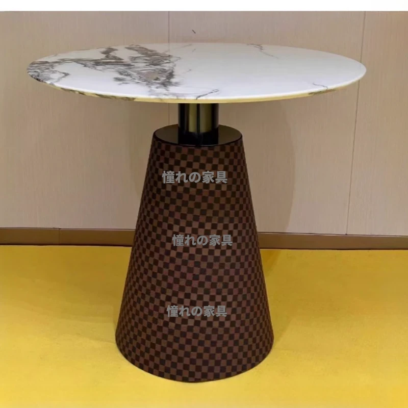 ホテルロビーの商談用テーブル&椅子セット|ミルクティー販売所・西洋料理店・家庭用に最適!高級感あふれる大理石デザインの小丸テーブルで、あなたの空間をより魅力的に演出します。