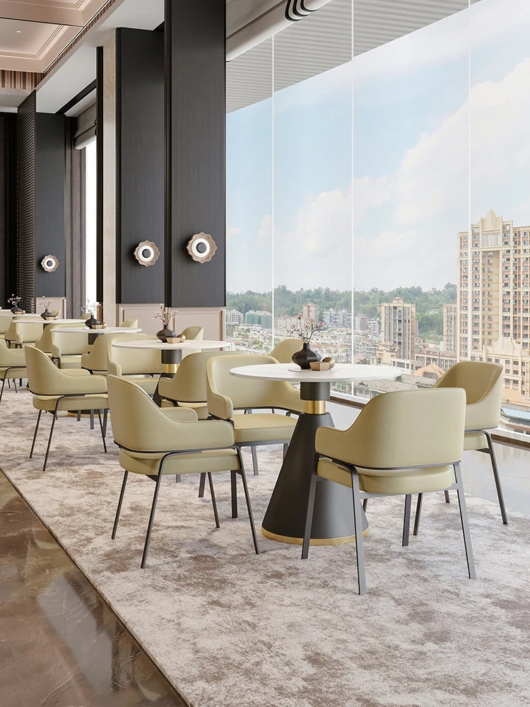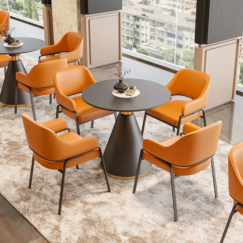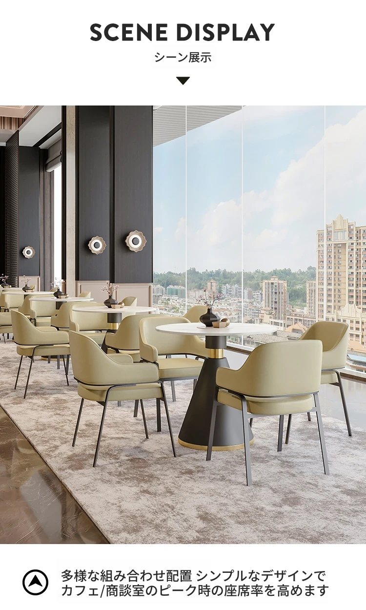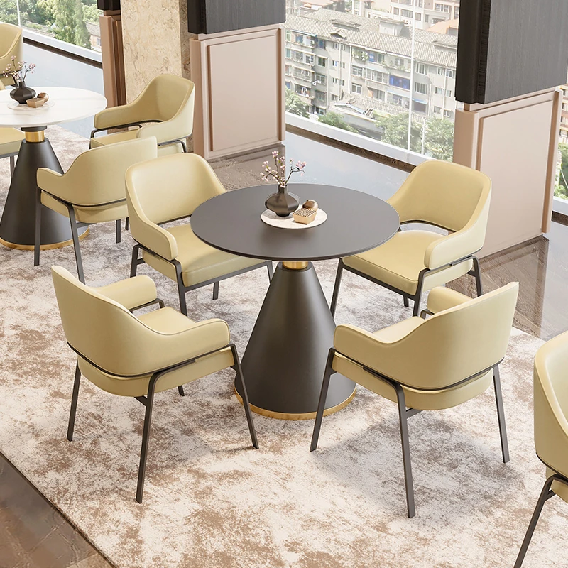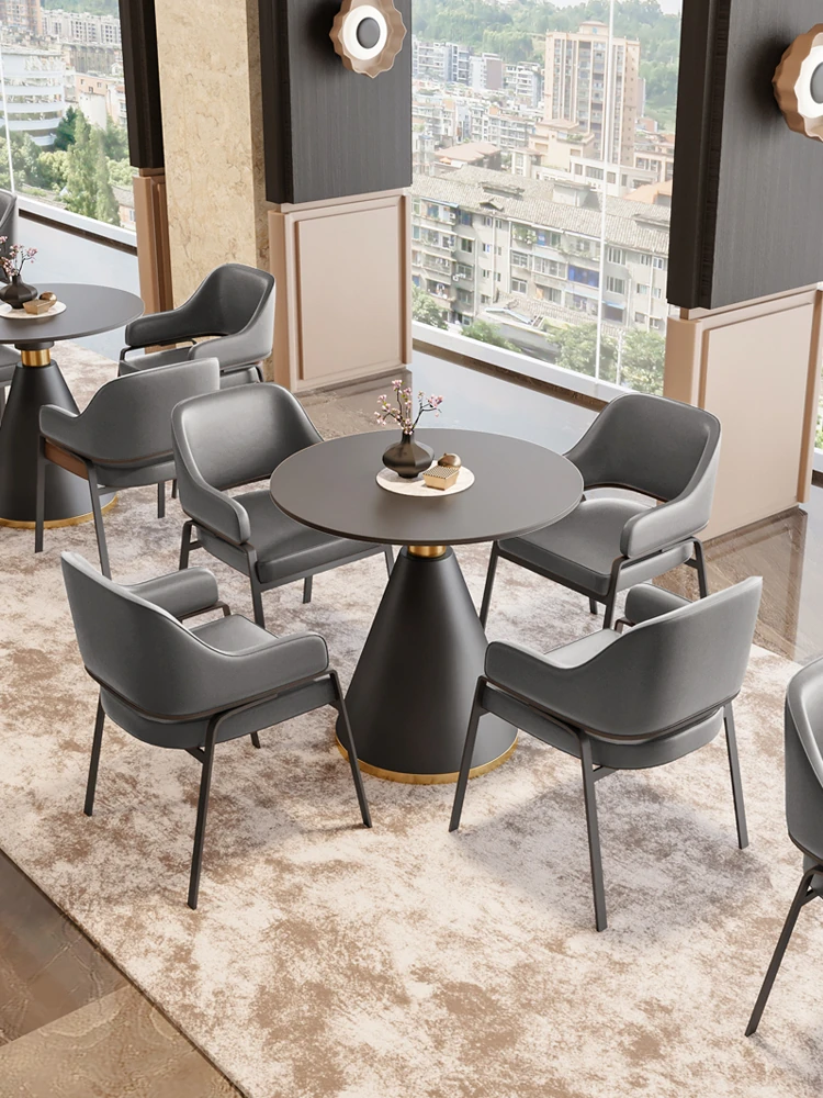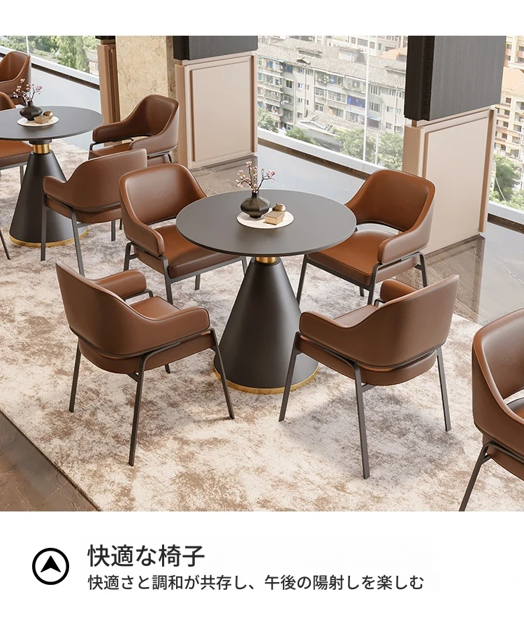 洗練されたデザインの商談テーブルセット - 高級感溢れる売店、ホテルロビー、休憩所に最適!談判用の一卓四椅子で、優雅なひとときを演出します。快適な接客スペースをお求めの方におすすめ!