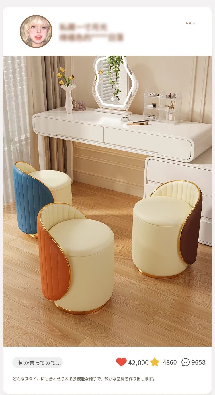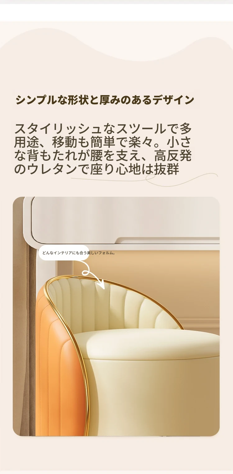 女性にぴったりの花びらデザインメイクチェア!シンプルでモダンなスタイル、リラックスできる背もたれ付き。自宅の寝室や書斎、美容の時間をより特別に演出します。メイクやネイルに最適なアイテムです!