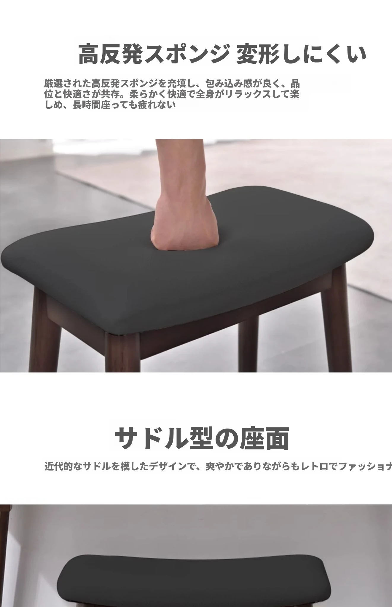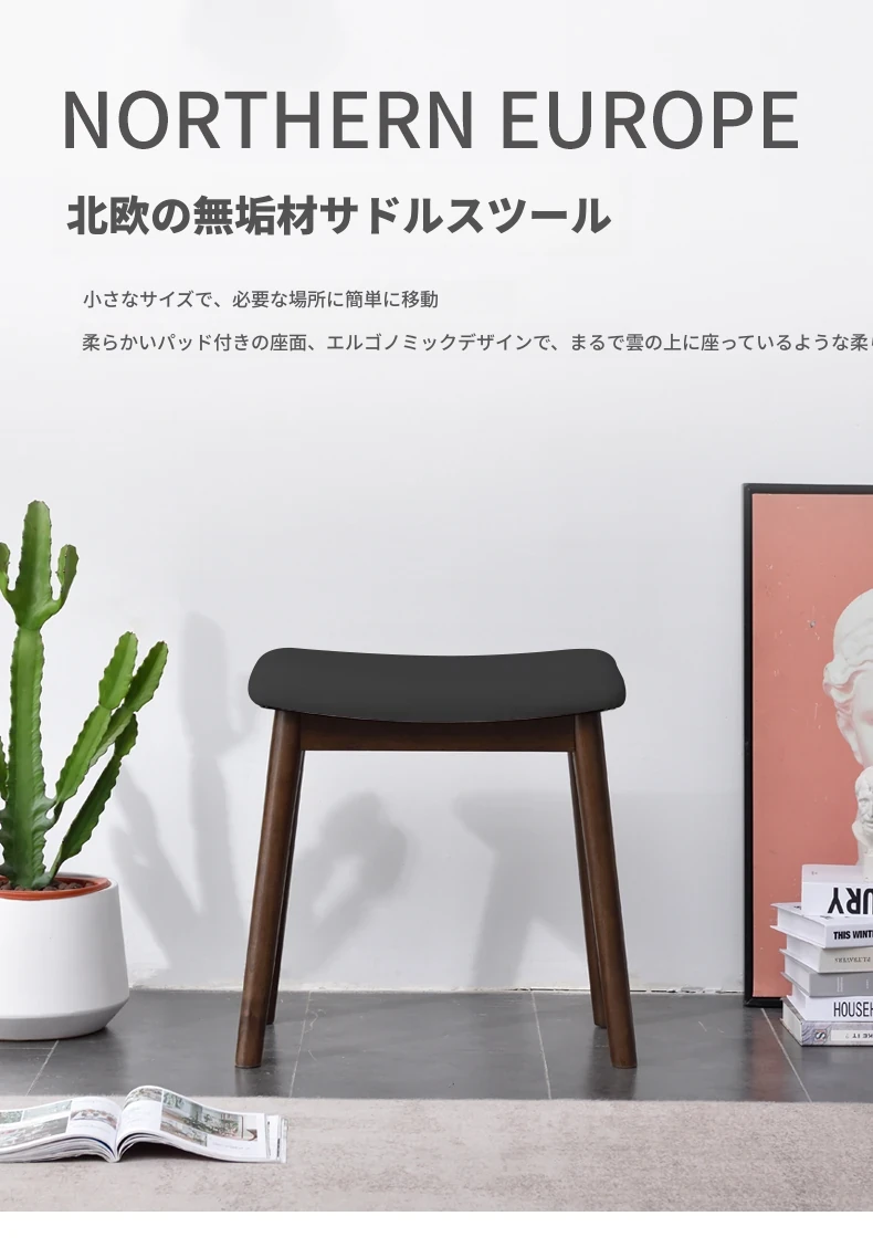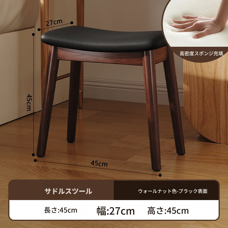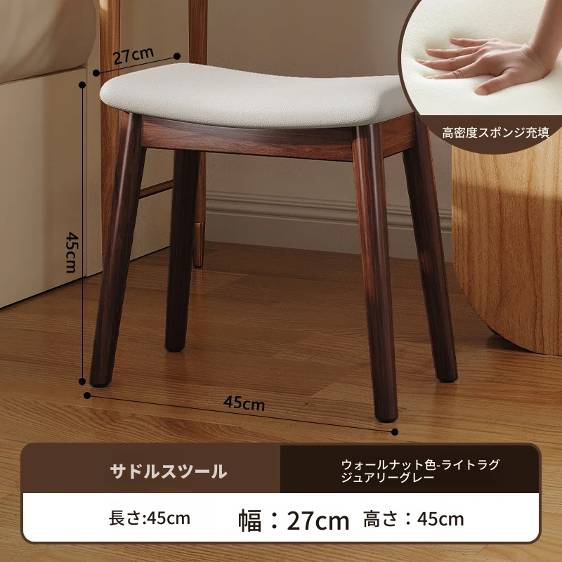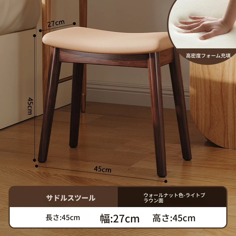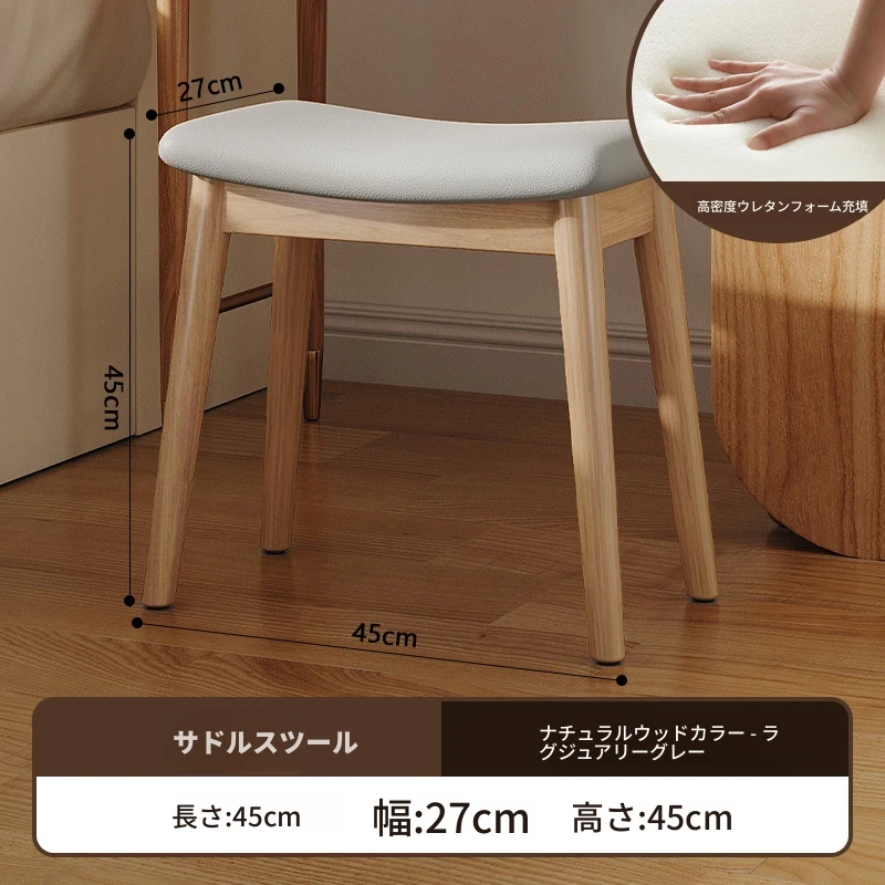 軽やかなラグジュアリーの無垢材ドレッシングスツール - シンプルなデザインで、居心地の良いソフトパッキング。寝室や書斎、リビング、ダイニングにぴったりの多用途チェア。おしゃれで快適な空間を演出します!
