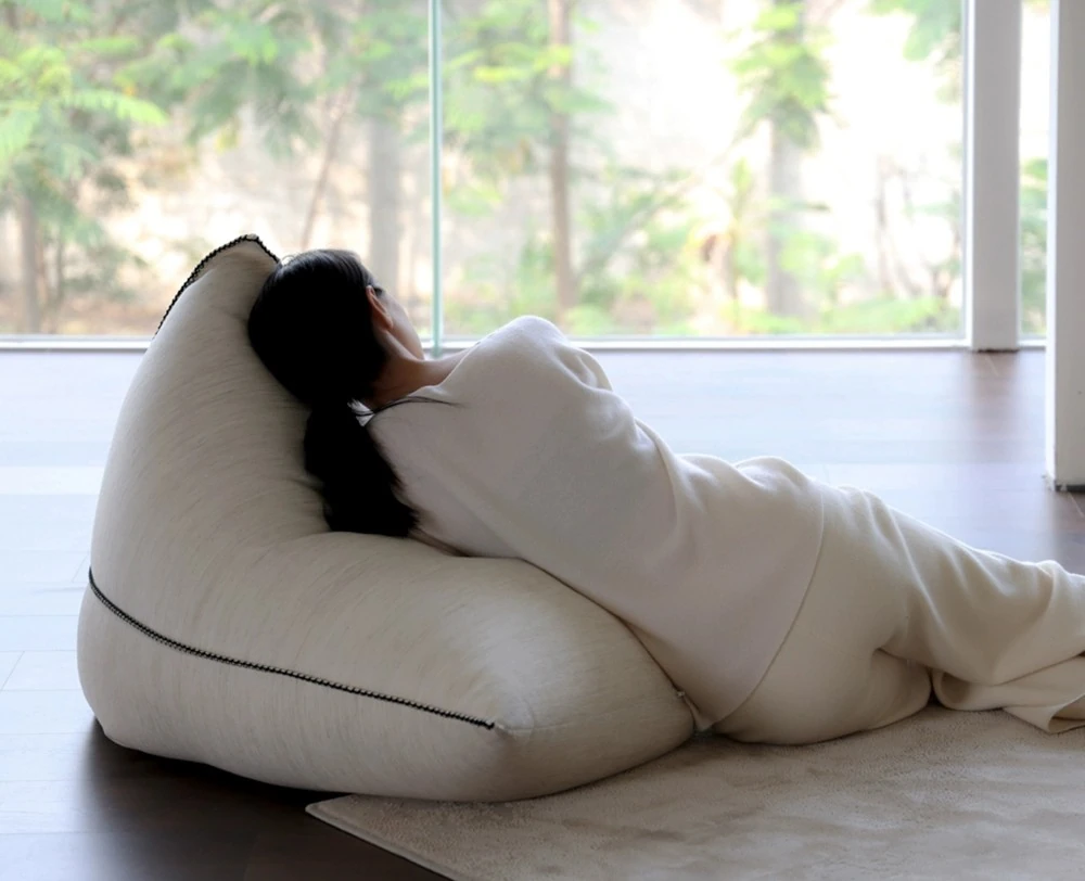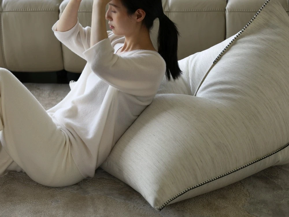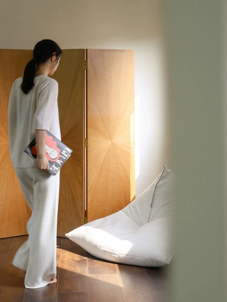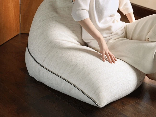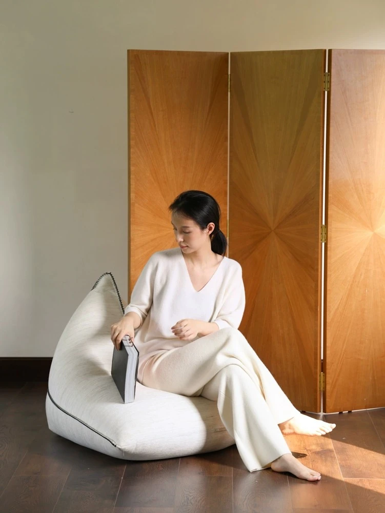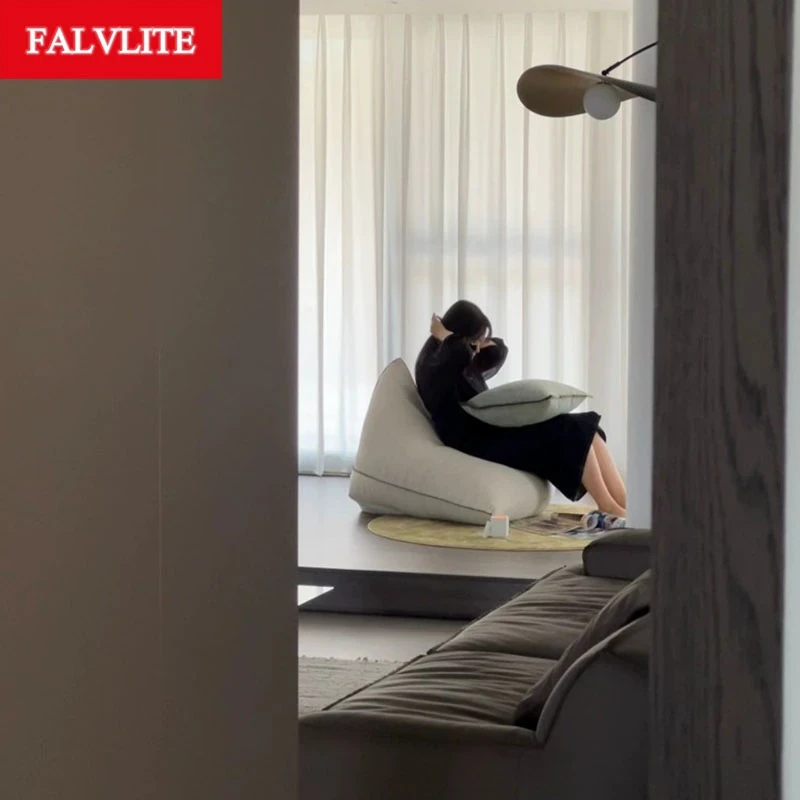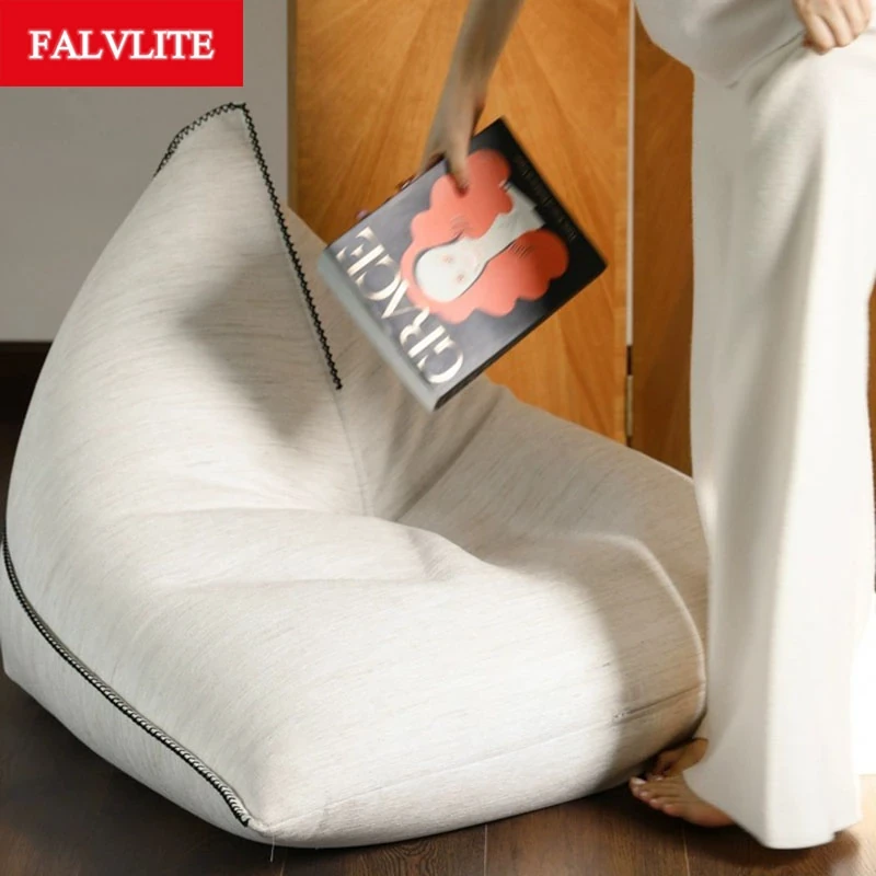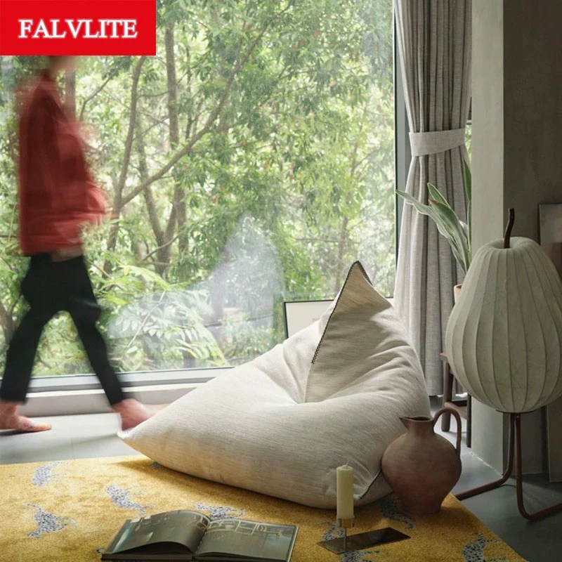 FALVLITEシェニティ花柄ウールクリーム色シングルベッドルーム用大きなクッションビーンバッグラウンジソファ - 快適さとスタイルを兼ね備えた、リラックスできる空間を演出!