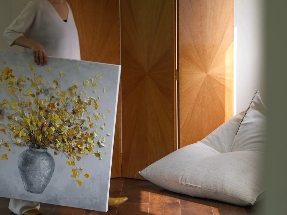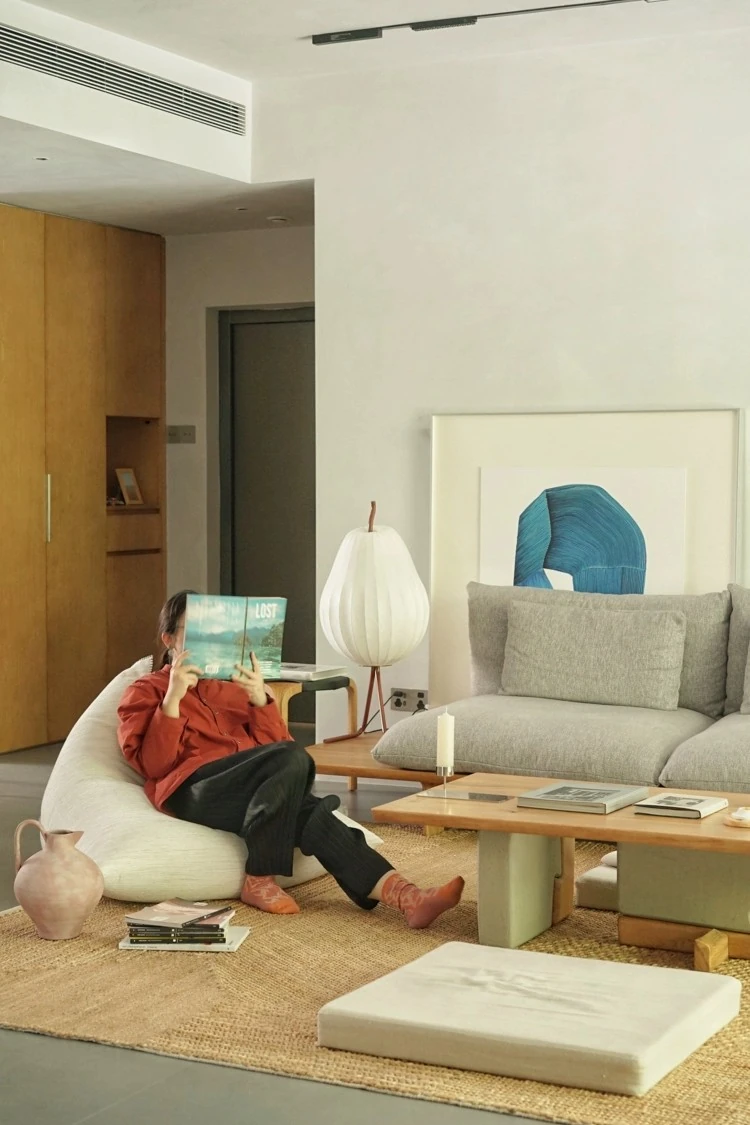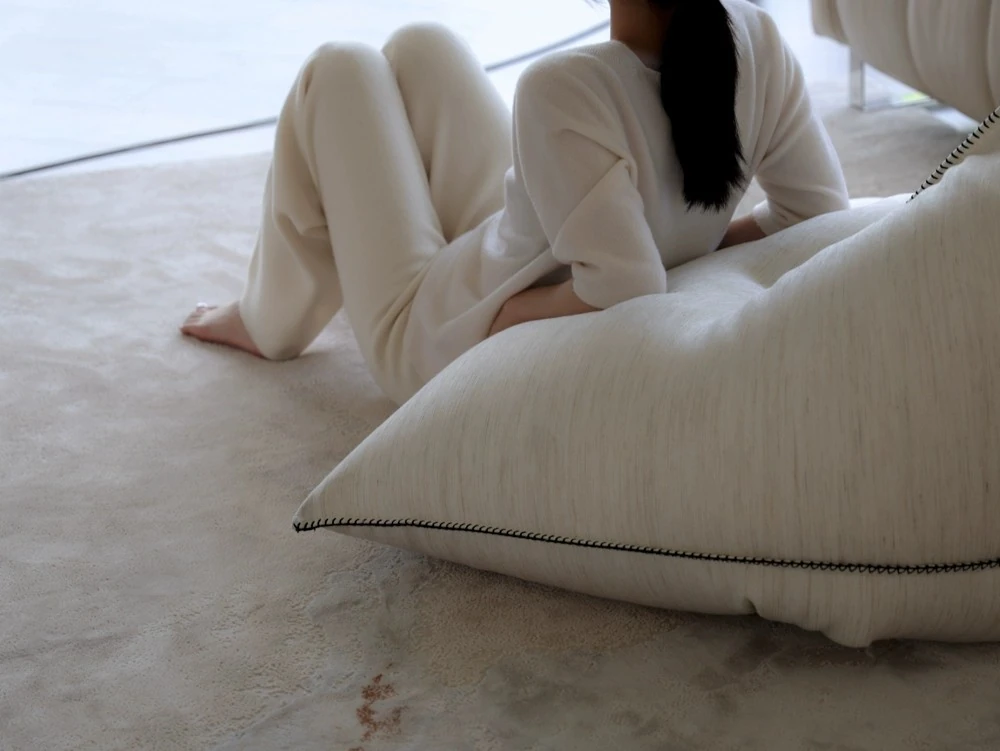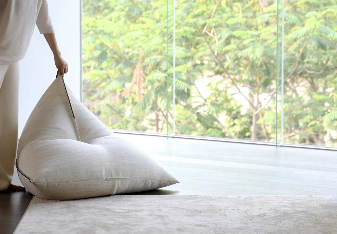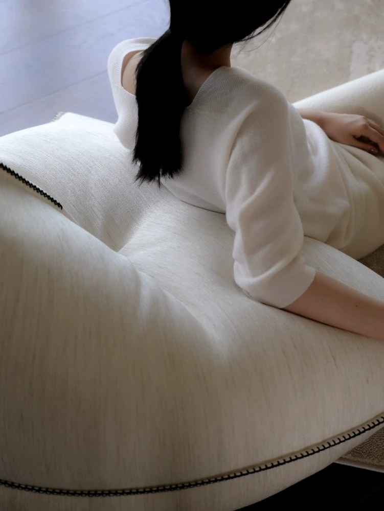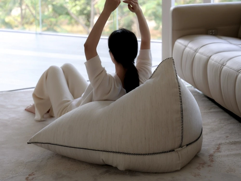 FALVLITEシェニティ花柄ウールクリーム色シングルベッドルーム用大きなクッションビーンバッグラウンジソファ - 快適さとスタイルを兼ね備えた、リラックスできる空間を演出!