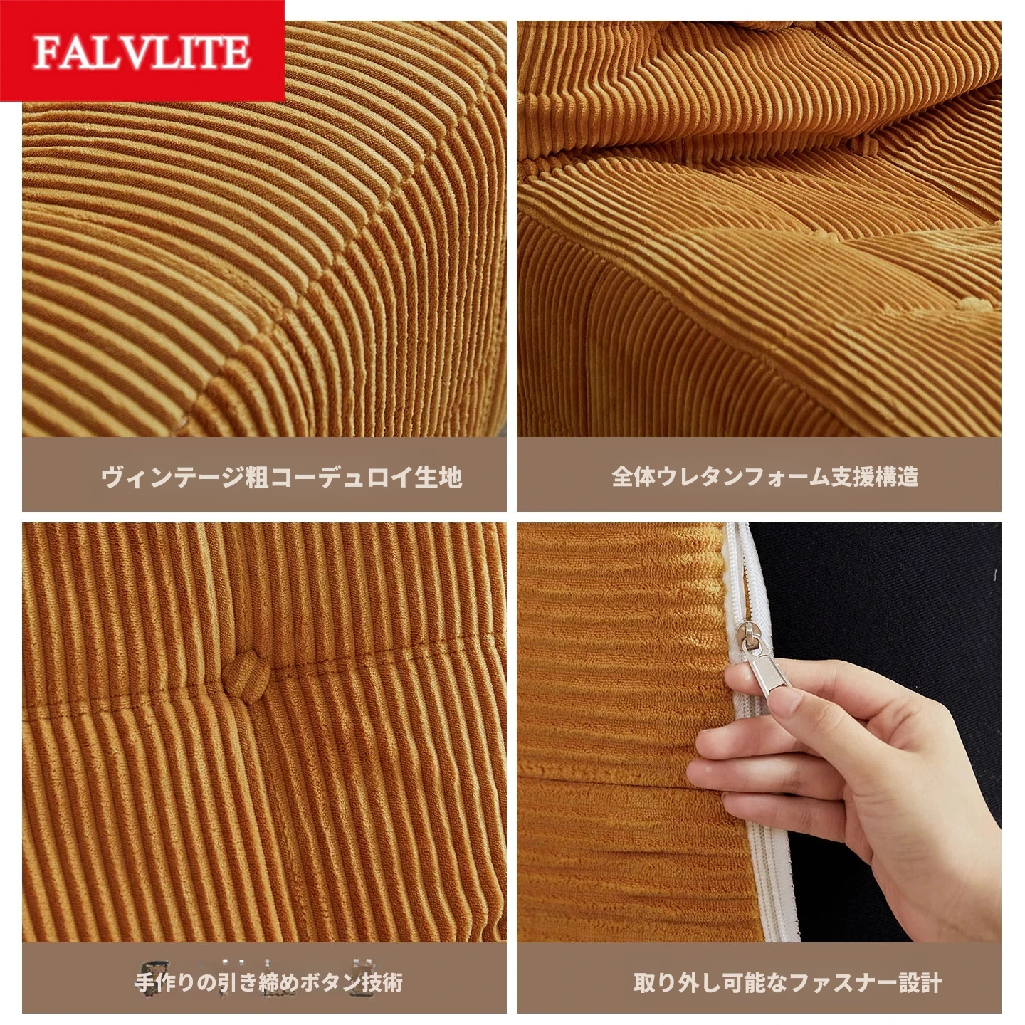 キャラメルブラウン+フットレスト【輸入オリジナル粗コーデュロイ】