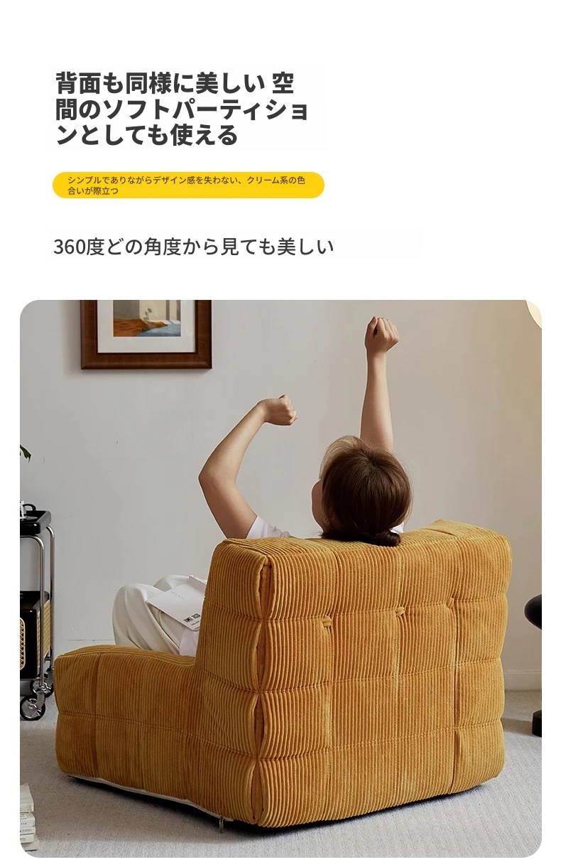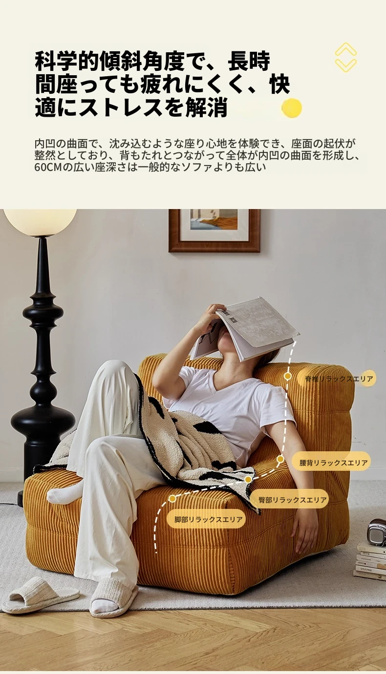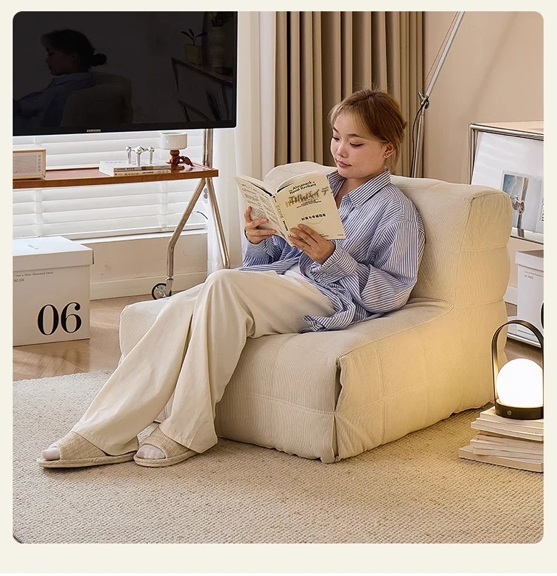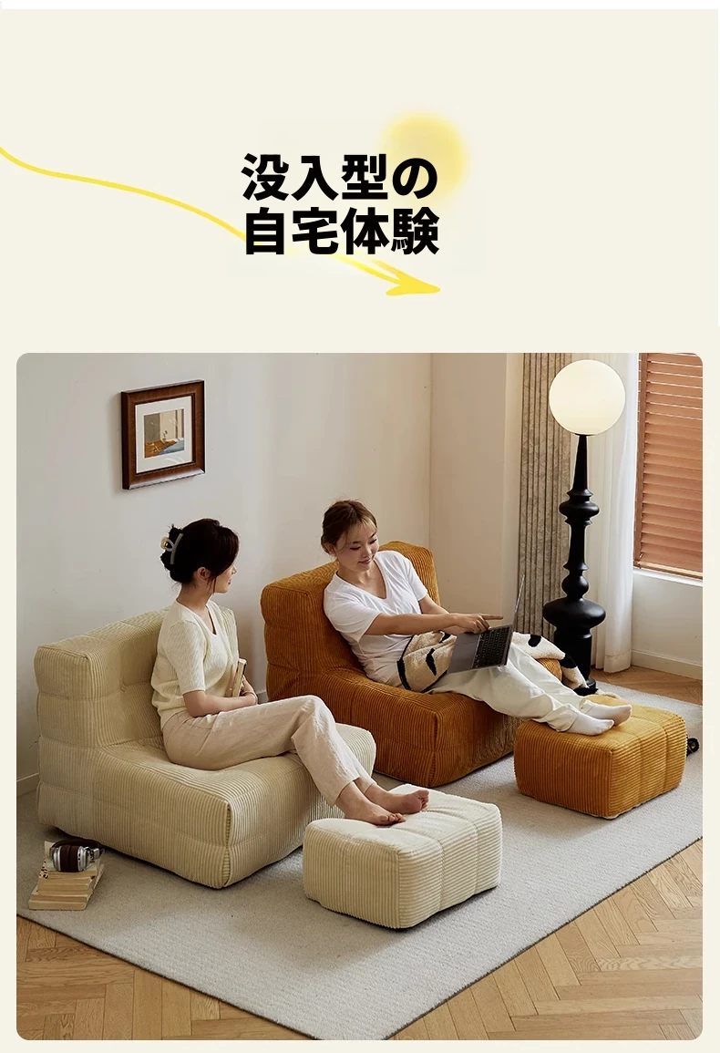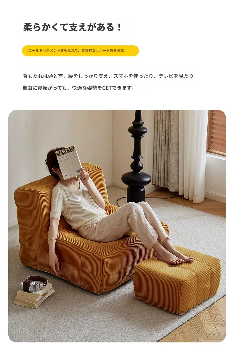 FALVLITEのふわふわモコモコリクライニングソファ!リビングやバルコニーにぴったりの一人用カウチ。畳の上でもくつろげる、心地よいデザインでリラックスタイムをお楽しみください!