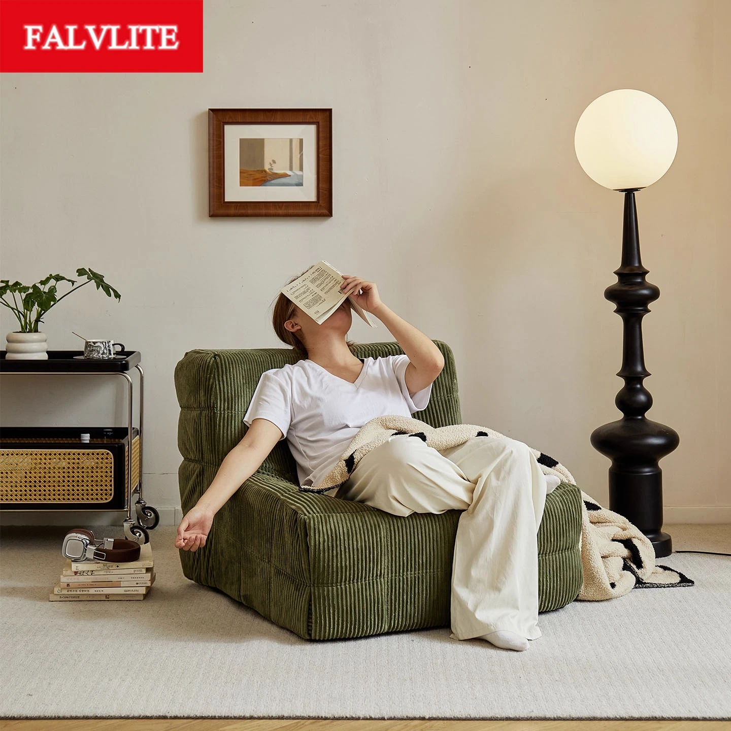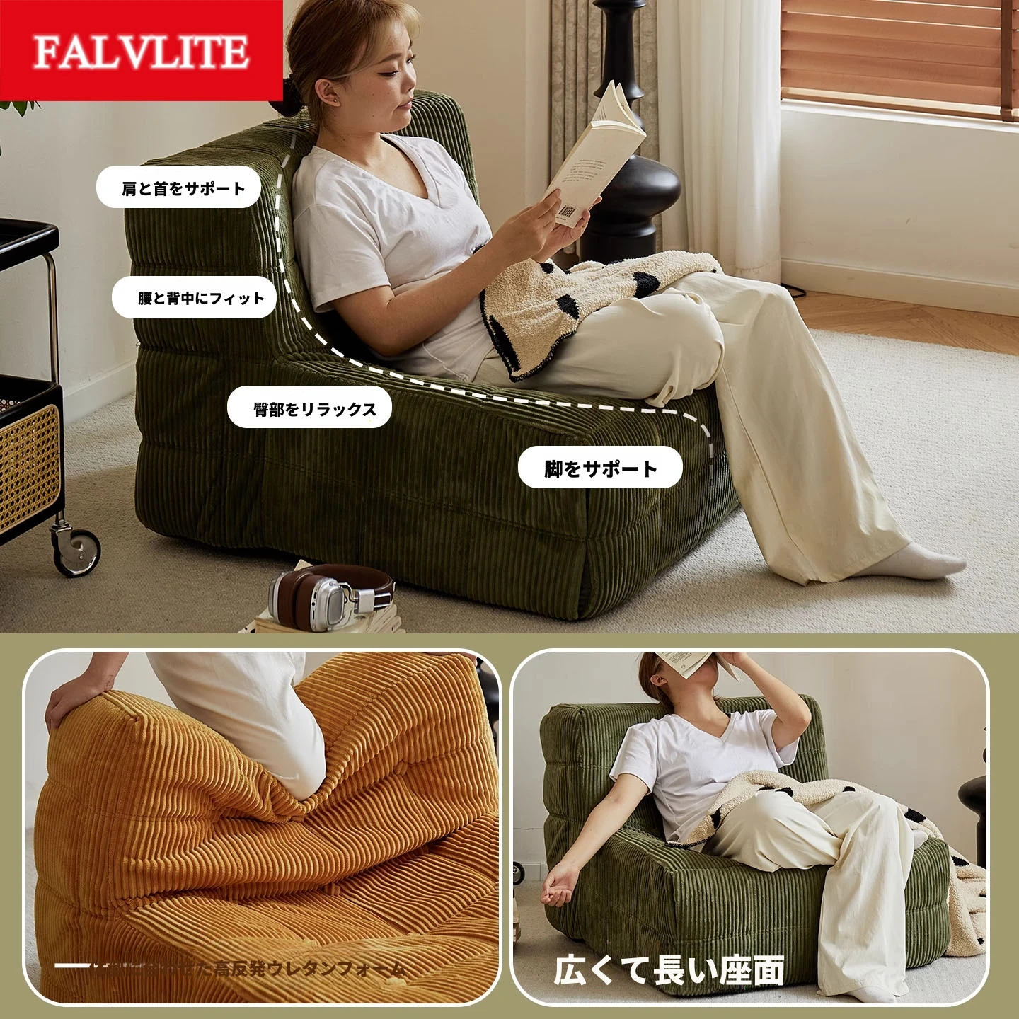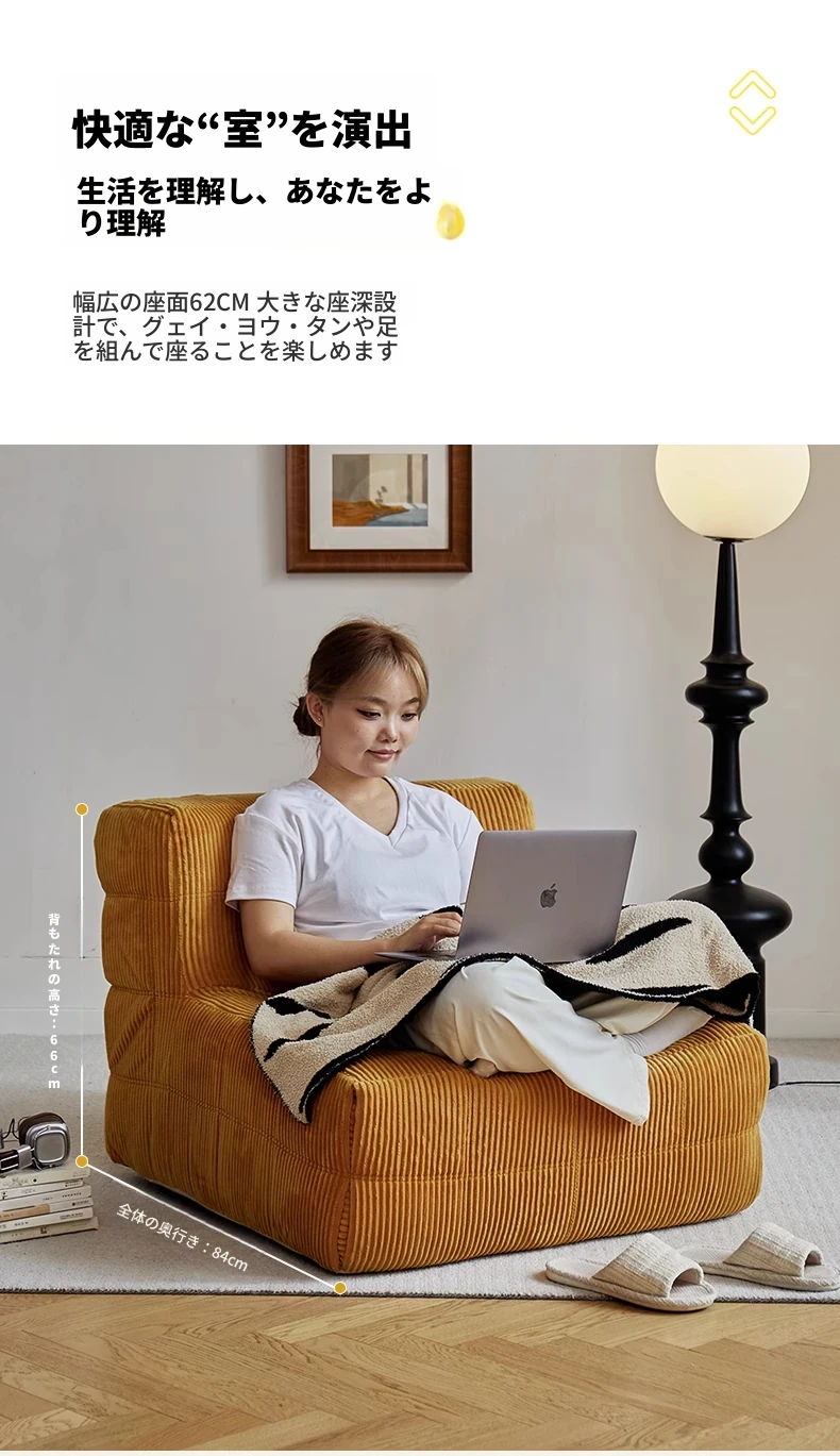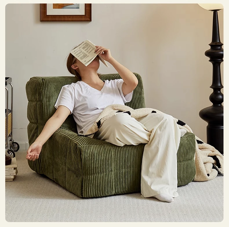 FALVLITEのふわふわモコモコリクライニングソファ!リビングやバルコニーにぴったりの一人用カウチ。畳の上でもくつろげる、心地よいデザインでリラックスタイムをお楽しみください!
