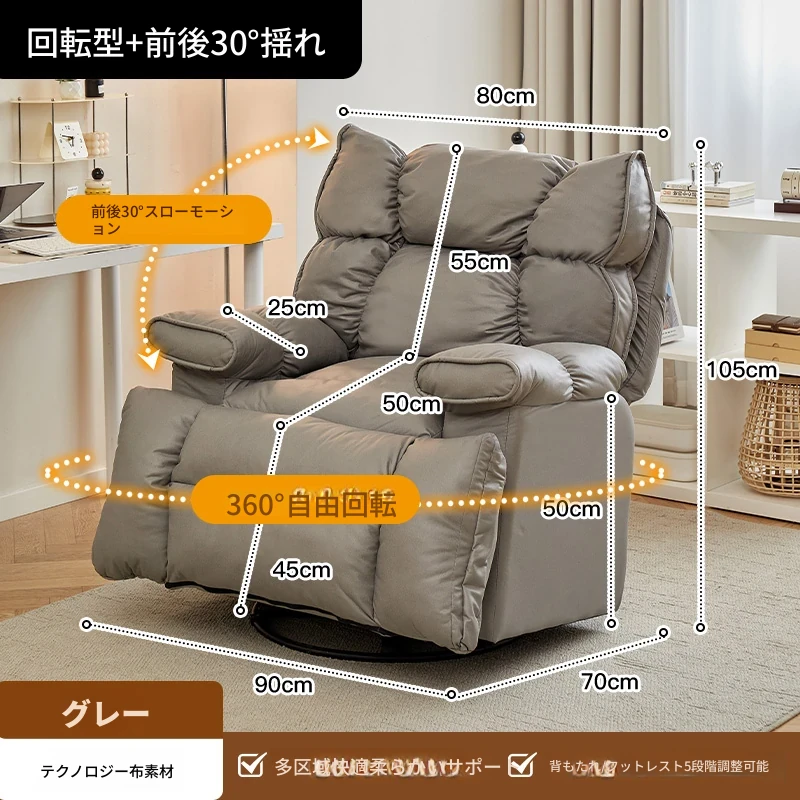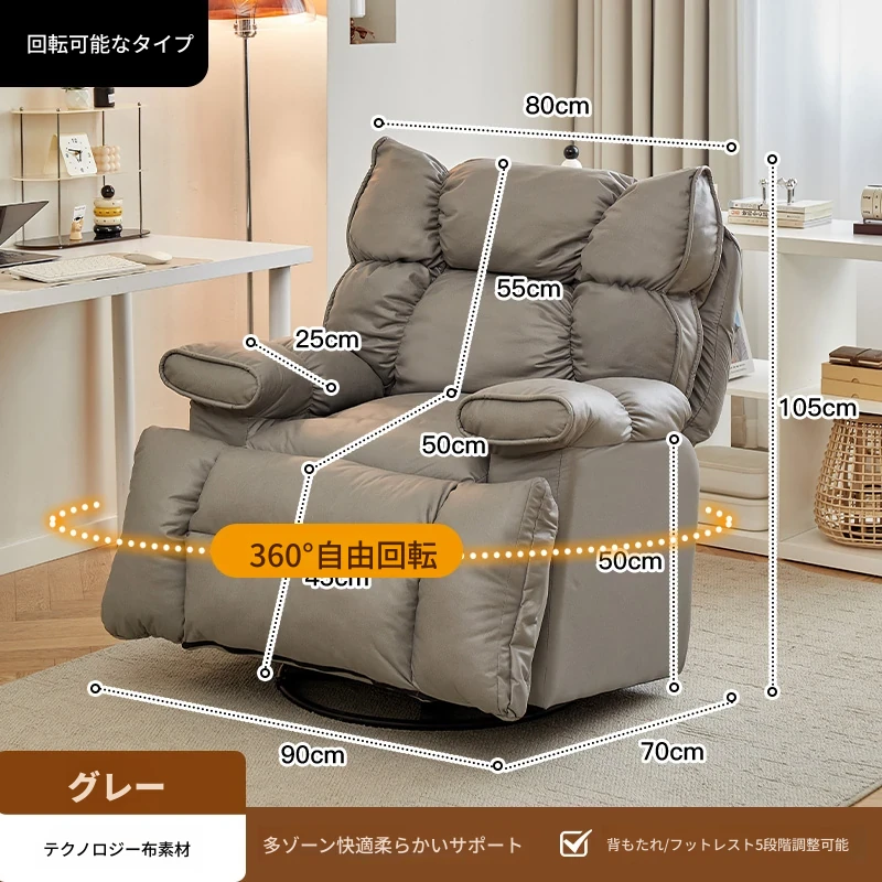 米グレー【アップグレードモデル360°回転】アップグレード三防ナノテクノロジー生地+背もたれフットレスト多段調整