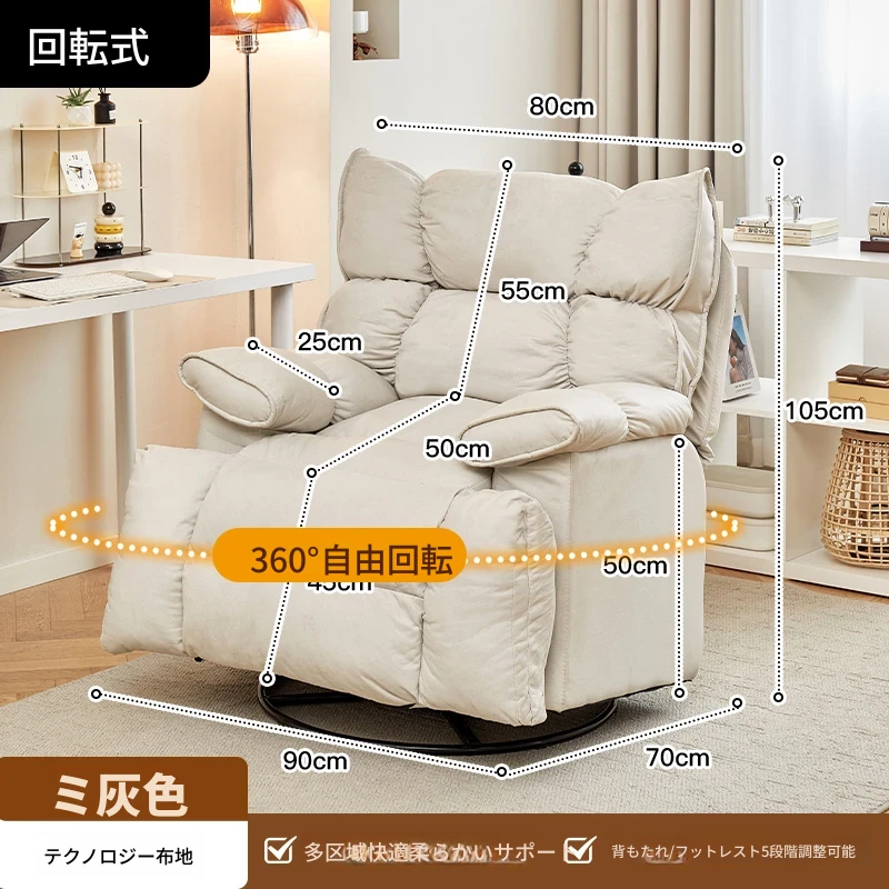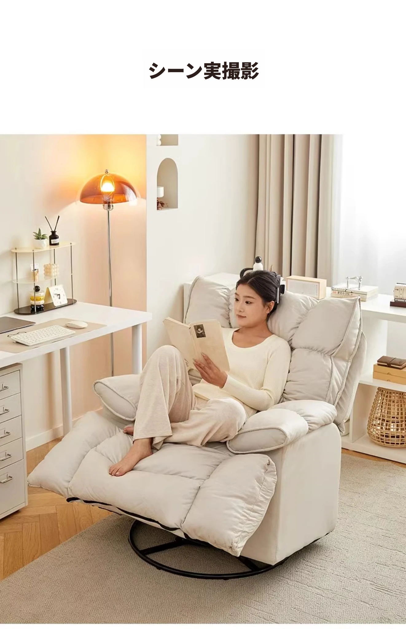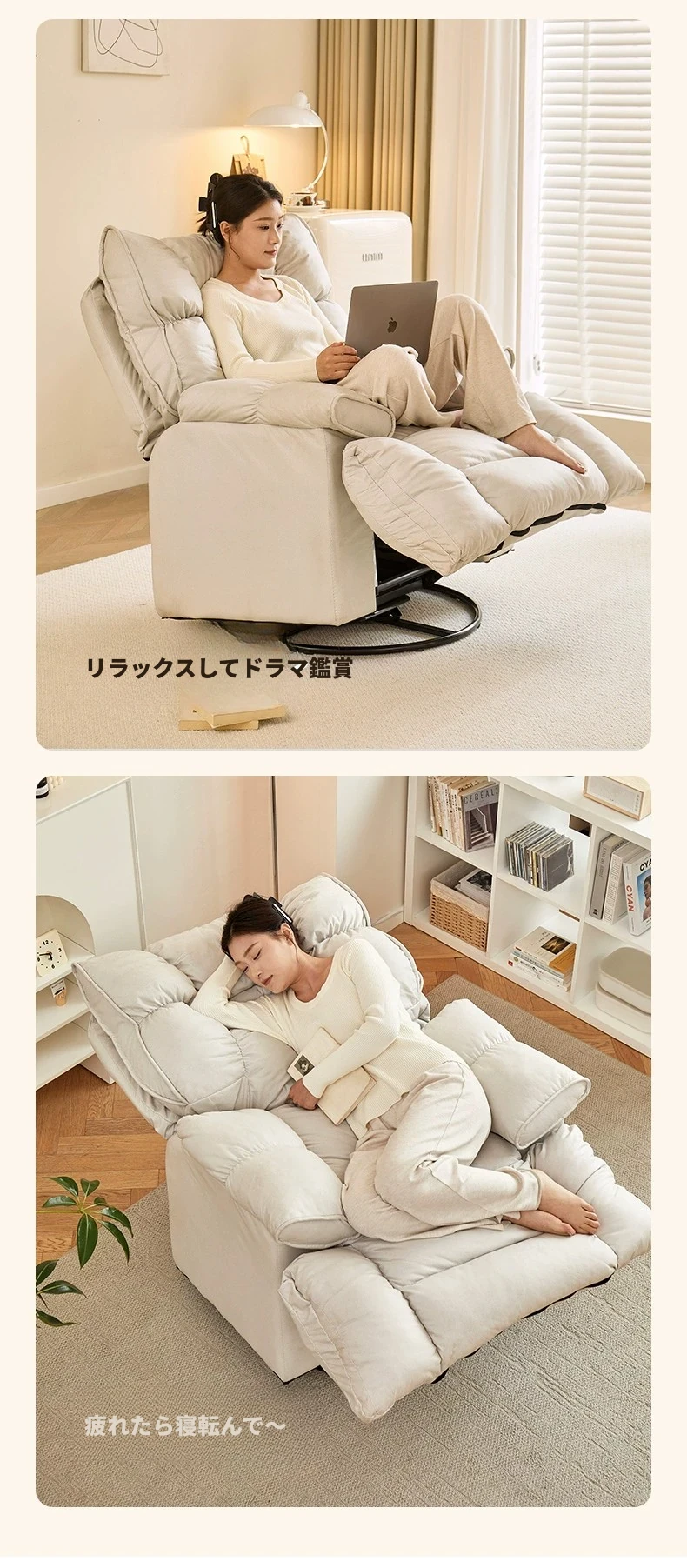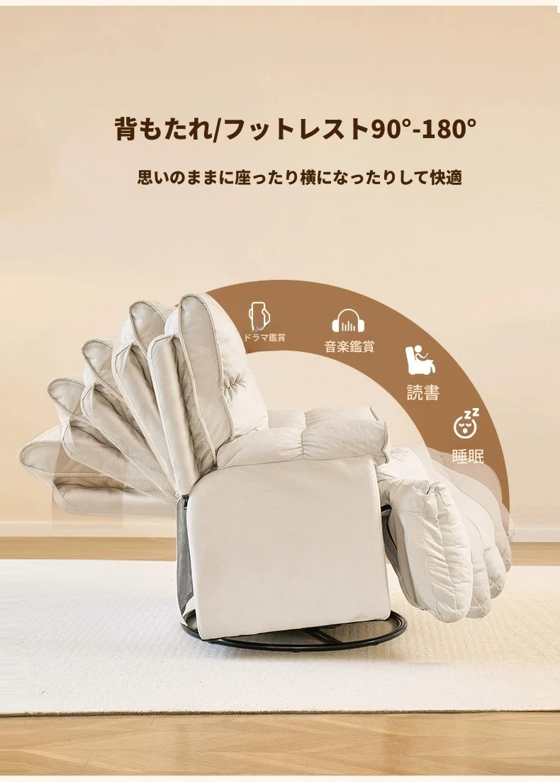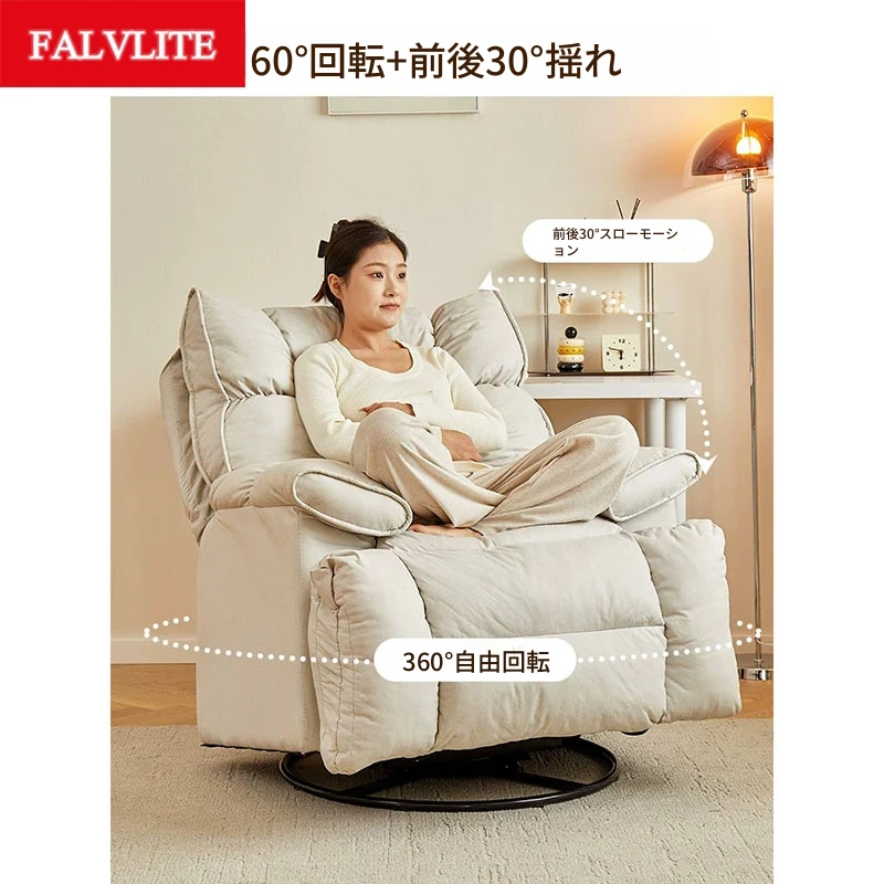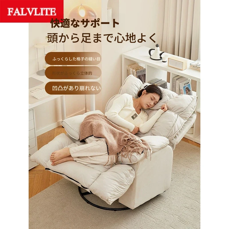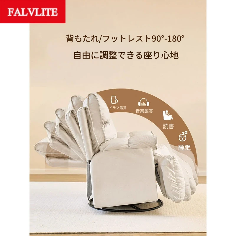 FALVLITE 多機能リクライニングソファチェア - 寝転んでリラックス!リビングや寝室に最適な、回転式で省スペースなラウンジチェア。あなたのくつろぎタイムをさらに特別に!