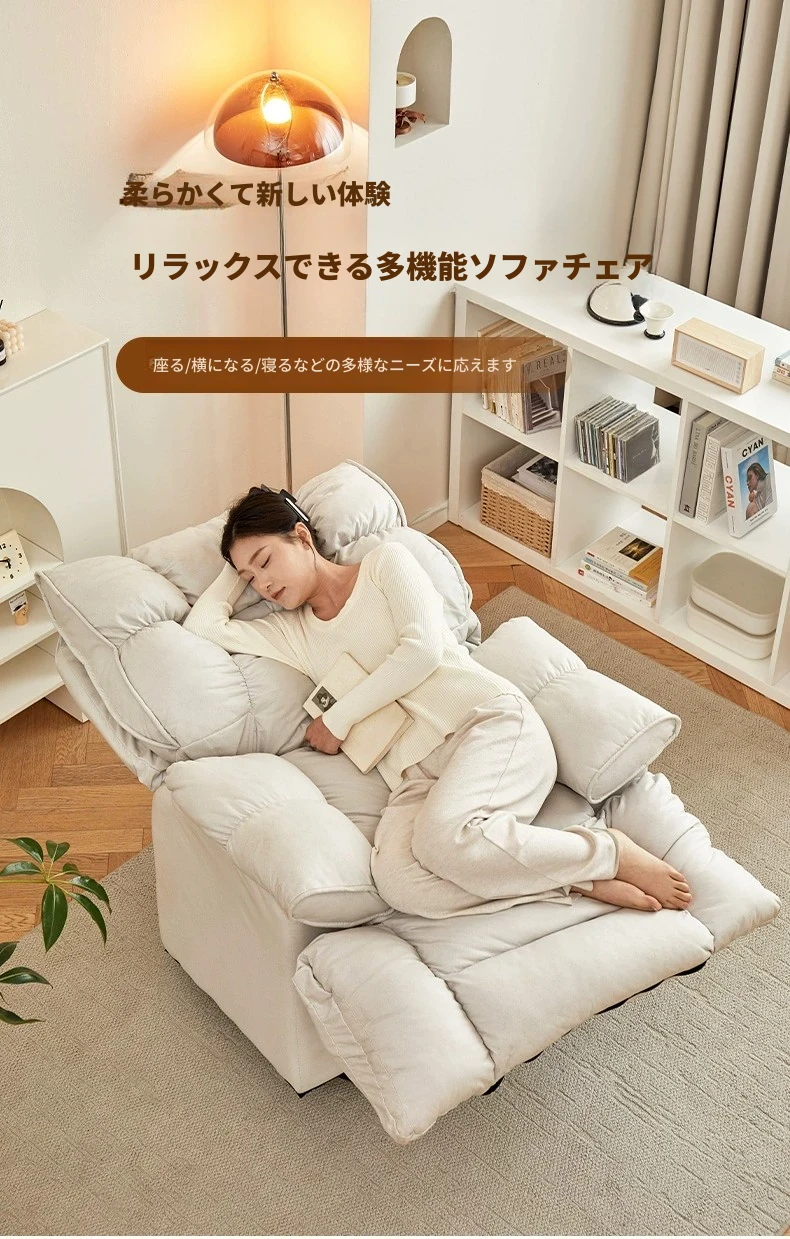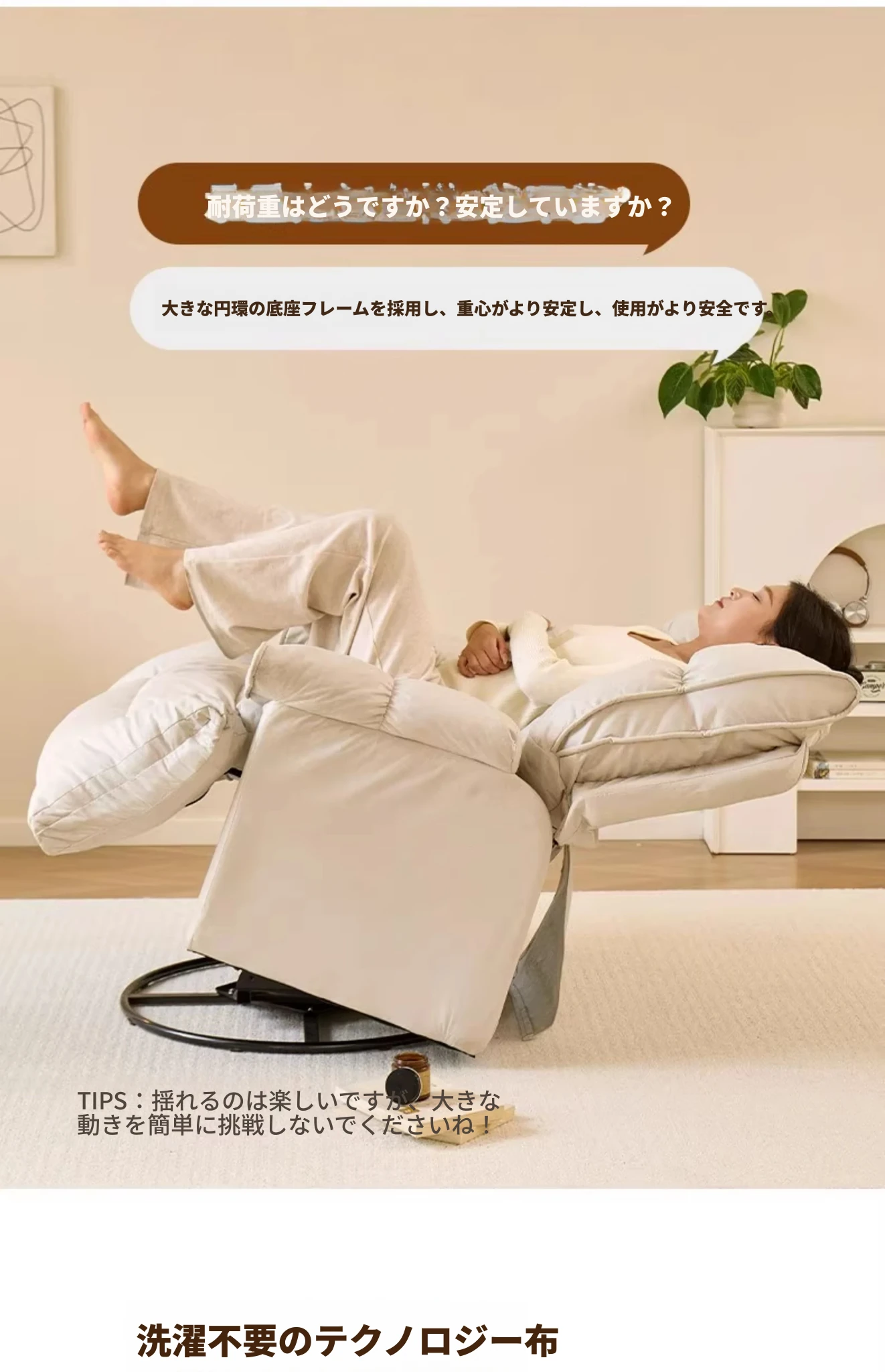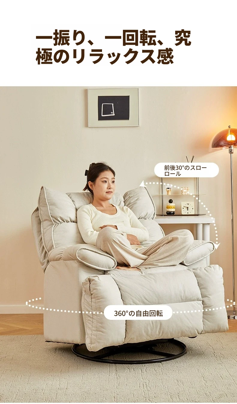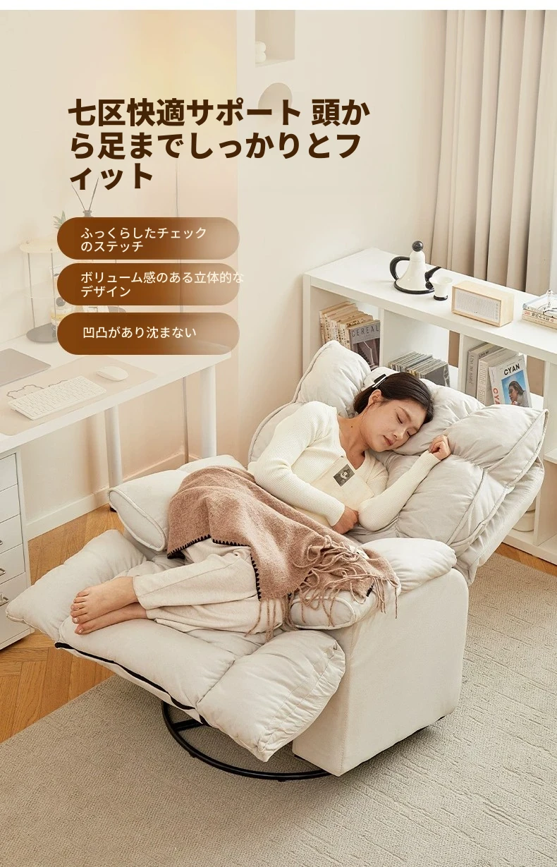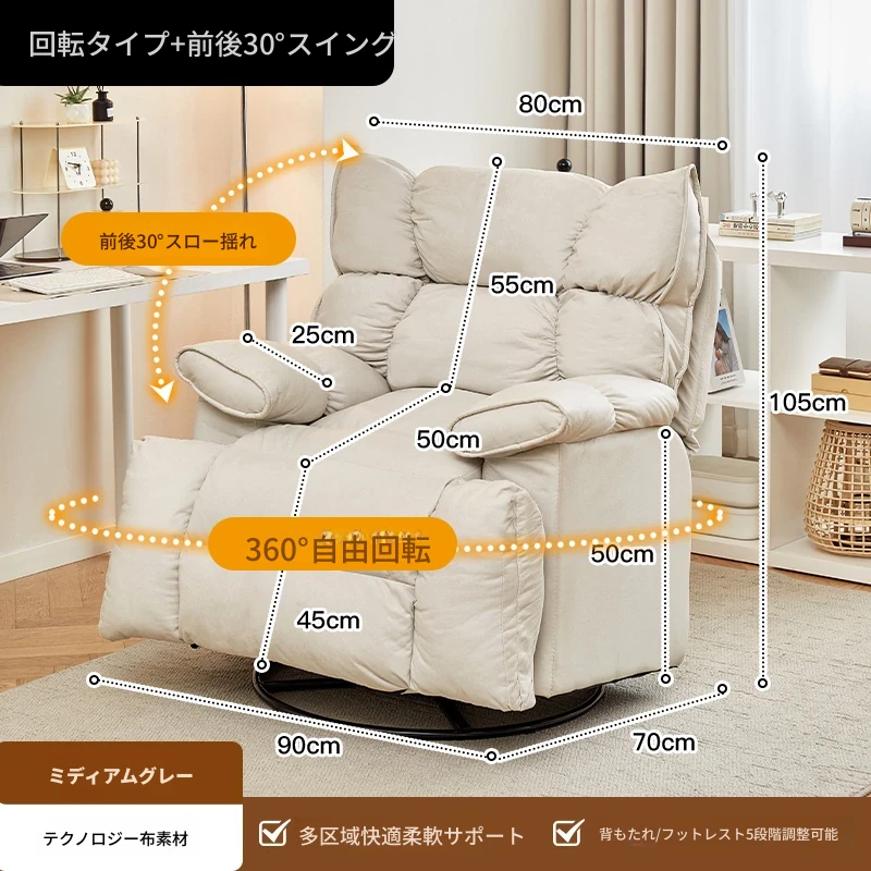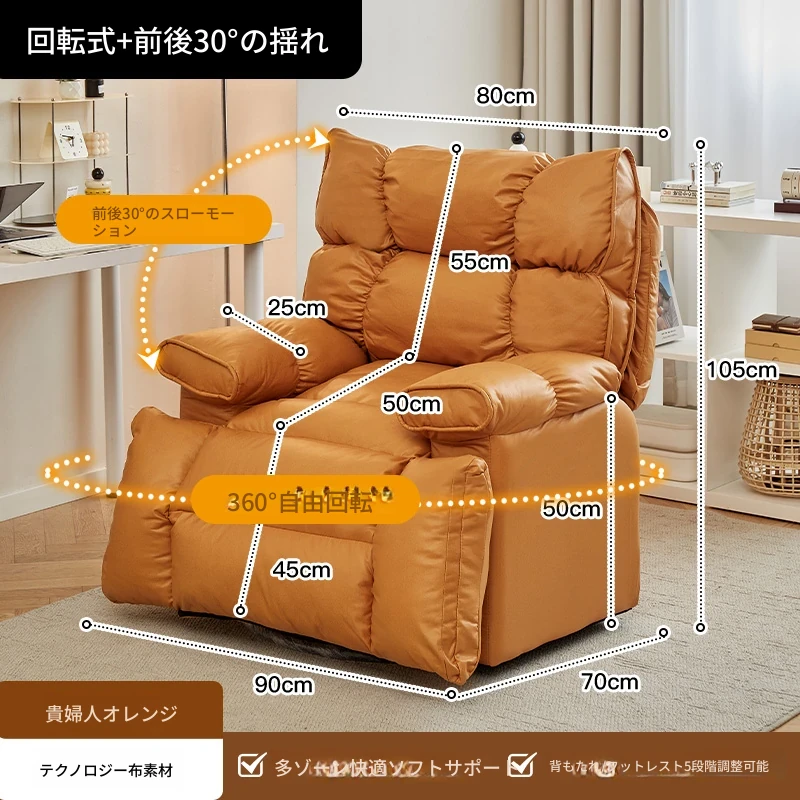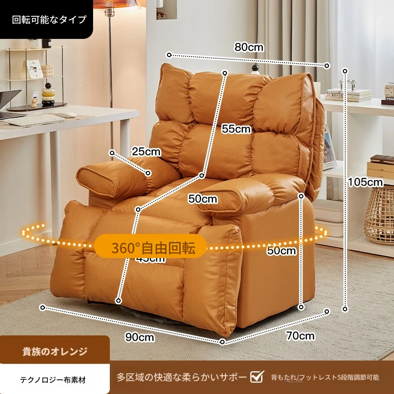 FALVLITE 多機能リクライニングソファチェア - 寝転んでリラックス!リビングや寝室に最適な、回転式で省スペースなラウンジチェア。あなたのくつろぎタイムをさらに特別に!