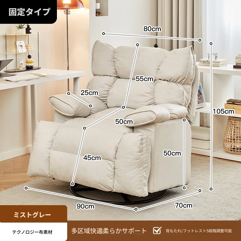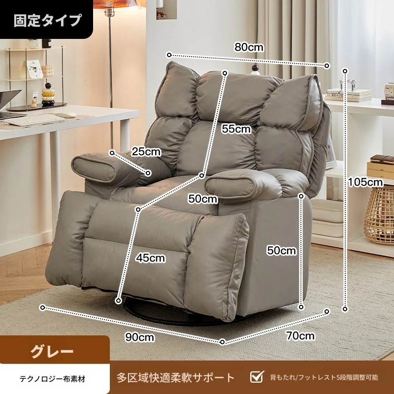 米グレー【固定モデル】アップグレード三防ナノテクノロジー生地+背もたれフットレスト多段調整