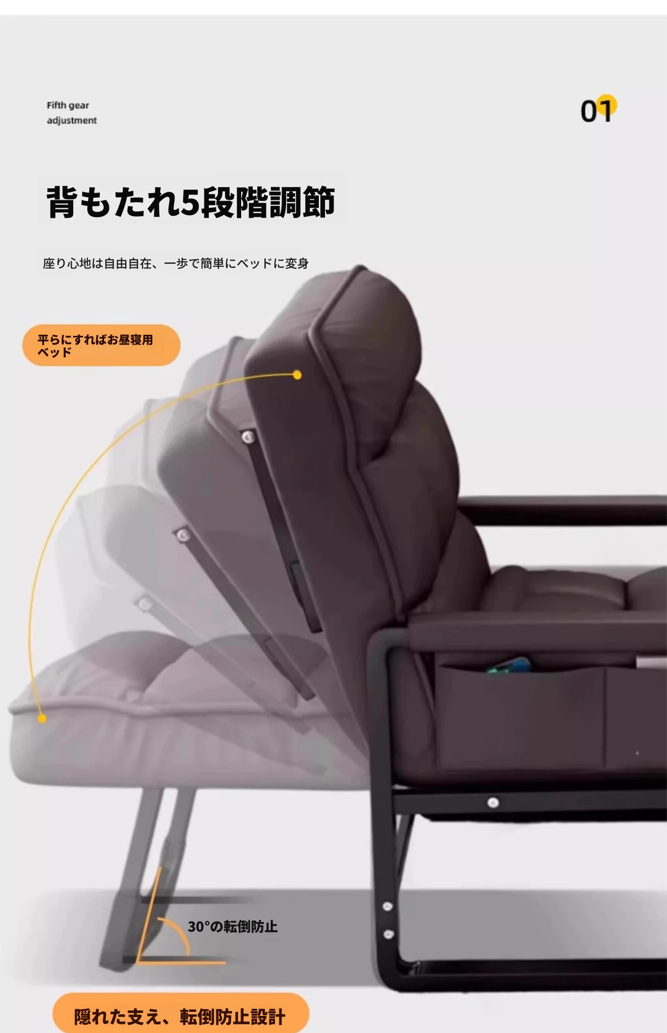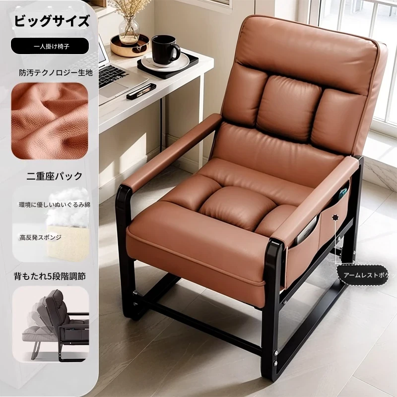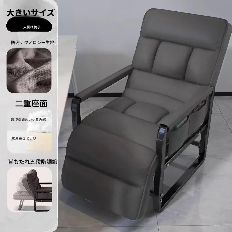 灰色+フットレスト-大サイズ【洗わずに使えるテクノロジー布】支柱+背もたれフットレスト調整可能リクライニング サイドアームポケット