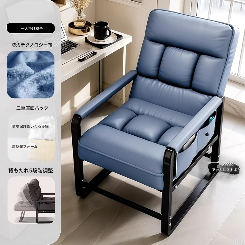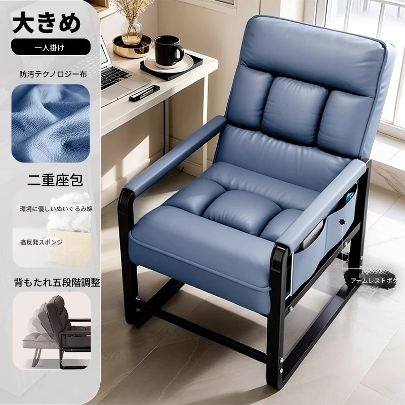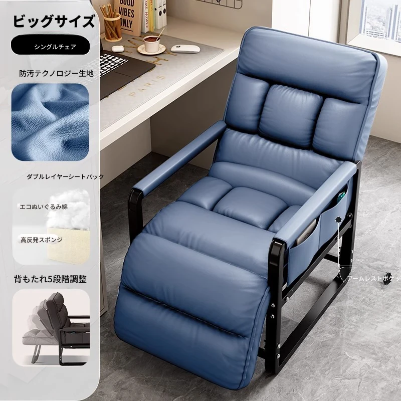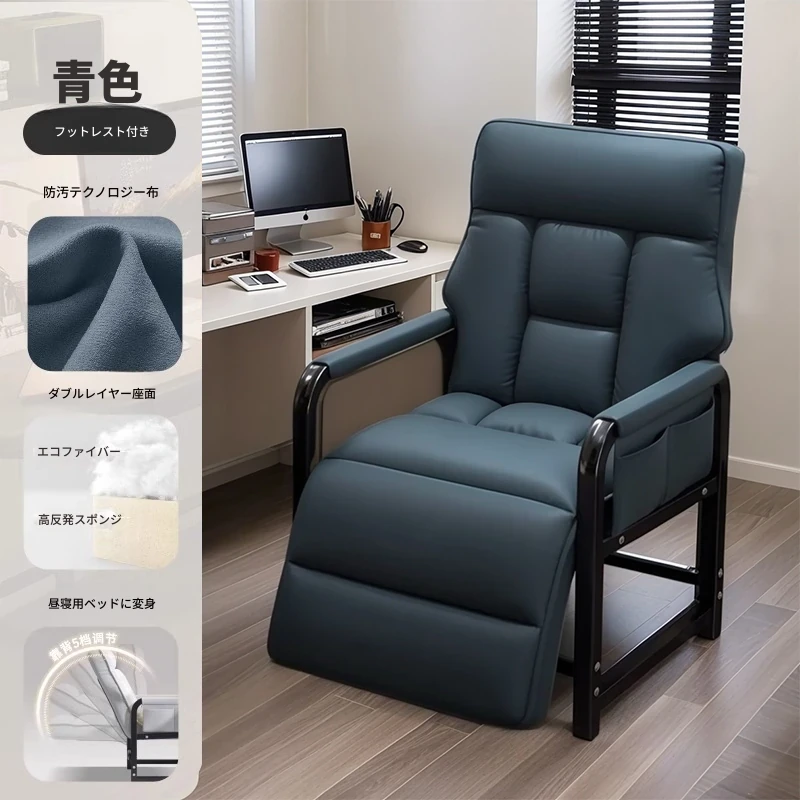 青色+フットレスト-標準版【洗わずに使えるテクノロジー布】支柱+背もたれフットレスト調整可能リクライニング サイドアームポケット