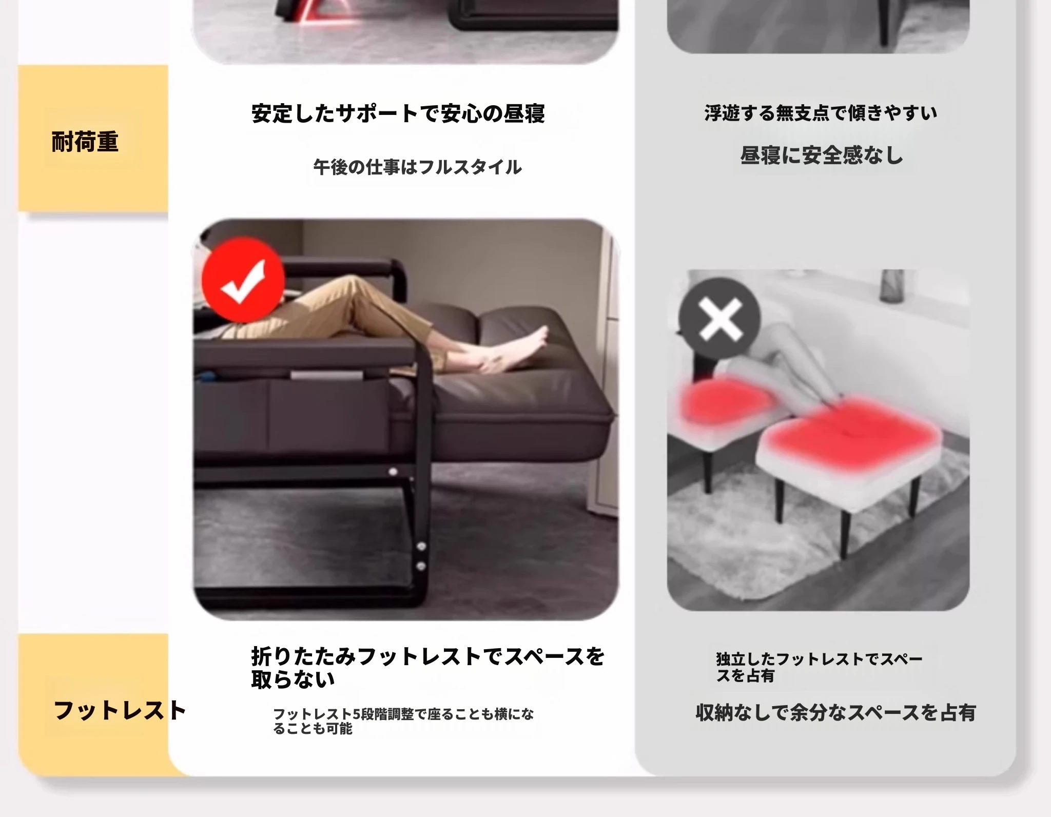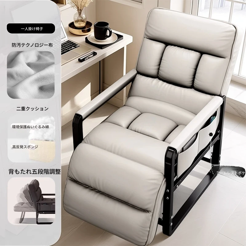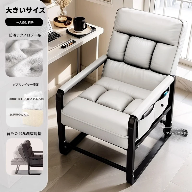 米白+フットレスト【洗わずに使えるテクノロジー布】支柱+背もたれフットレスト調整可能リクライニング サイドアームポケット