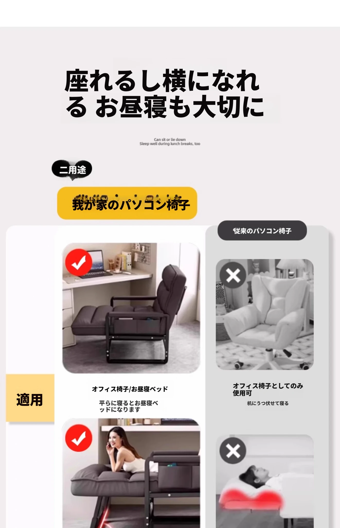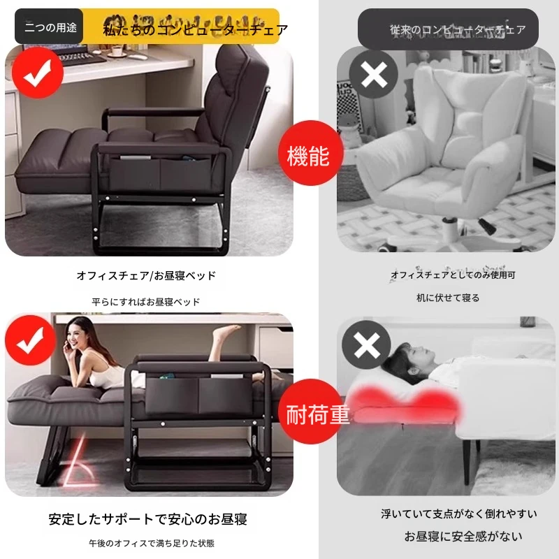 オフィス用折りたたみ式リクライニングチェア|大人向け家庭用コンピューターチェア|寝椅子|学生寮用デスクチェア|リラックスできるソファチェア|快適な昼寝や休憩に最適!