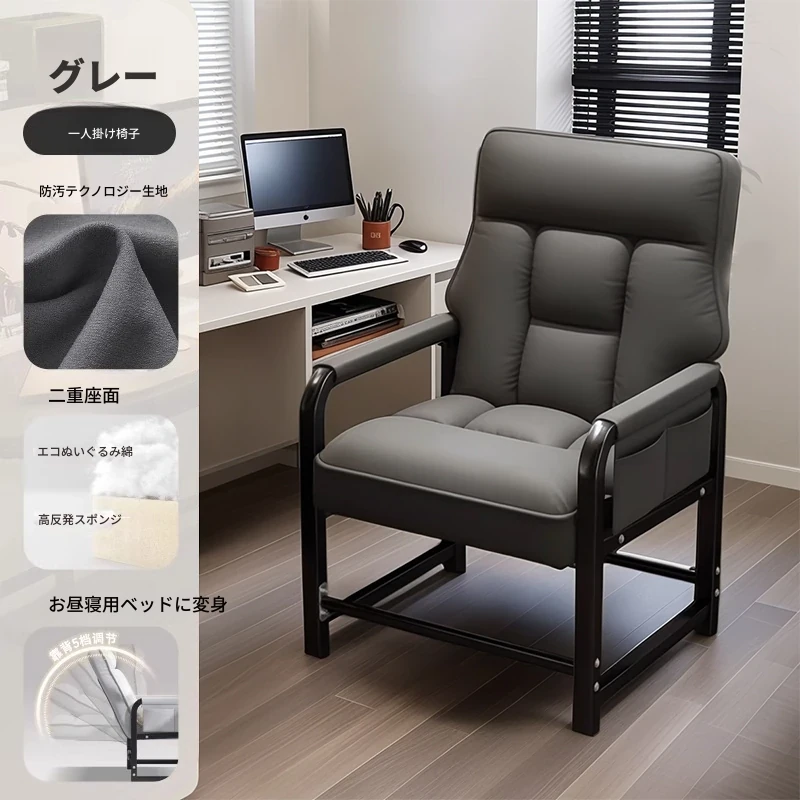 灰色+フットレスト-標準版【洗わずに使えるテクノロジー布】支柱+背もたれフットレスト調整可能リクライニング サイドアームポケット