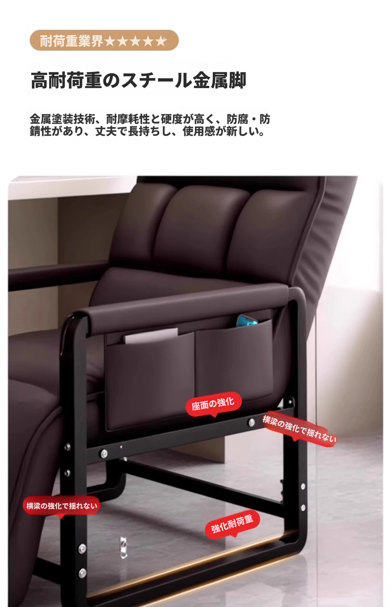 白色-標準版【洗わずに使えるテクノロジー布】支柱+背もたれ多段階調整 サイドアームポケット