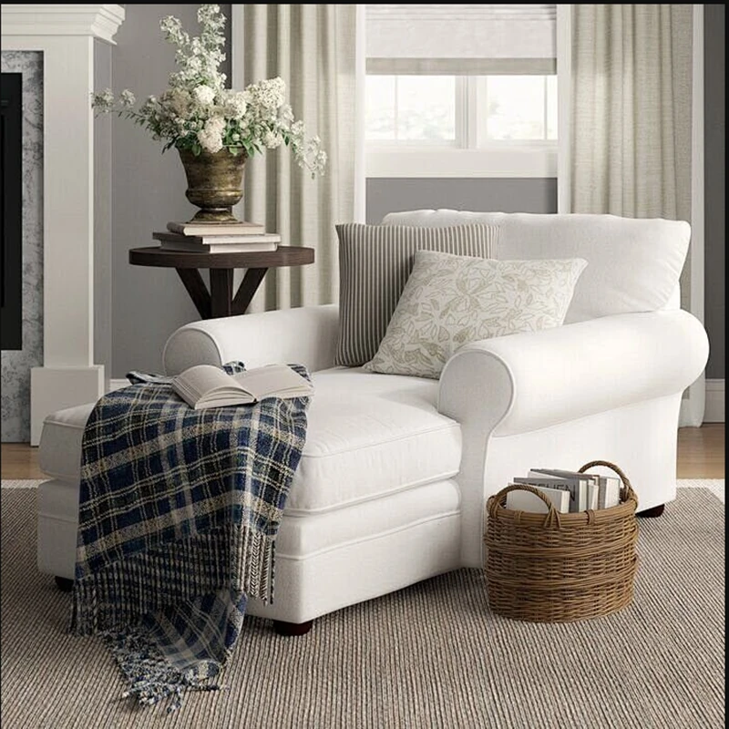 フレンチスタイルの布製デイベッド - バルコニーにぴったりの美しい一人用リクライニングチェア。家庭用のリラックス空間を演出し、アメリカンスタイルのベッドサイドソファとしても最適です。新しいスタイルであなたの生活空間を彩ります!