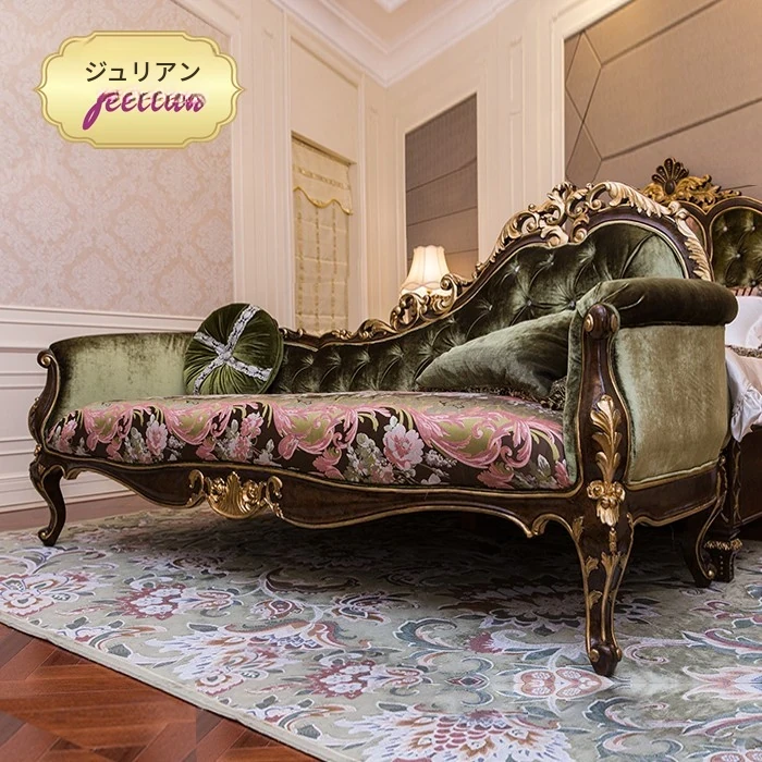 フレンチ・ニュークラシック・シングル・フロアチェア|エレガントなリビングにぴったりな布製ソファ|美しい木彫りのデザインで、優雅なひとときをお届けします!