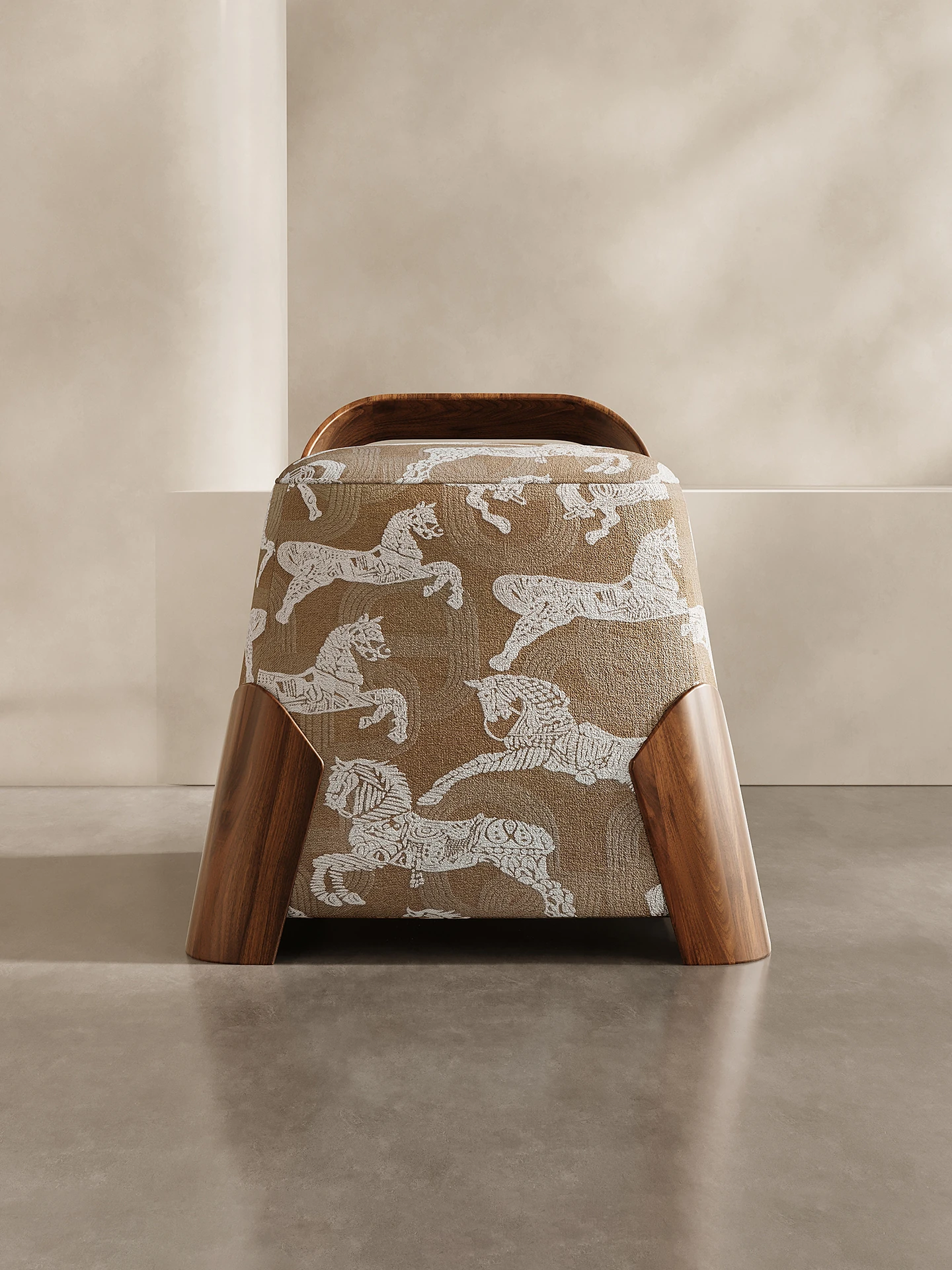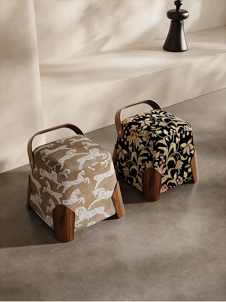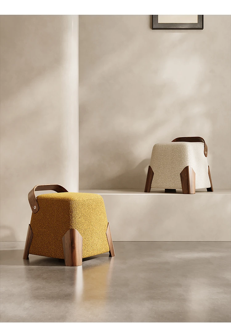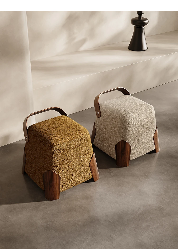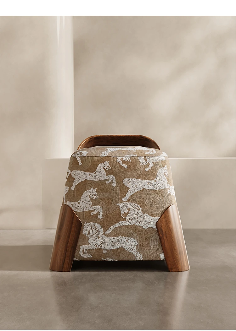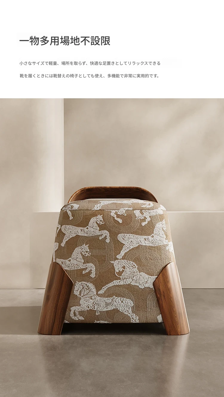 イタリアンラグジュアリー感漂うクリームカラーの玄関用シューズベンチ。洗練されたミニマルアートデザインのファブリックスツールで、上質な空間を演出します。おしゃれで機能的な一品!