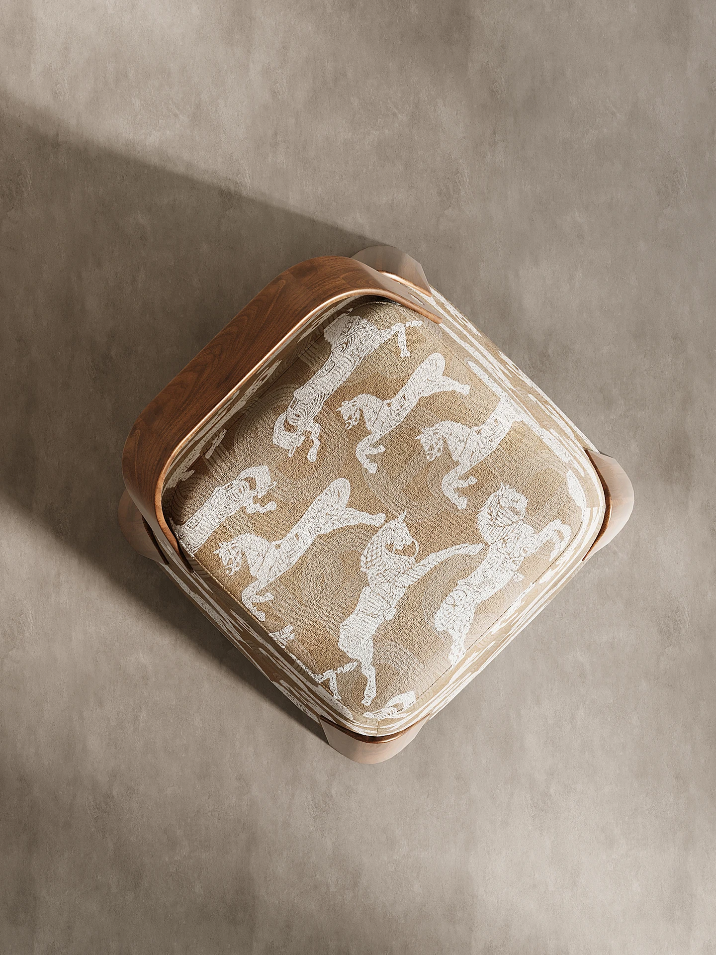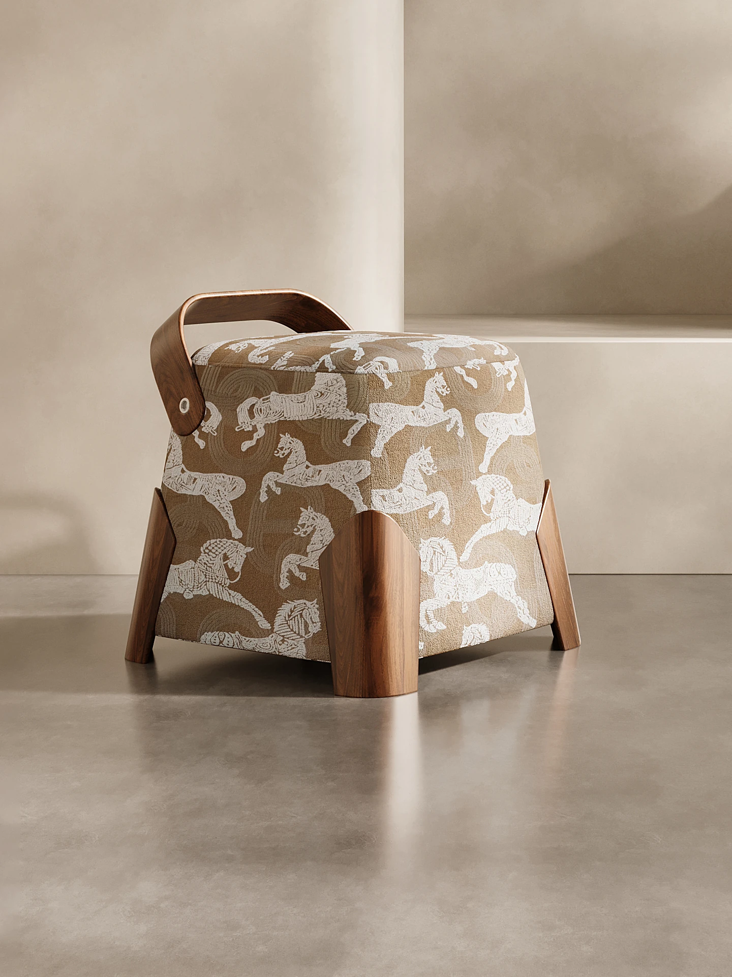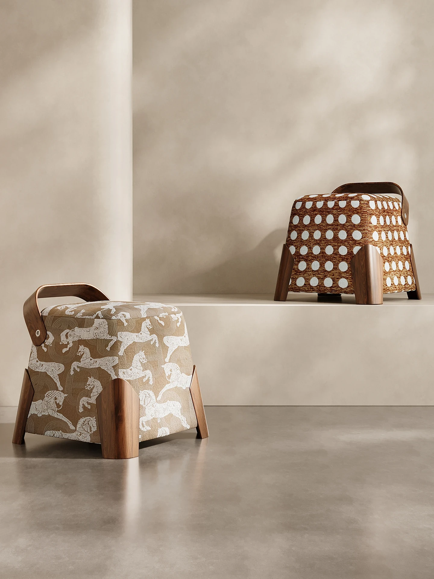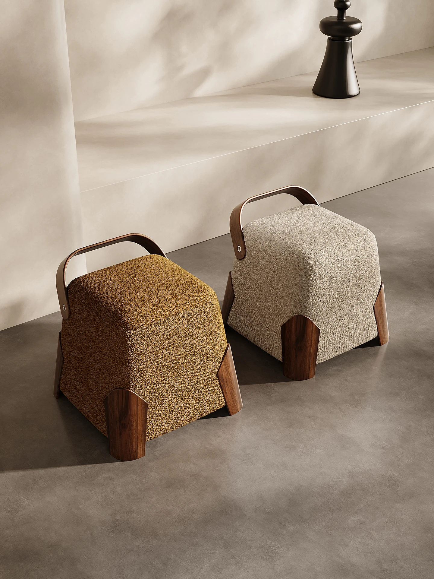 イタリアンラグジュアリー感漂うクリームカラーの玄関用シューズベンチ。洗練されたミニマルアートデザインのファブリックスツールで、上質な空間を演出します。おしゃれで機能的な一品!