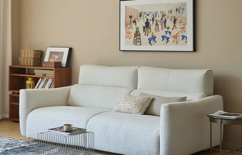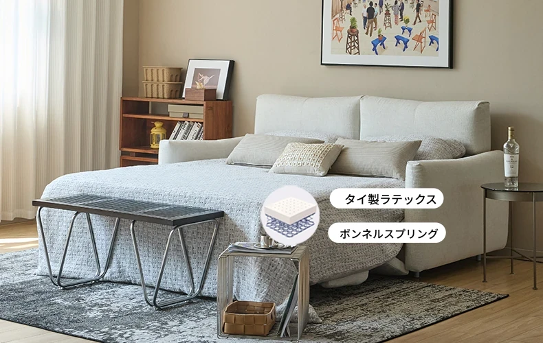 民宿公園のリビングにぴったり!イタリアンスタイルの軽やかな高背折りたたみソファベッド。コンパクトながらも座る・寝る両方に対応、小さな空間でも快適さを実現!
