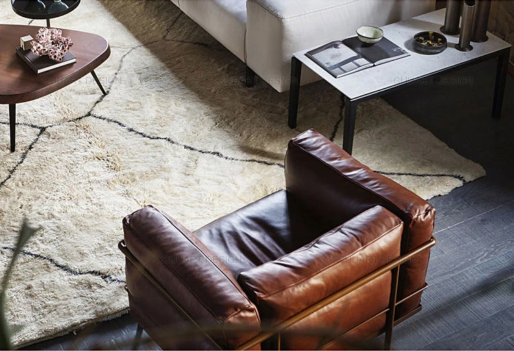 Italian Minimalist Leather Sofa - Luxurious Genuine Leather Living Room Design by Cassina LC3 - Modern Office and Business Style