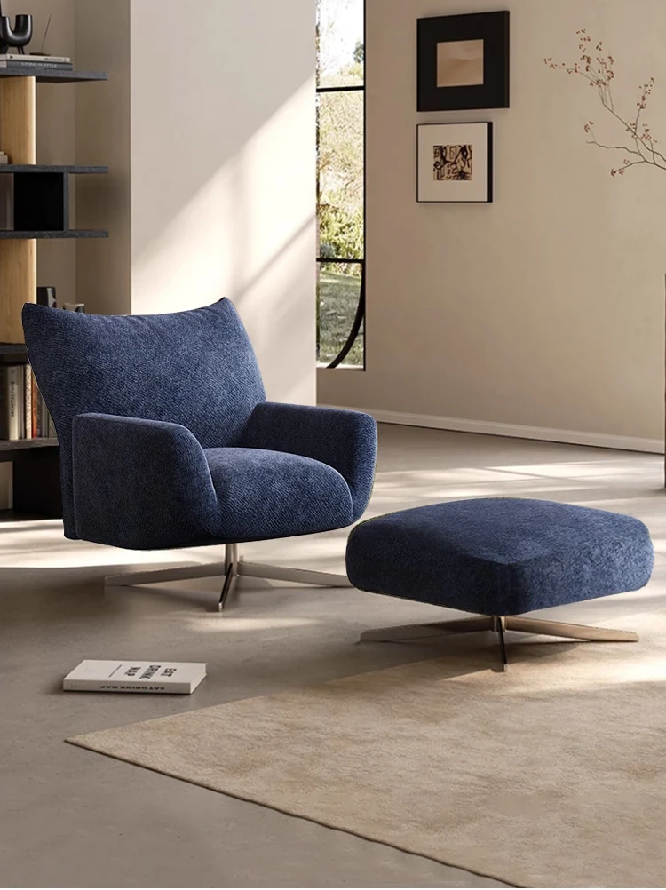 【セット】青色/単椅子+足置き【デンマーク輸入シェニールベルベット】
