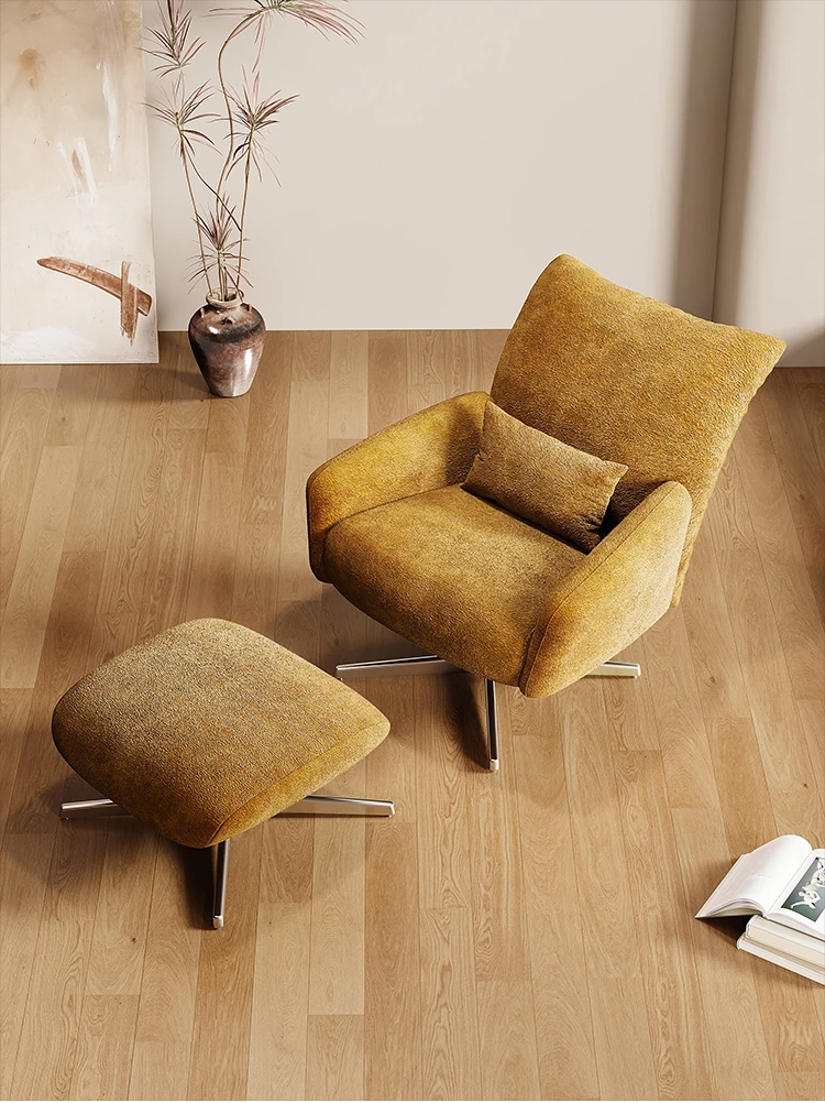 【セット】オレンジイエロー/単椅子+足置き【デンマーク輸入シェニールベルベット】