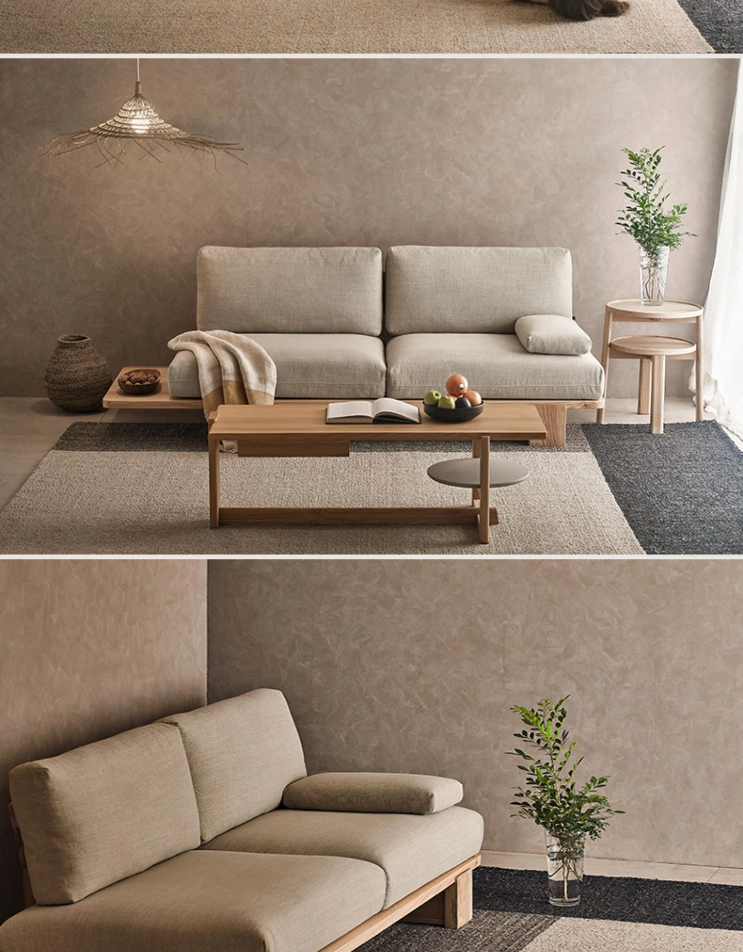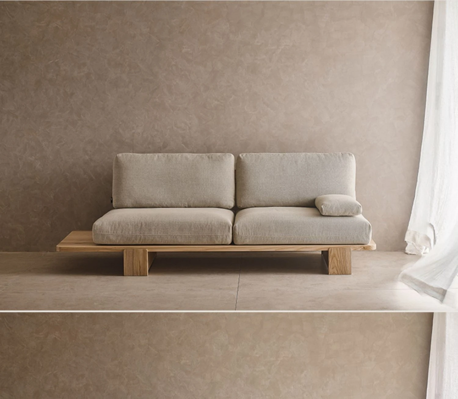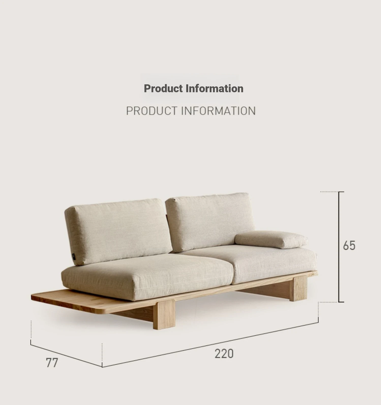 Japanese Solid Wood Sofa - Nordic Modern Wabi-Sabi Style, Removable and Washable Fabric, Double Seat for Living Room, Ideal for Homestay and Tatami Use