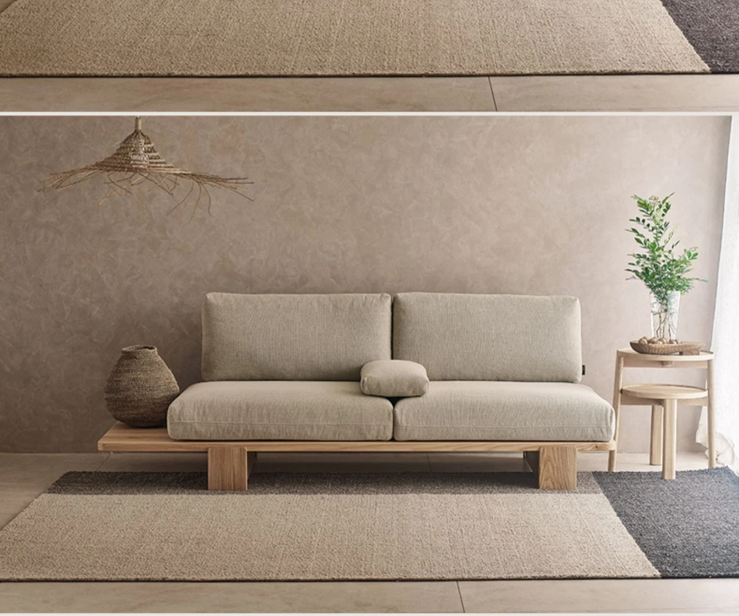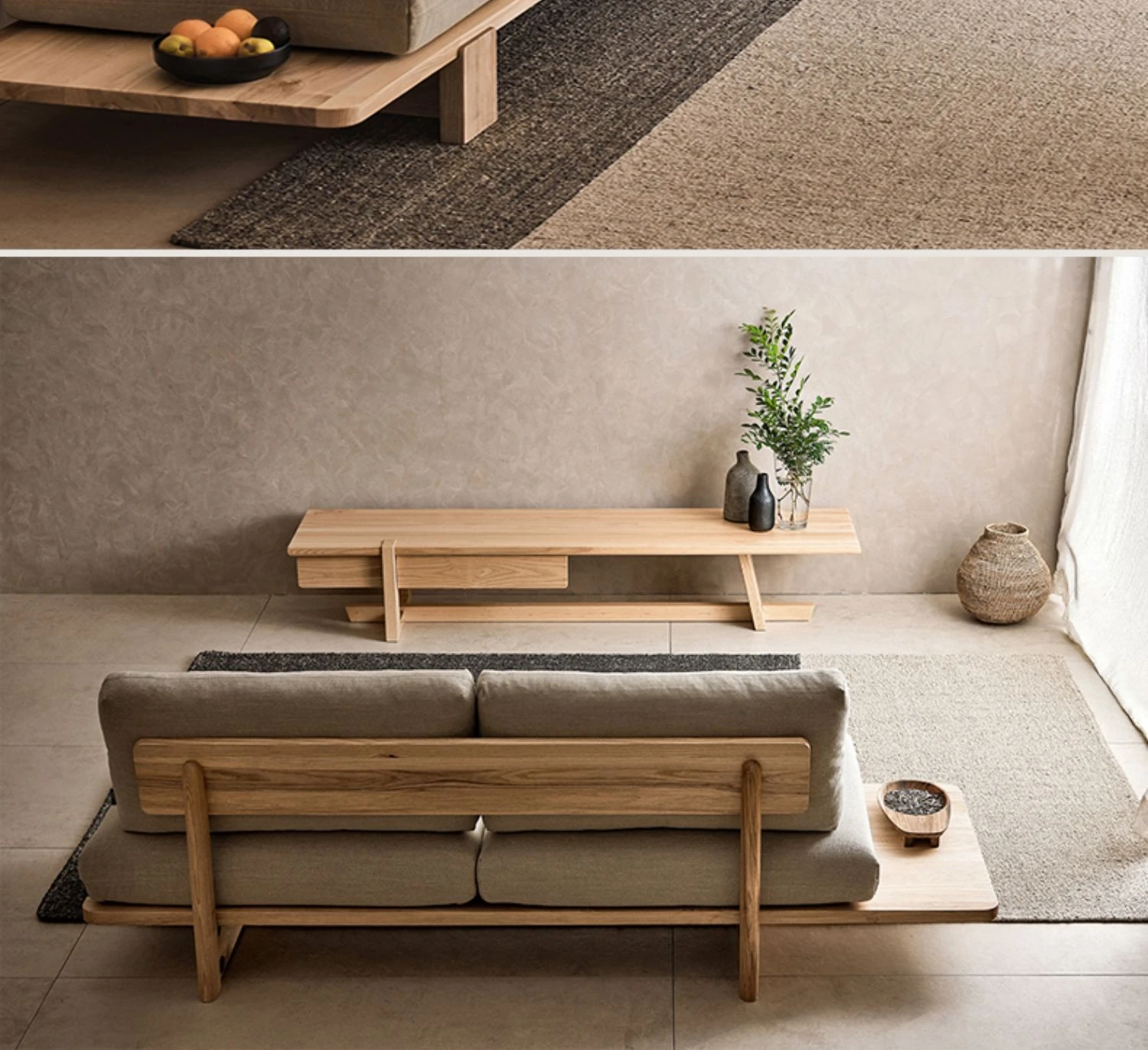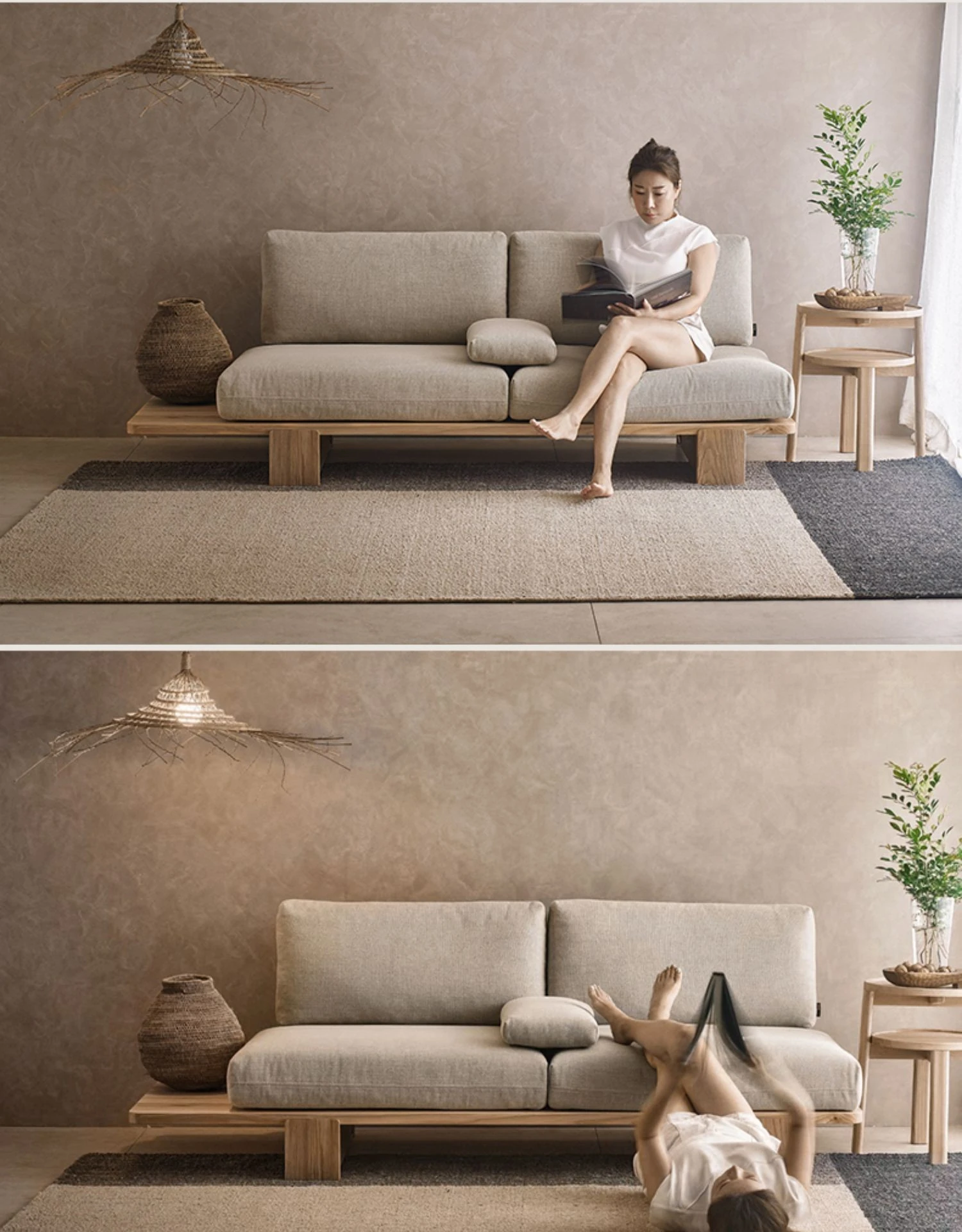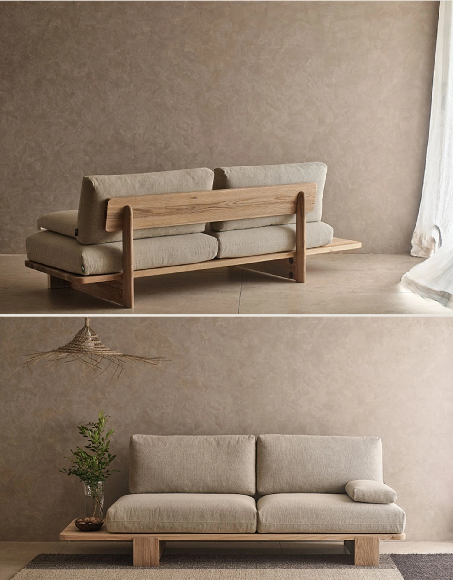 和風無垢材ソファー|北欧モダン侘寂スタイル|リビングにぴったりな洗える布張り二人掛けカウンターソファ|民泊や家庭用に最適な畳スタイル【癒しの空間を演出】