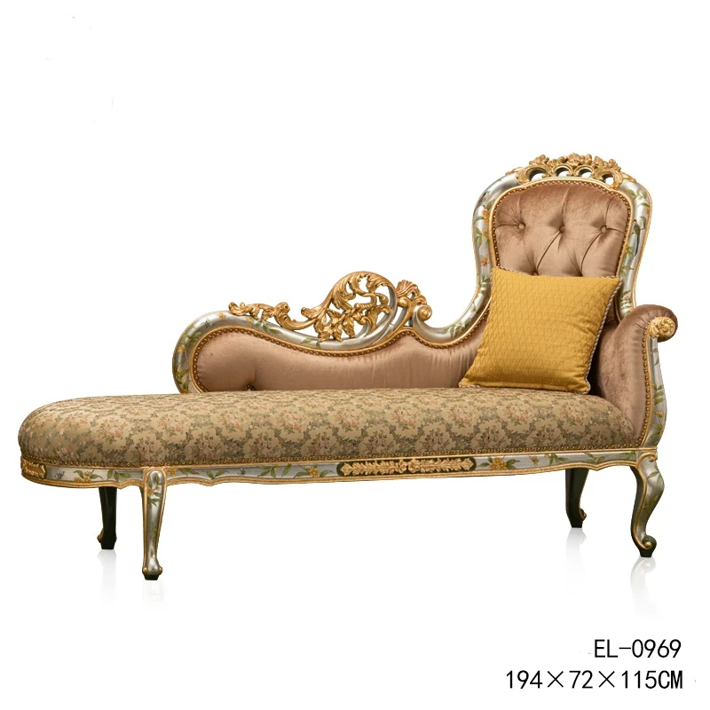 ジュリアン フランス風 本格木製 重厚彫刻 プリンセスシリーズ ゴールドブラウン 布地 エレガント リビングルーム・寝室用 デイベッド