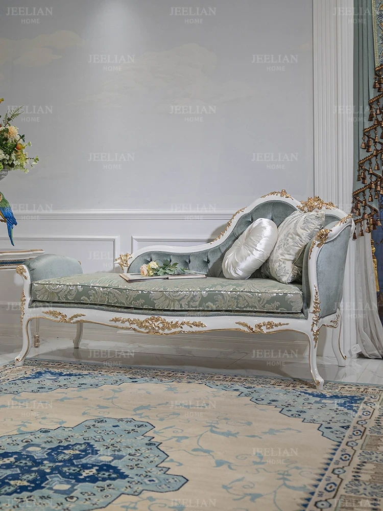 ジュリアン・フレンチラグジュアリー宮廷スタイルロマンティックブルーフabric寝室家具ヴィラリビングルーム高級ウッドカウチソファで、優雅なひとときをお楽しみください。