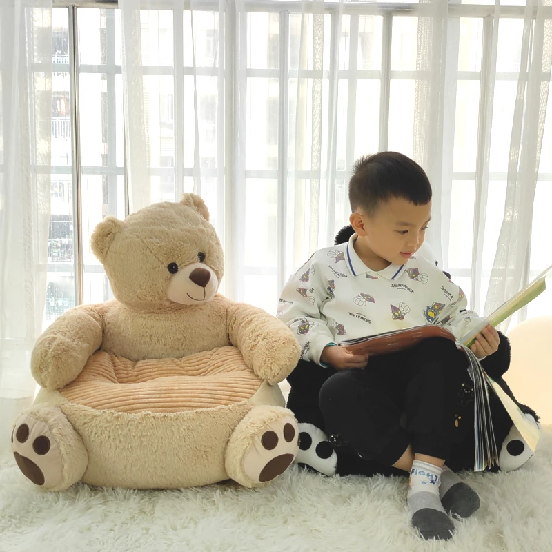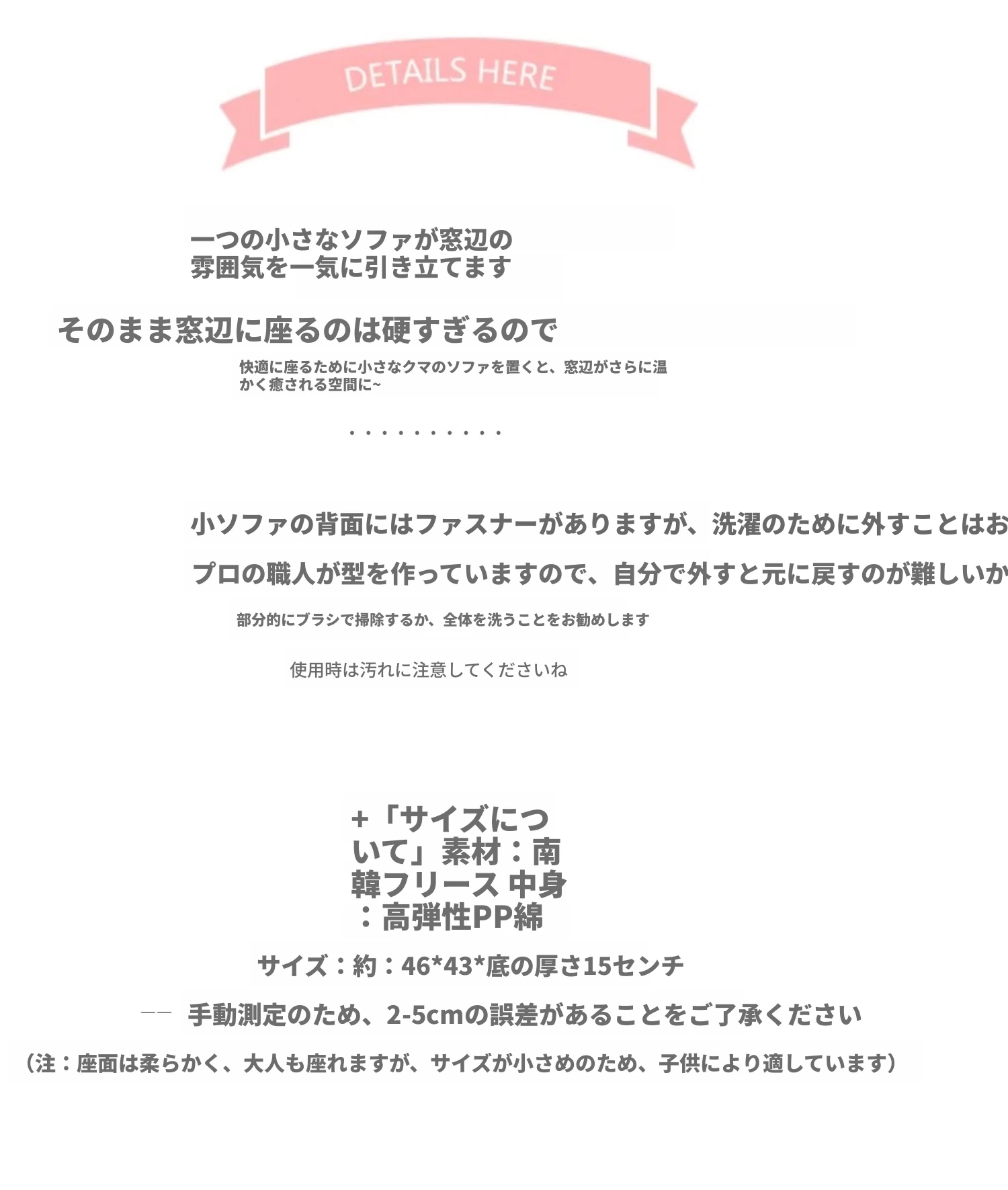 子供用窓辺のリラックスソファー - 幼稚園や読書に最適なかわいいテディベアデザインの座椅子。バルコニーや畳にぴったりの心地よいクッション付き!