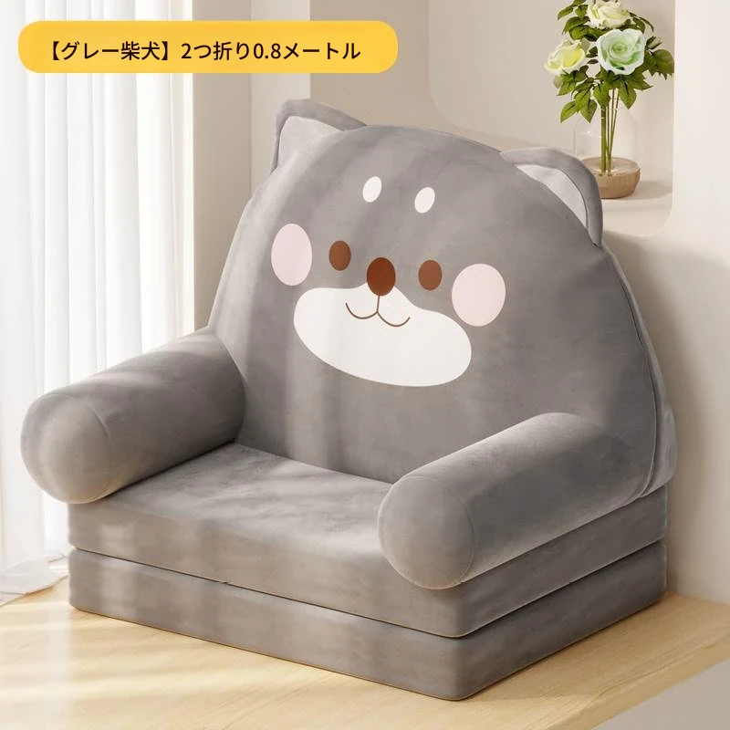 ぬいぐるみ滑り止めタイプ【グレーの柴犬】2折り0.8メートル