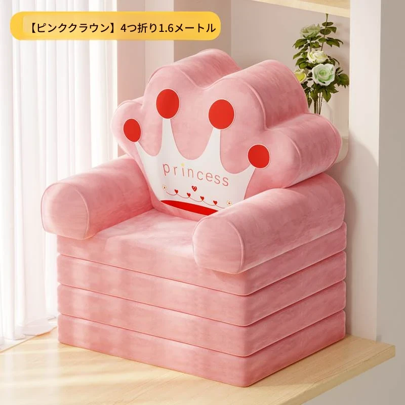 ぬいぐるみ滑り止めタイプ【ピンクのクラウン】4折り1.6メートル