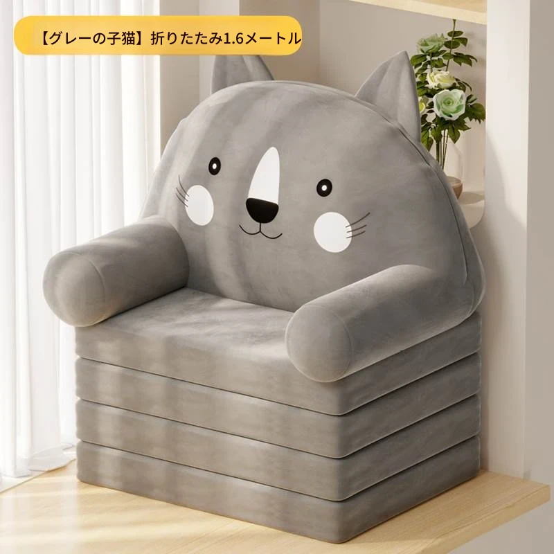 ぬいぐるみ滑り止めタイプ【グレーの子猫】4折り1.6メートル