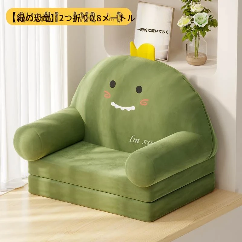 ぬいぐるみ滑り止めタイプ【緑の恐竜】2折り0.8メートル