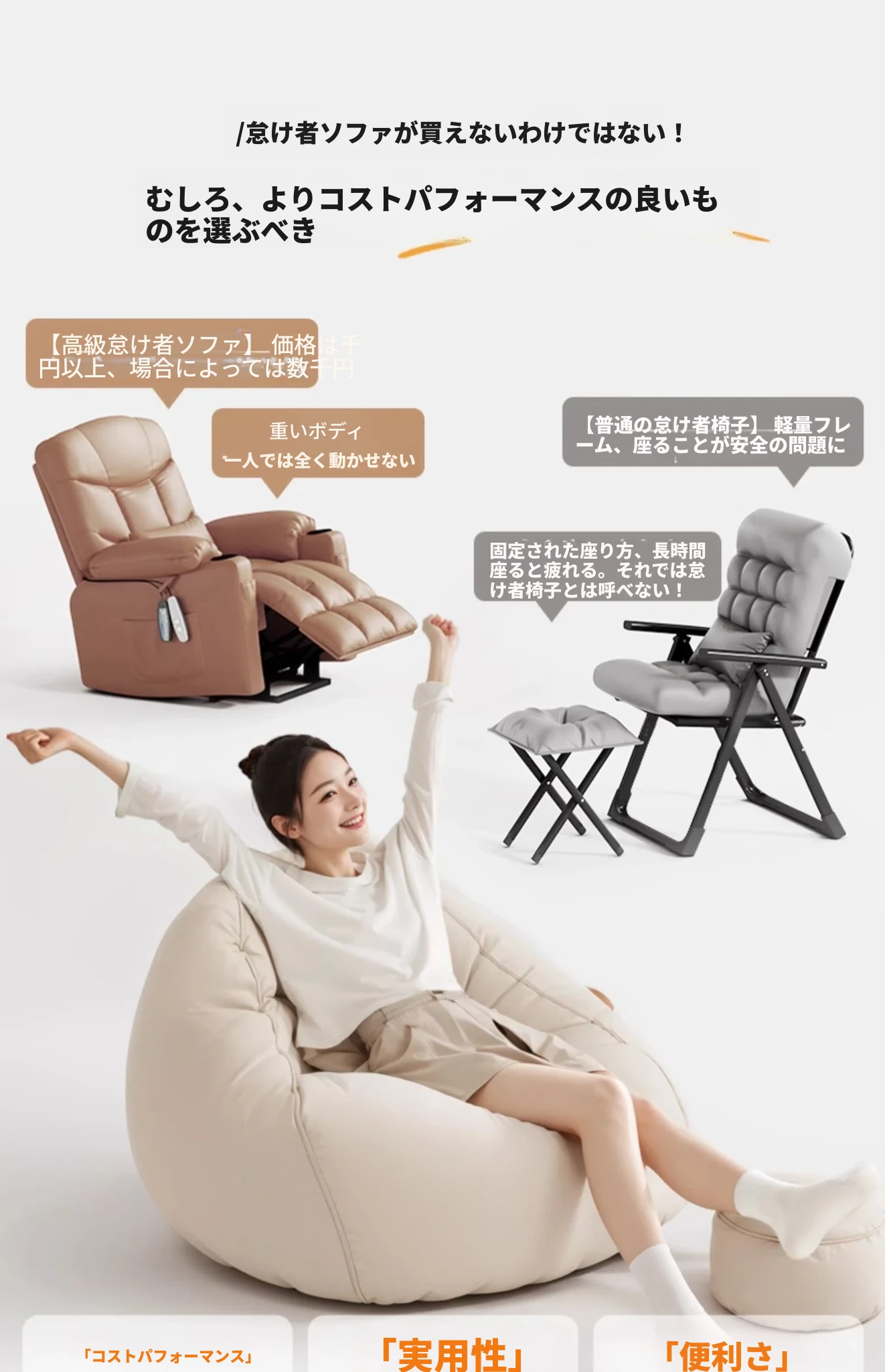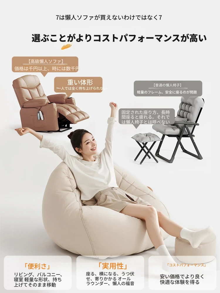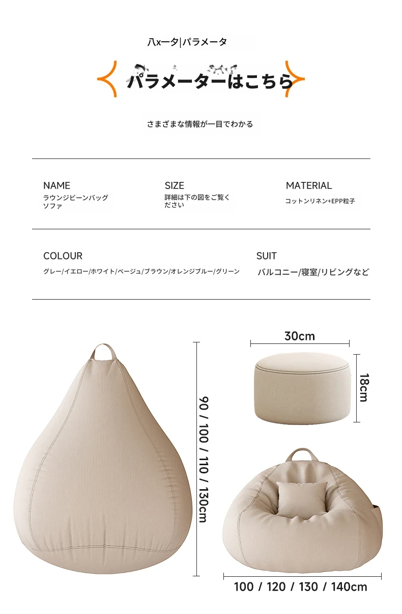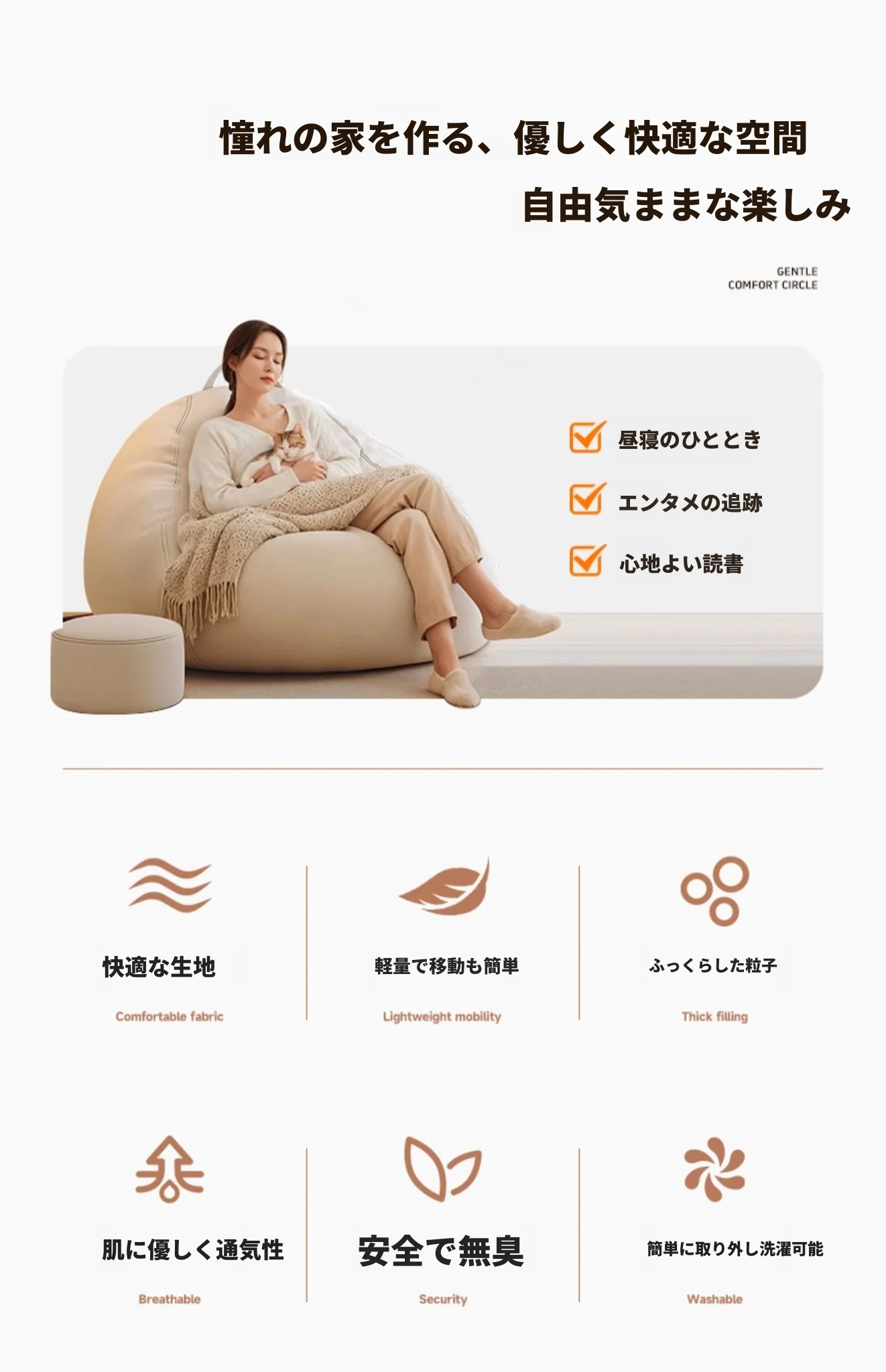 リラックスソファ 一人用 懒人沙发!寝転んでくつろげる、豆袋ソファ。人間とペットのための快適なコーナー、畳やバルコニー、窓際にぴったり!おしゃれで機能的なデザインで、心地よいひとときをお楽しみください!