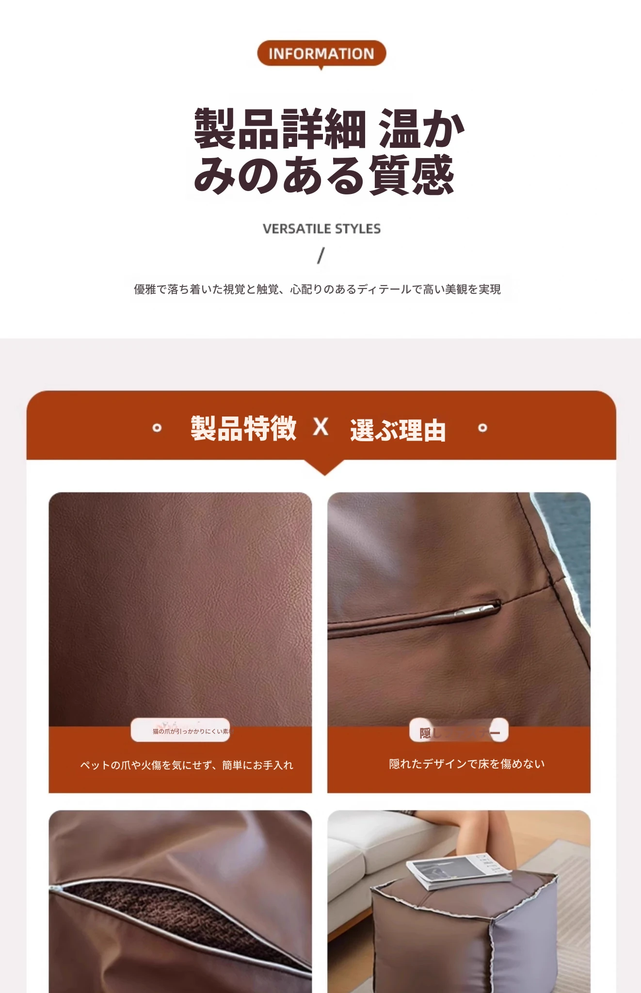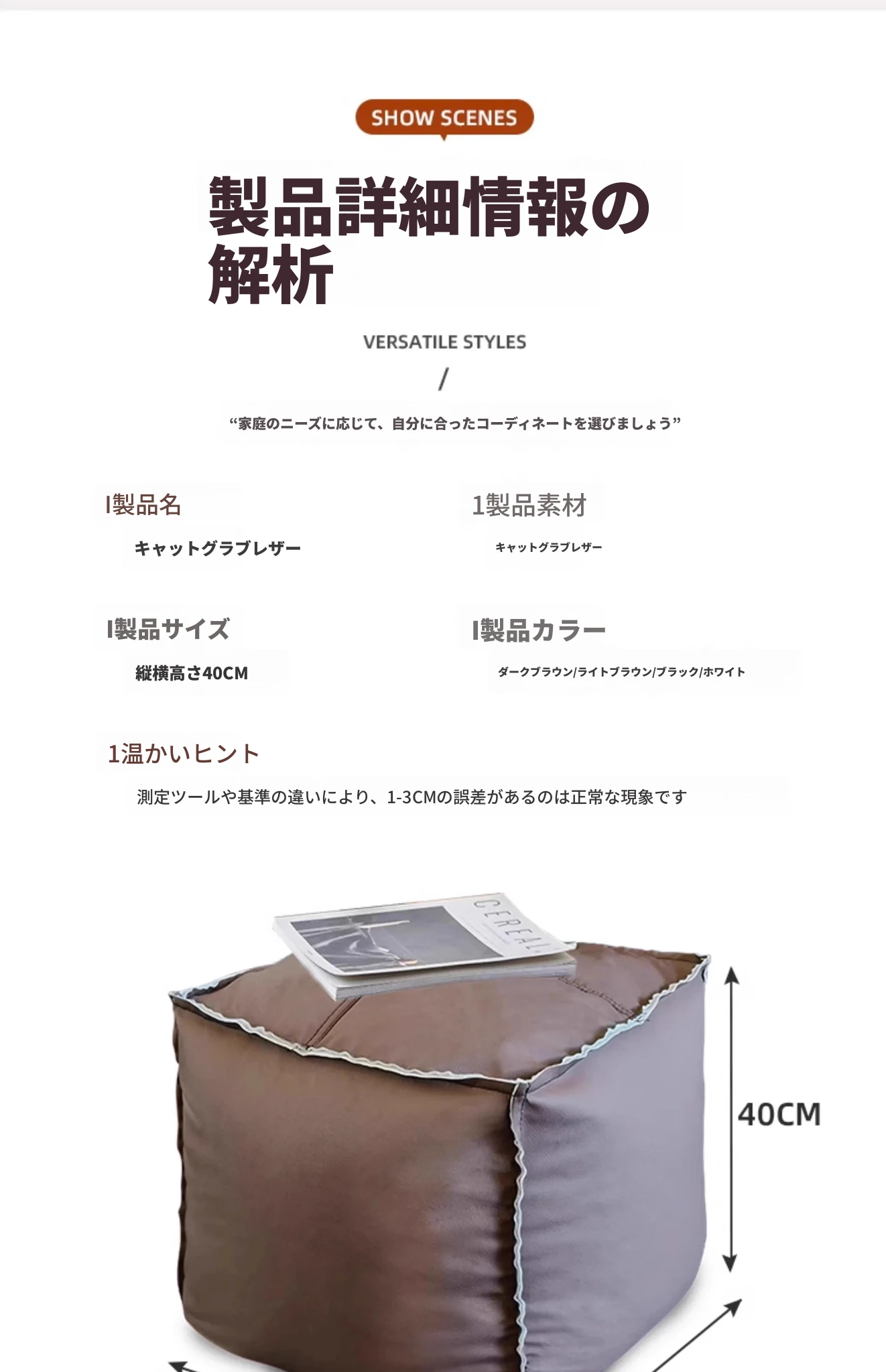 長方形コーヒー色70*70*30cm-猫抓皮面(填充物は含まれていません。古い衣類で自分で填充してください)
